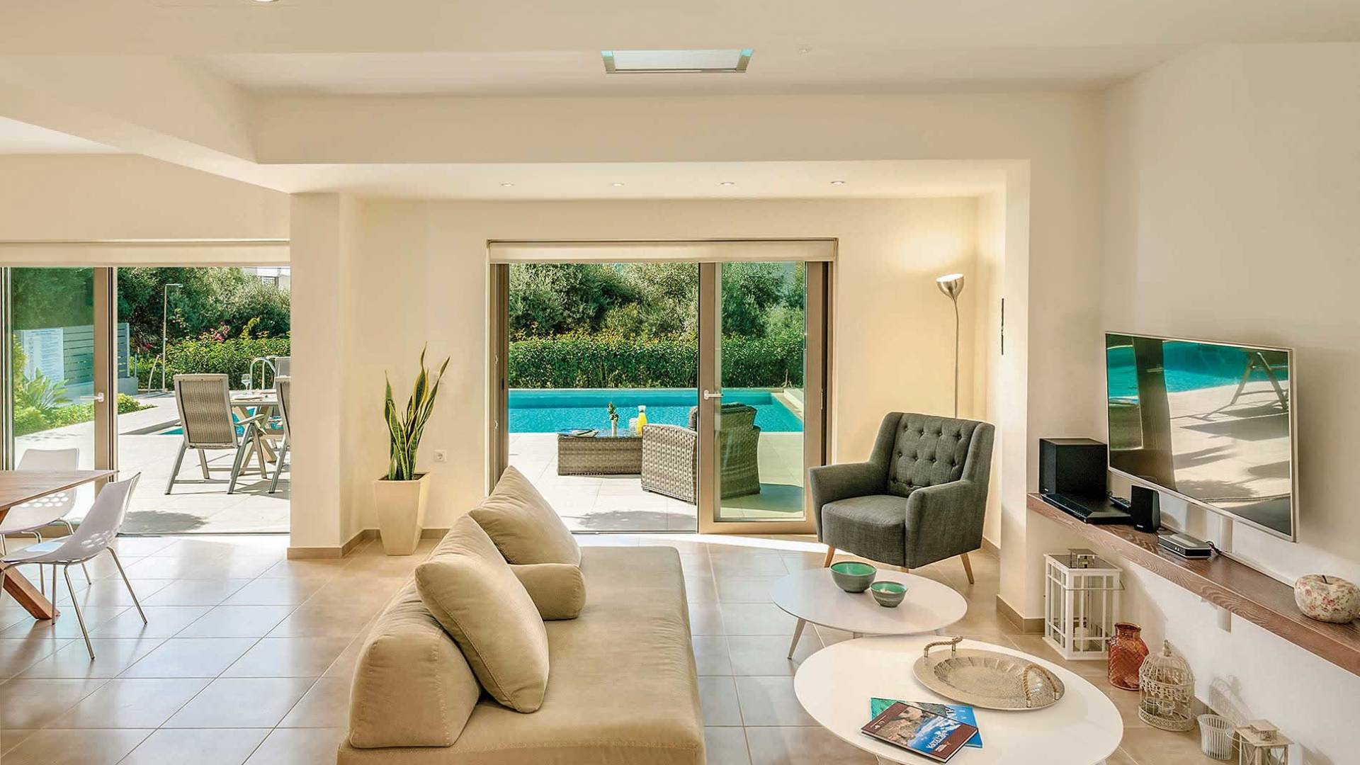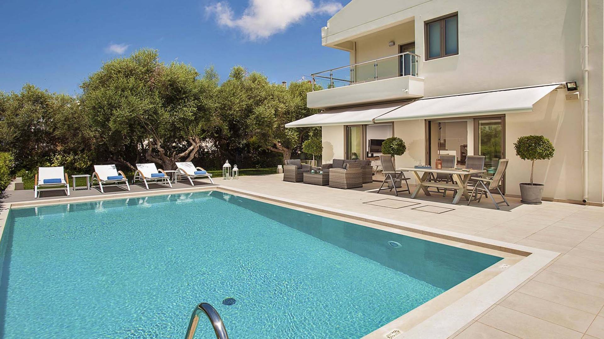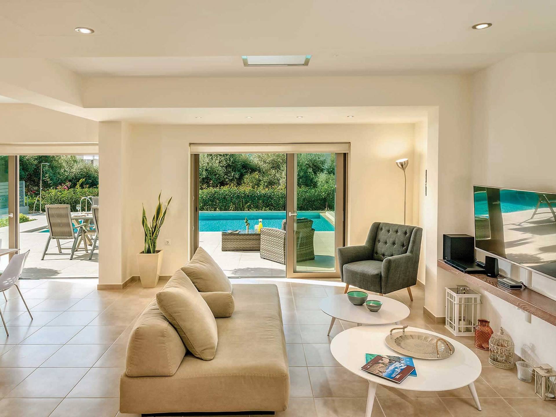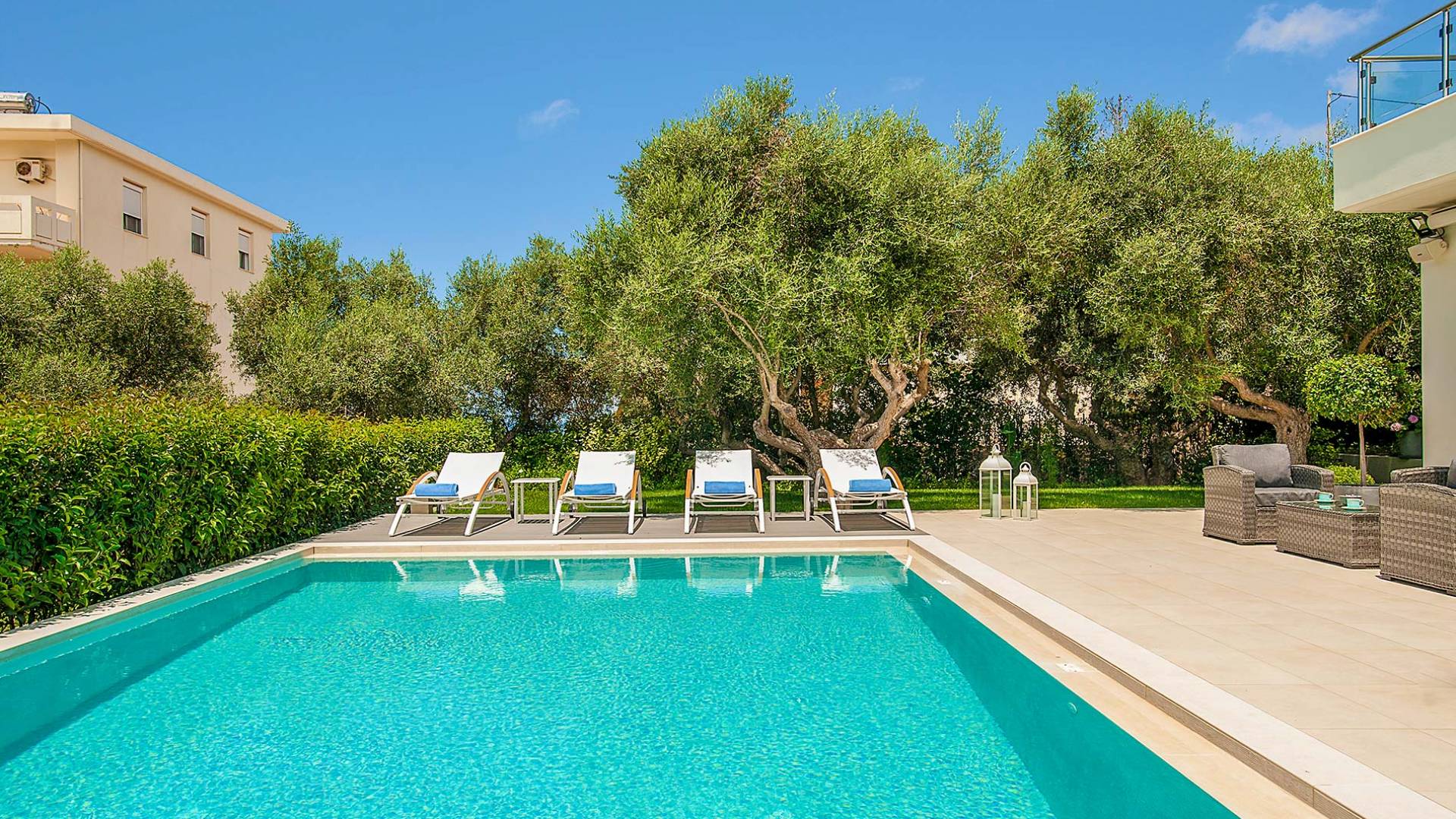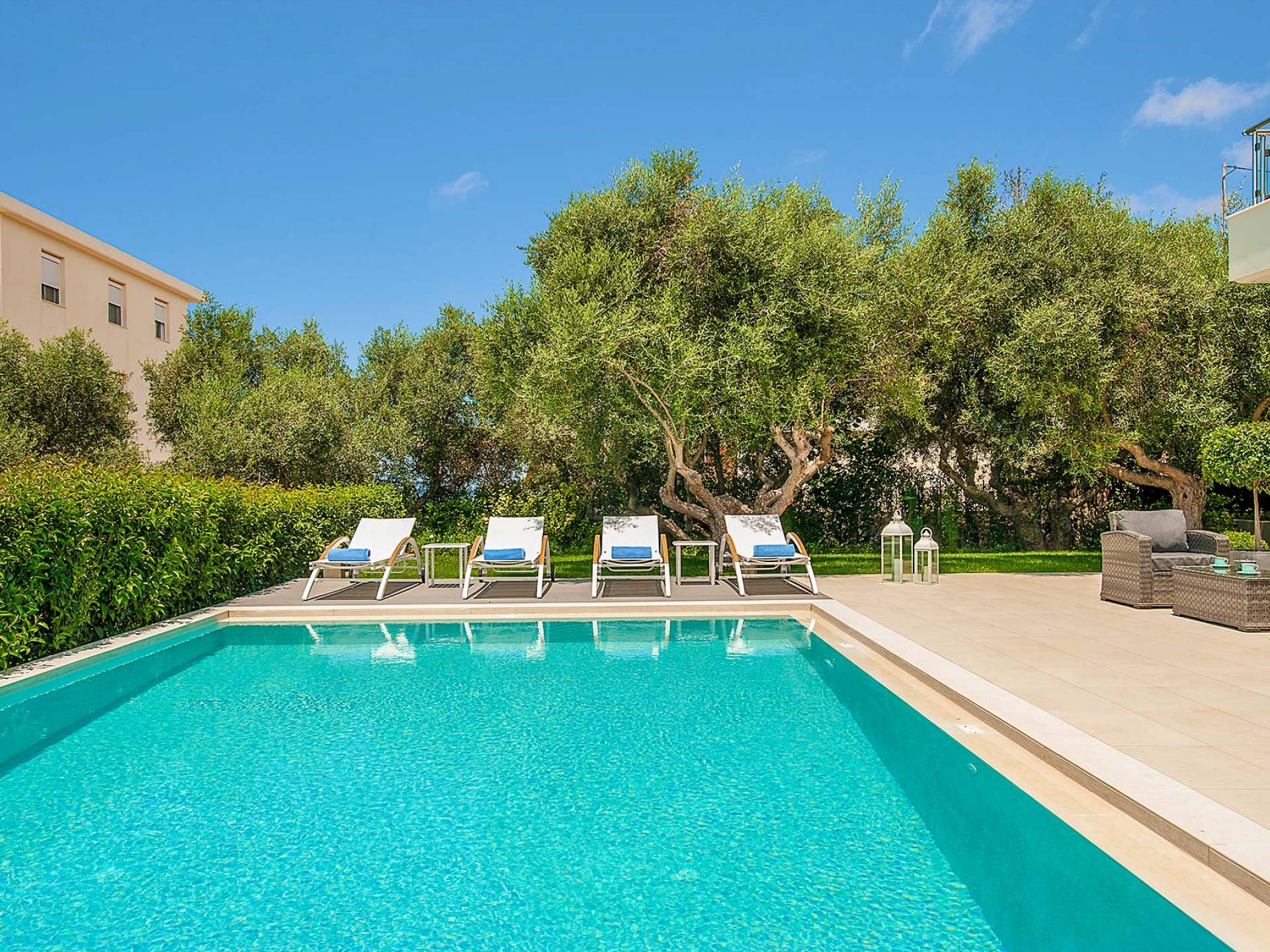 Les couloirs spacieux offrent un aperçu rapide de Sunlight Breeze Villa Chania. Vous n'avez plus à vous soucier des bagages. Laisse le! Descendez les escaliers. Vous êtes maintenant dans la piscine. La piscine bénéficie d'un revêtement spécial, sans carrelage, elle est spacieuse, luxueuse avec une couleur qui reflète le ciel et fait sentir….n'hésitez pas. C'est juste l'eau, le soleil et vous. Cela signifie l'exclusivité. Vous pouvez voir le reste du terrain avec les oliviers devant vous. Pour vous qui ne nagez pas déjà, prenez votre chaise et asseyez-vous sur leur ombre délicate.
