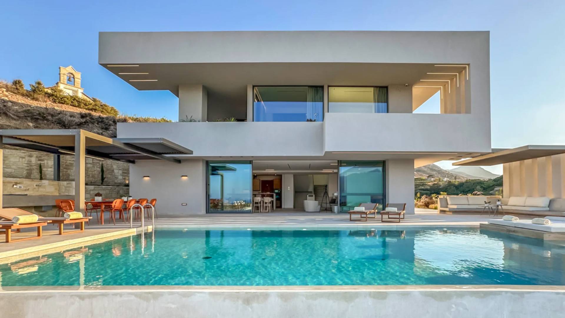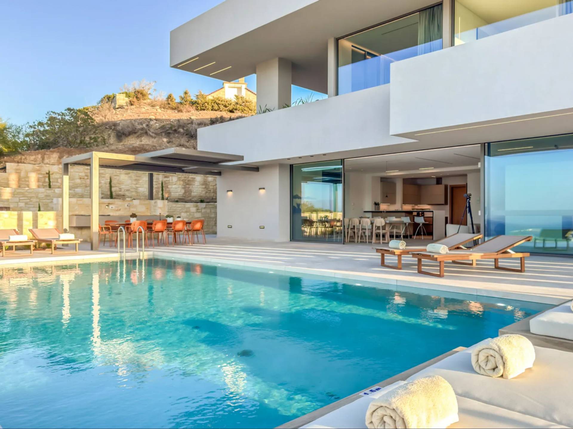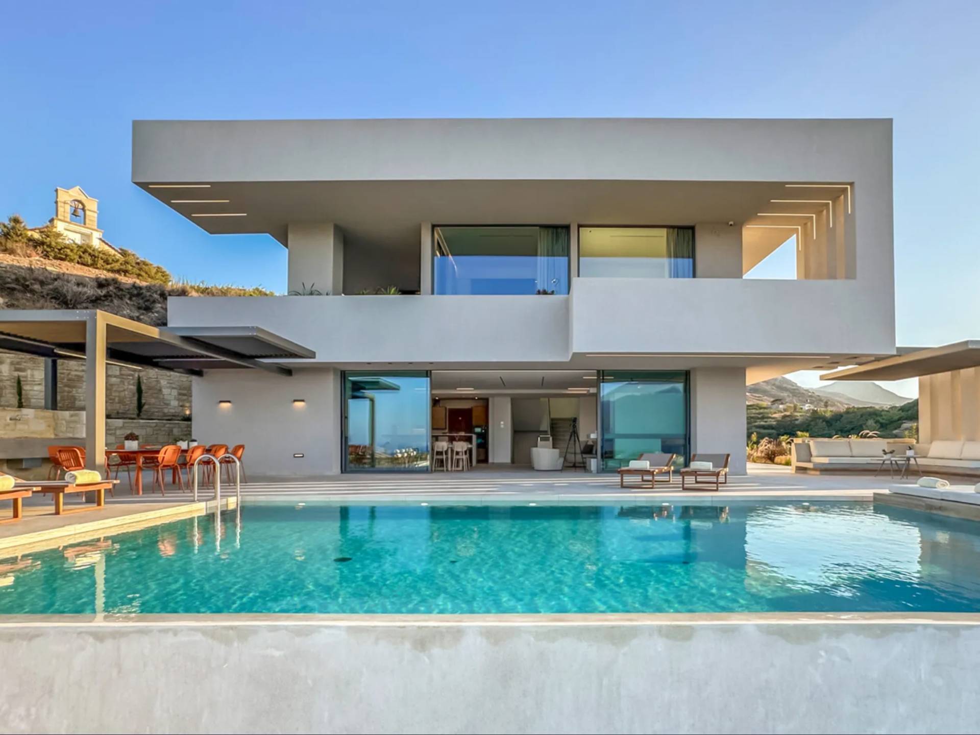 Villa Elysion Chania - Découvrez l'ambiance remarquable de la Villa Elysion Chania, où l'espace, la lumière et le luxe moderne créent une expérience vraiment inoubliable. Conçue pour être spacieuse et accueillante, cette retraite de cinq chambres est idéale pour les familles ou les groupes d'amis à la recherche d'un sanctuaire privé sous le soleil crétois.