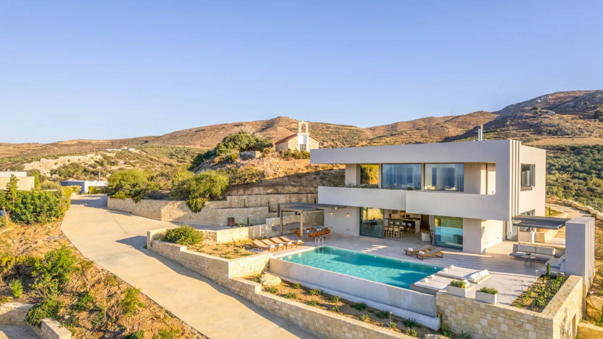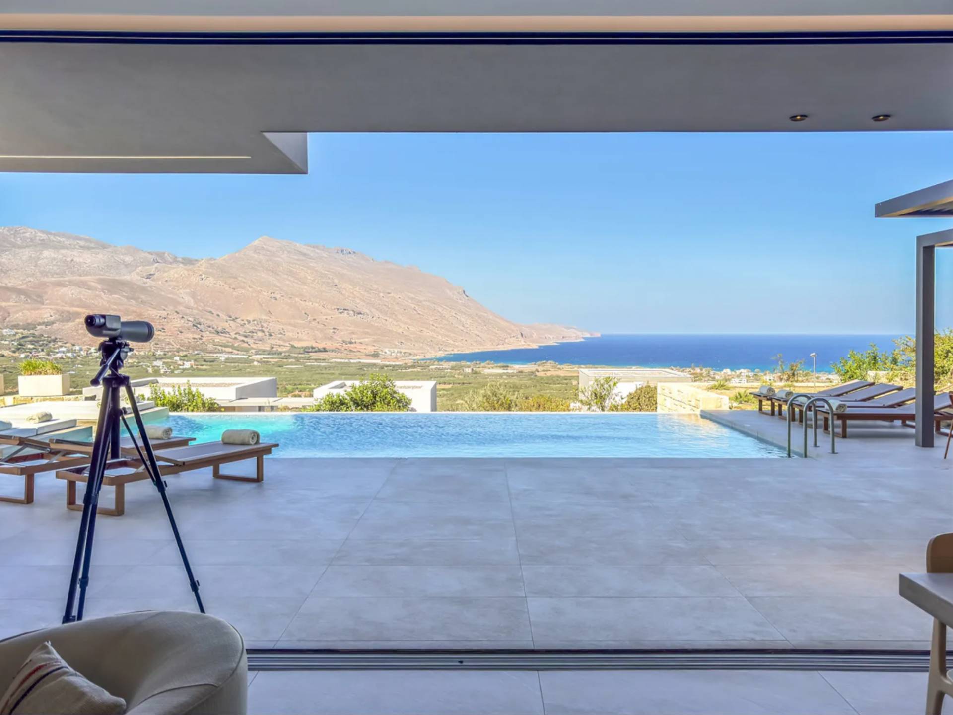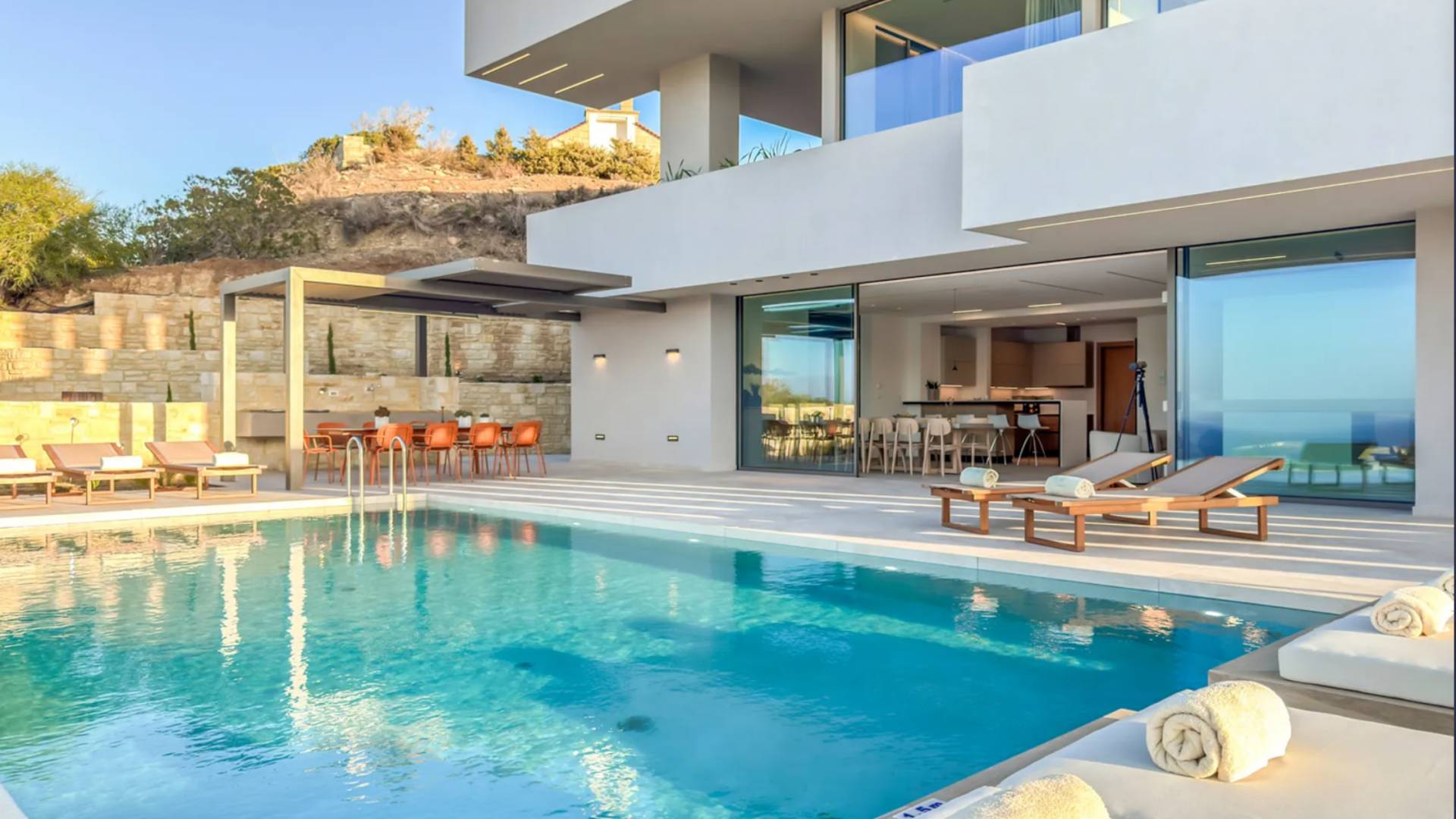 Villa Elysion Chania - Découvrez l'ambiance remarquable de la Villa Elysion Chania, où l'espace, la lumière et le luxe moderne créent une expérience vraiment inoubliable. Conçue pour être spacieuse et accueillante, cette retraite de cinq chambres est idéale pour les familles ou les groupes d'amis à la recherche d'un sanctuaire privé sous le soleil crétois.