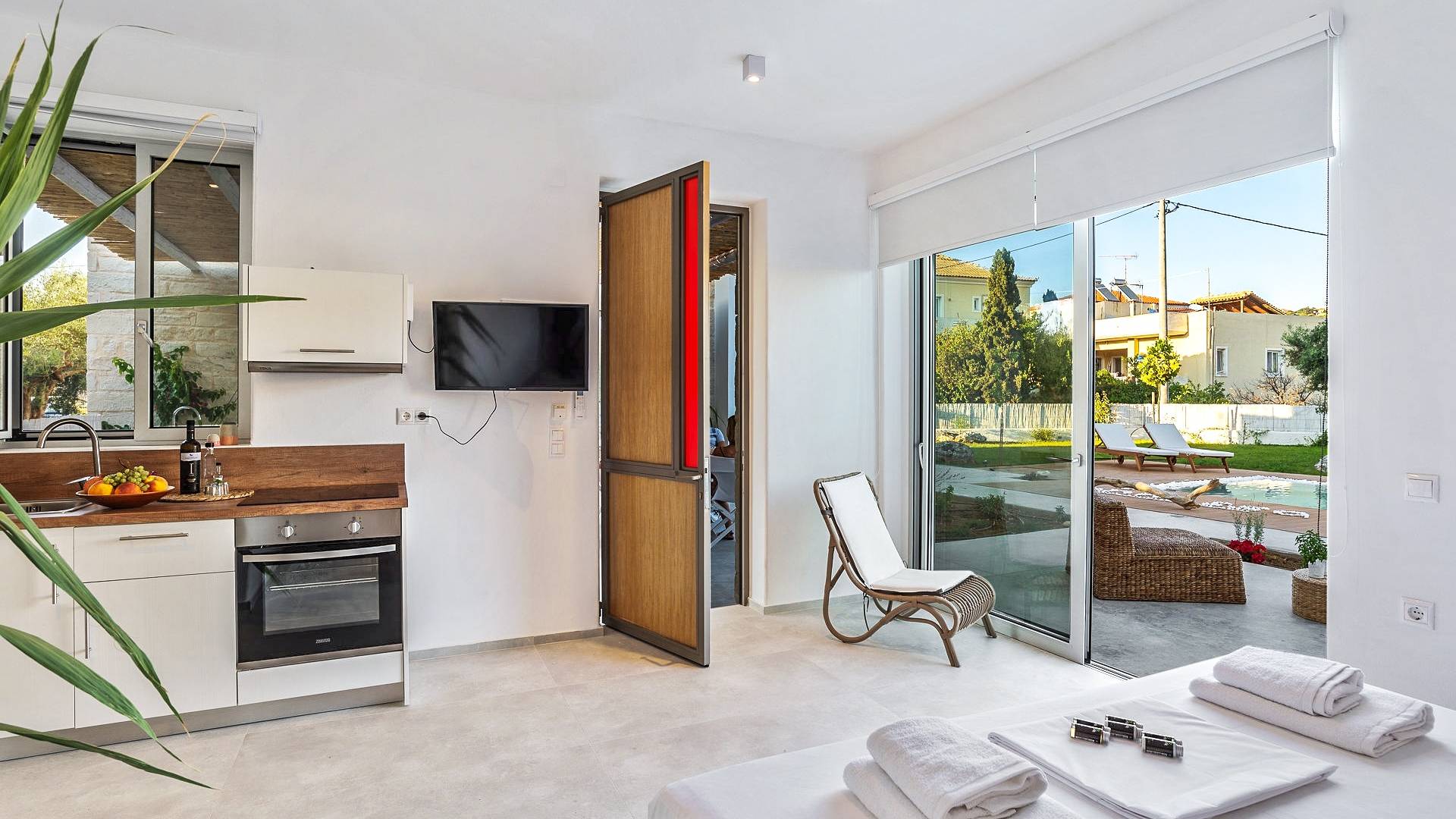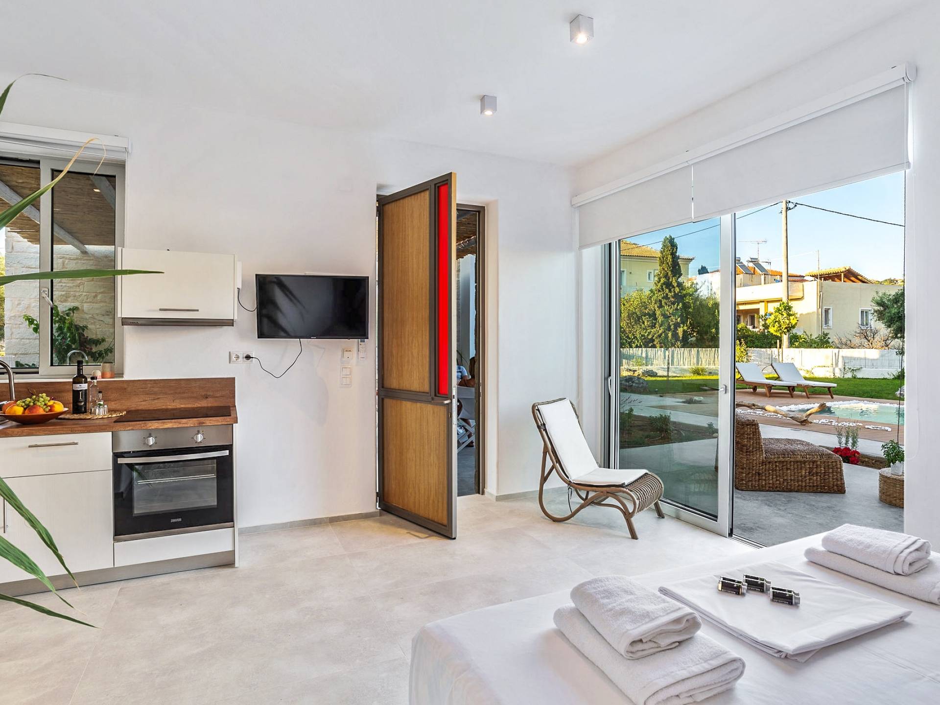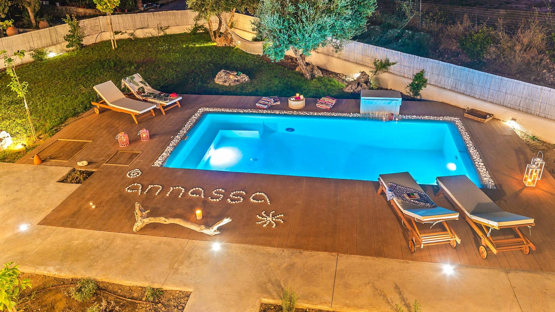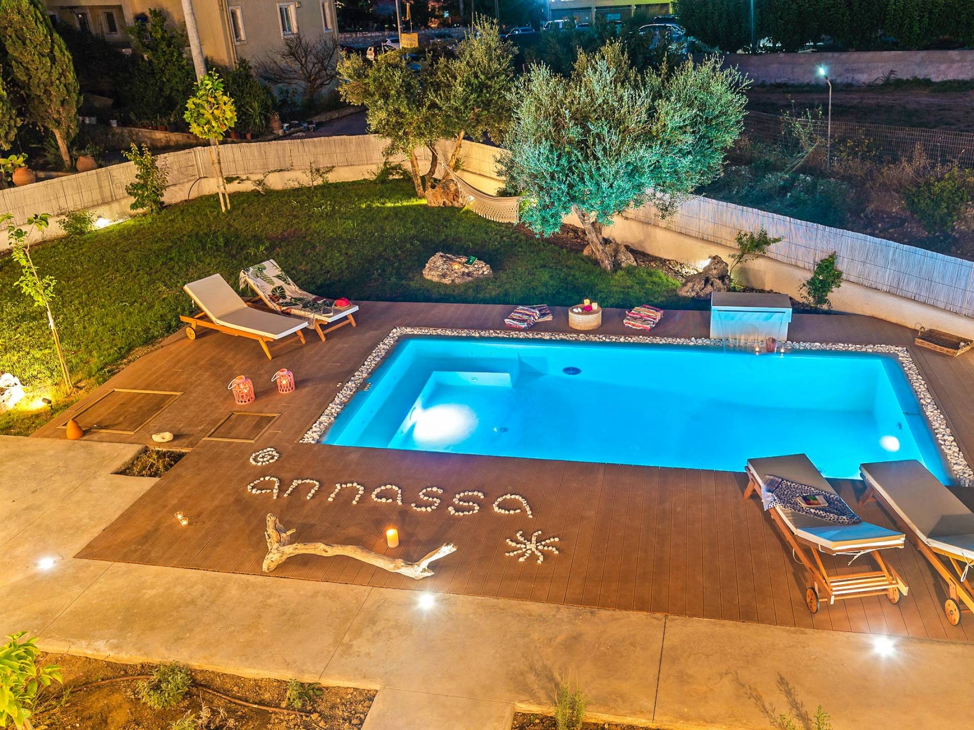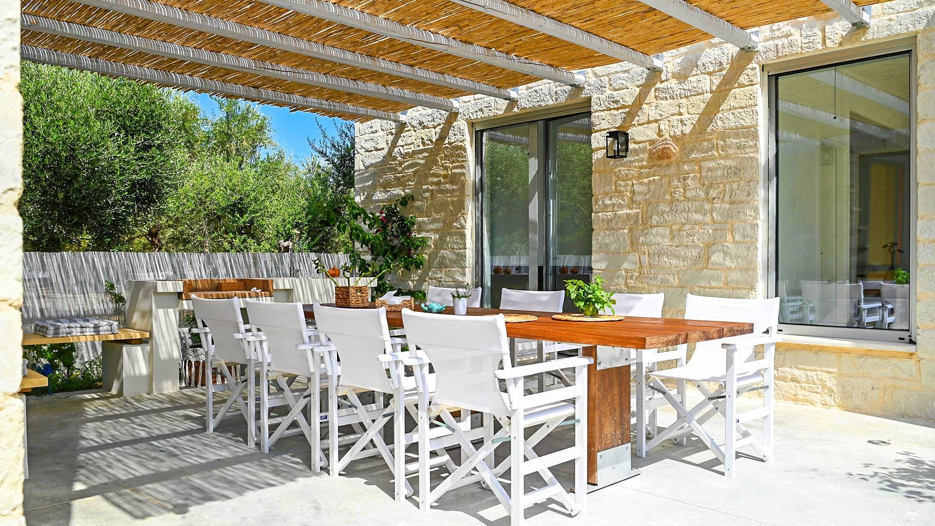 L'espace extérieur complété par la pergola ombragée, la superbe piscine et le magnifique jardin paysager offre détente et confort. Profitez de la vie et des divertissements en plein air typiquement méditerranéens, ainsi que de la vie insulaire authentique sur l'un des endroits les plus charmants de la Méditerranée. La Villa Annassa Chania est une propriété unique idéale pour des vacances de luxe mémorables passées sous le soleil grec.
