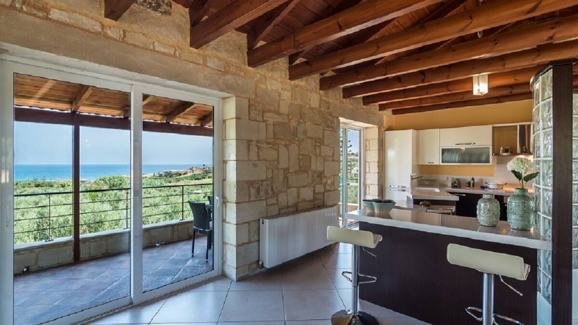 Grâce à sa proximité avec La Canée, vous pouvez facilement explorer le port vénitien, les ruelles pittoresques de la vieille ville et ses marchés animés. Les amoureux de la nature pourront faire des excursions à la plage d’Elafonissi, aux gorges de Samaria ou à la lagune de Balos.