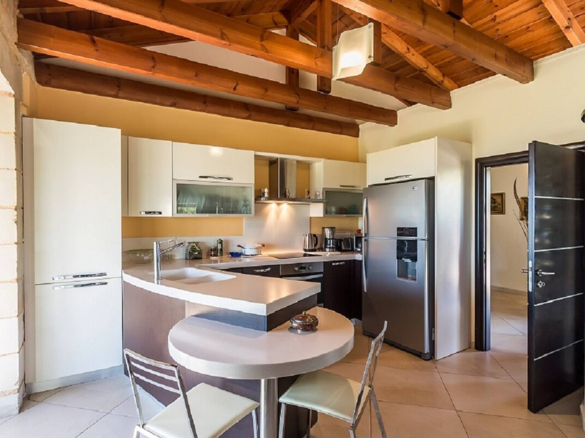 Les équipements de la Villa Chara Chania couvrent même les visiteurs les plus exigeants, disposant de tout le confort que l'on s'attend à trouver dans une résidence luxueuse et moderne. De la cuisine entièrement équipée aux chambres spacieuses et climatisées, tout a été pensé et créé pour vous offrir une expérience de séjour inoubliable. Laissez les portes et les fenêtres ouvertes pour profiter du soleil radieux qui inonde la maison. La Villa Chara Chania offre une grande intimité, ce qui en fait un choix parfait pour la famille ou les amis souhaitant se détendre et passer du temps ensemble.