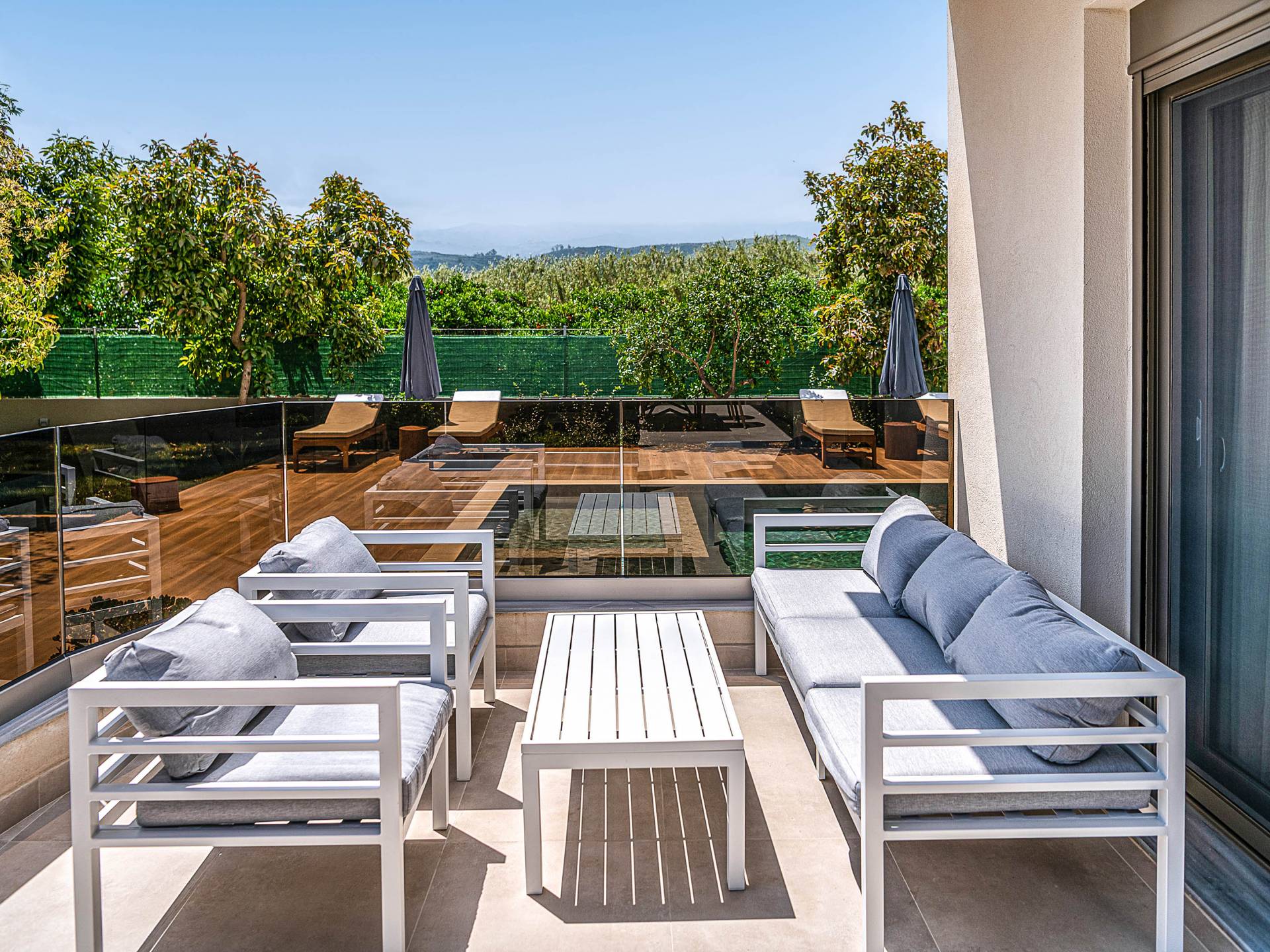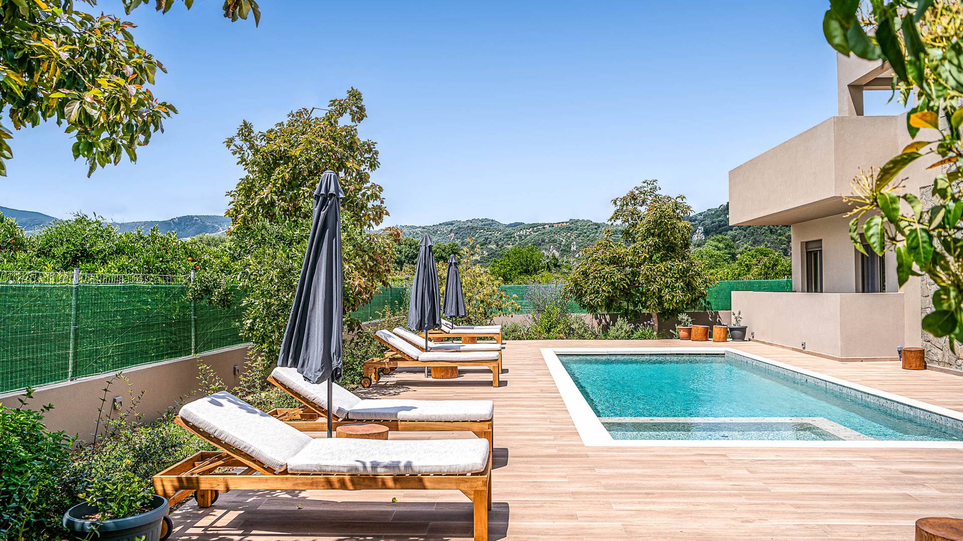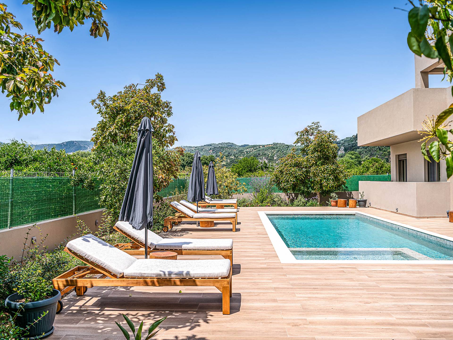 • Piscine privée avec des chaises longues pour les après-midi détend Espace de vie aéré avec design moderne et ample lumière naturelle