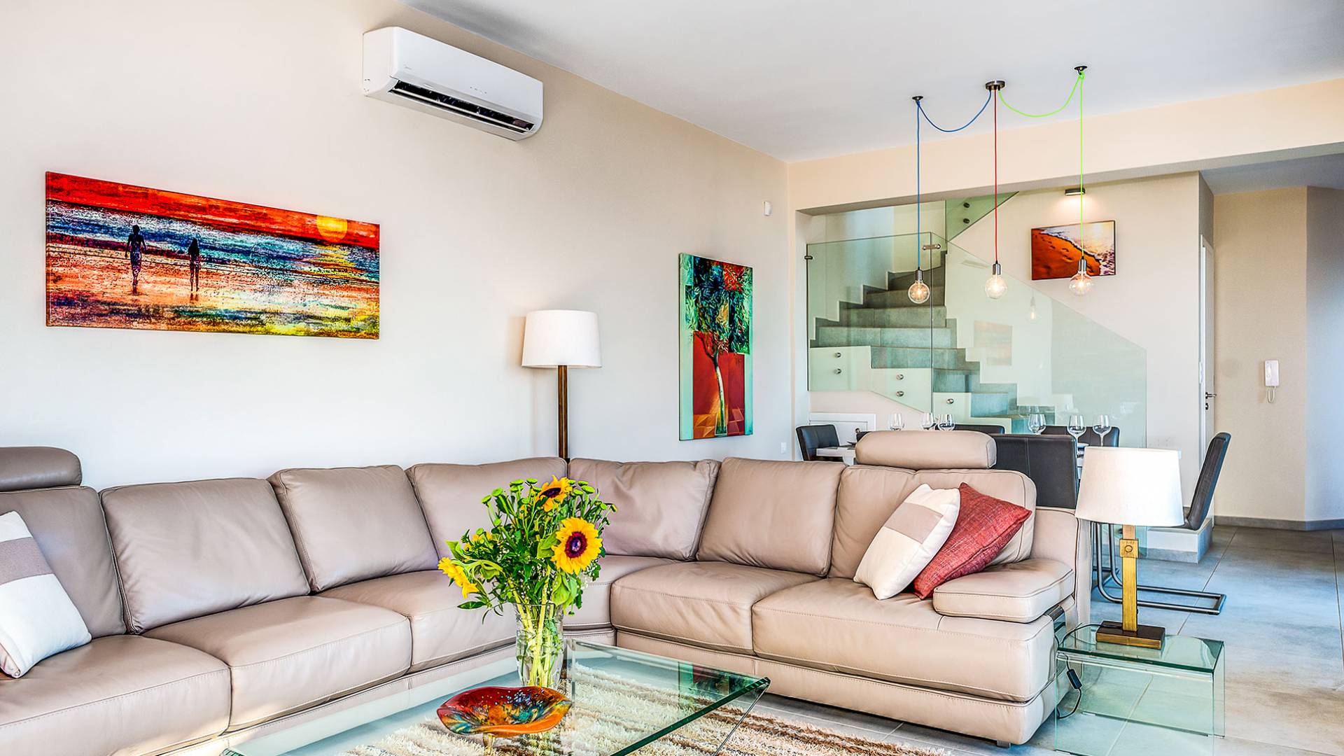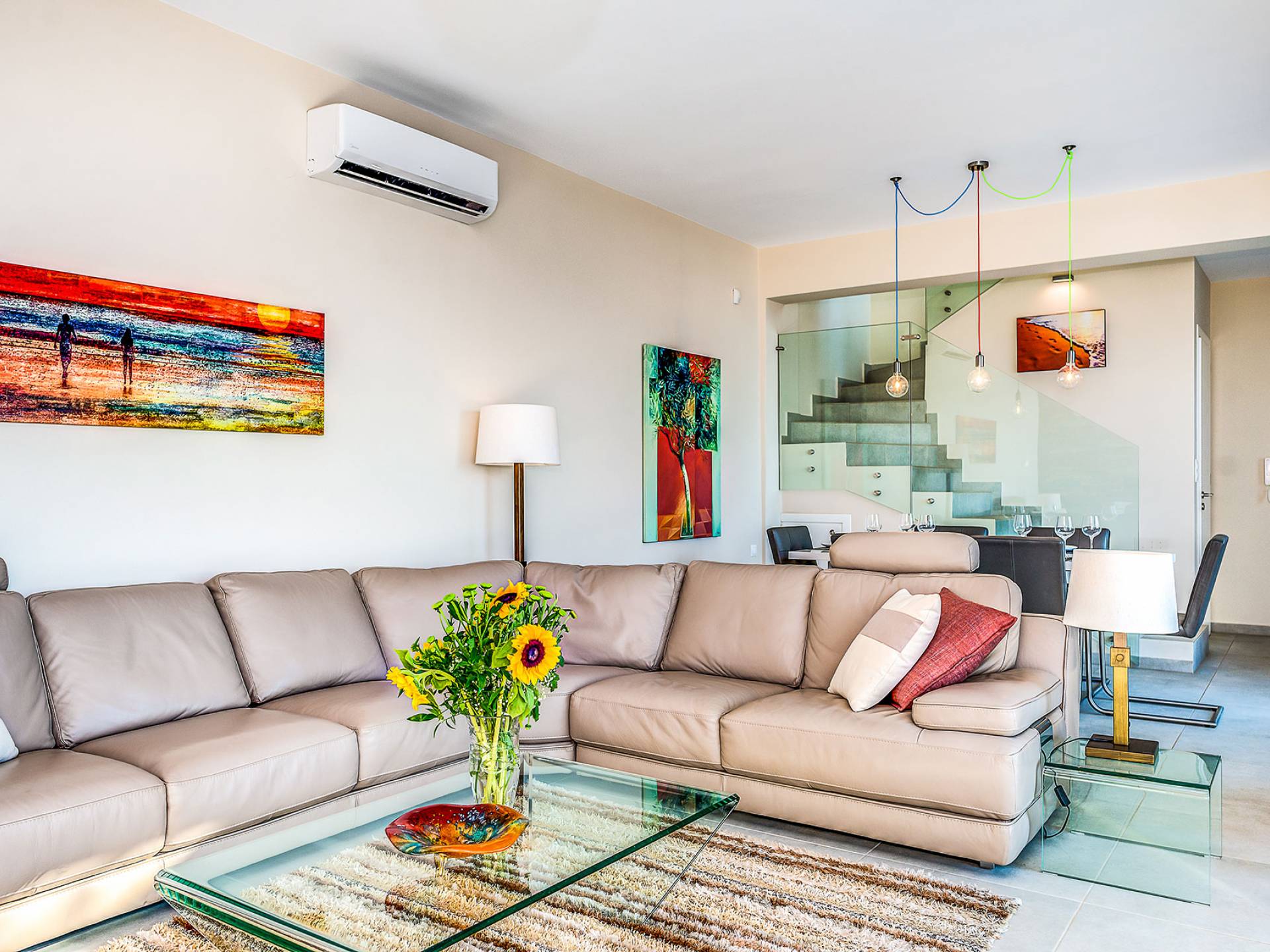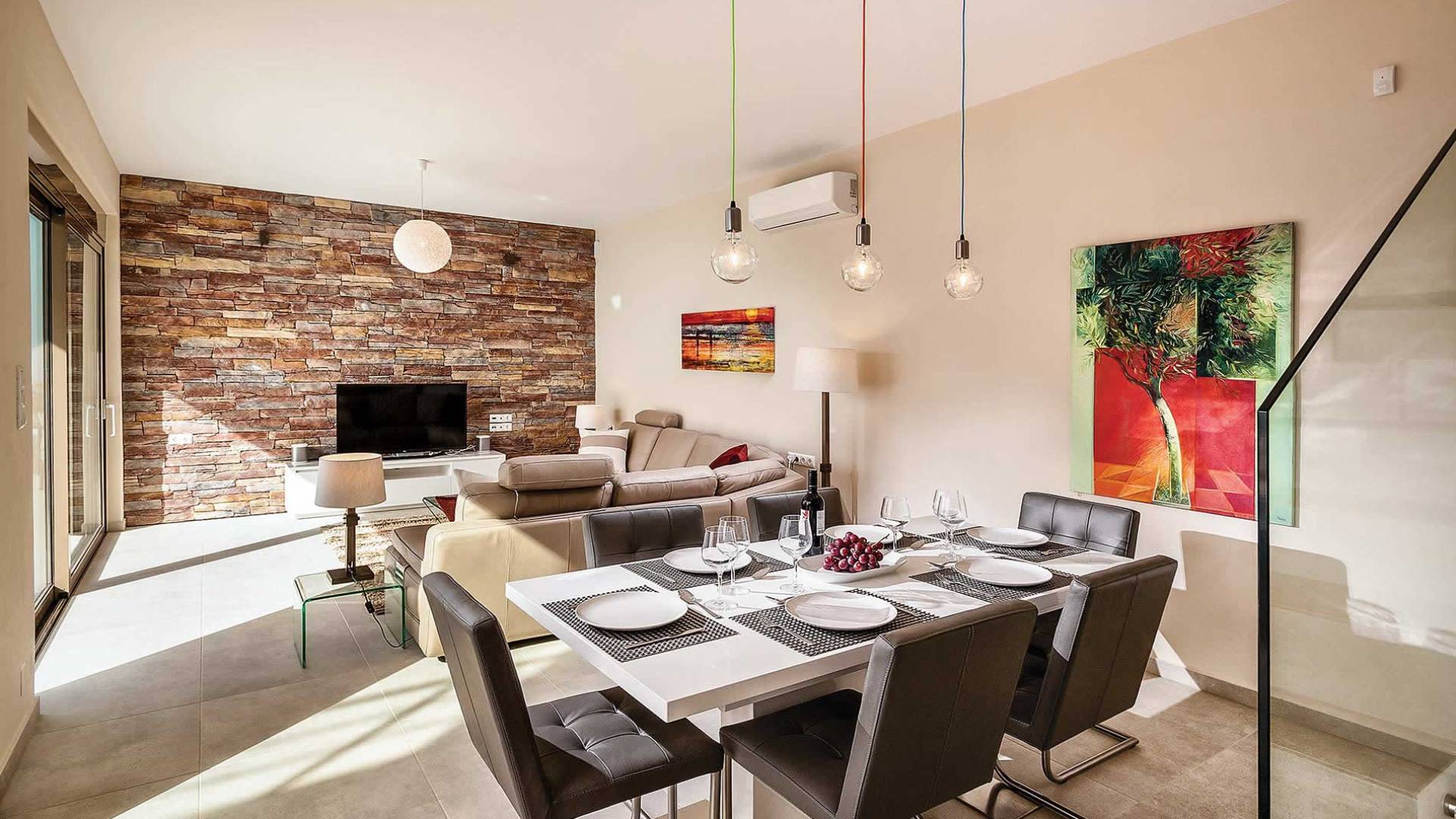 Il abrite une télévision à écran plat et une Playstation avec de nombreux jeux intégrés, un tapis de course et un appareil d'exercice pour cross-trainer. Une connexion Wi-Fi est disponible gratuitement dans toute la maison et dans tous les espaces extérieurs. Le salon principal dispose d'un canapé d'angle en cuir et d'une table à manger pouvant accueillir jusqu'à 8 personnes. Il dispose d'une télévision à écran plat de 49 pouces avec chaînes satellite et d'un système de musique Bluetooth Sonos.