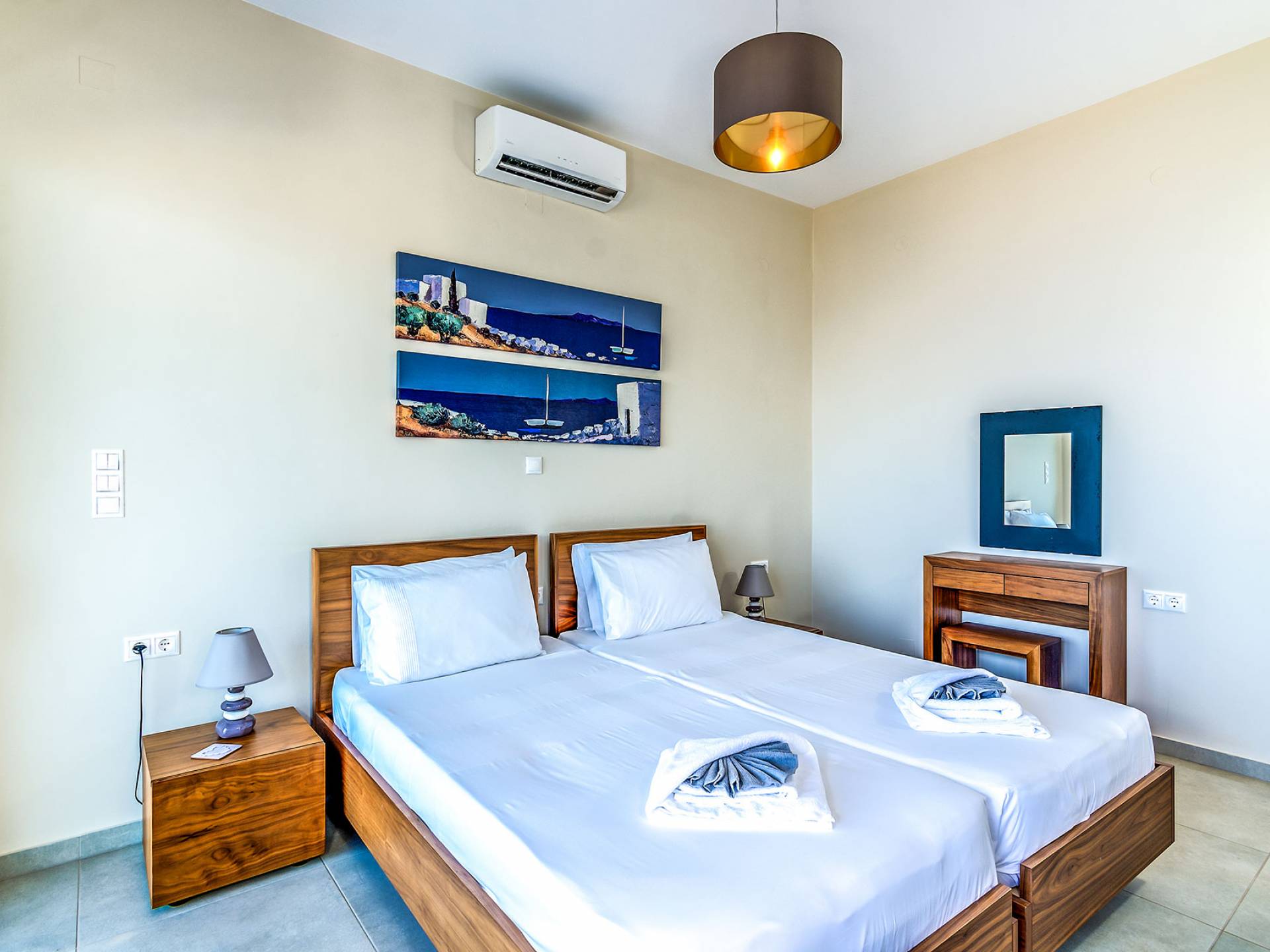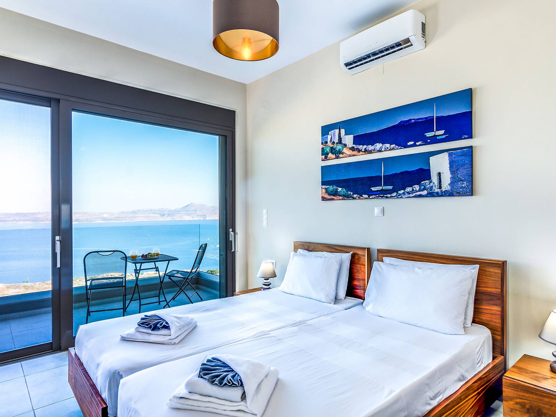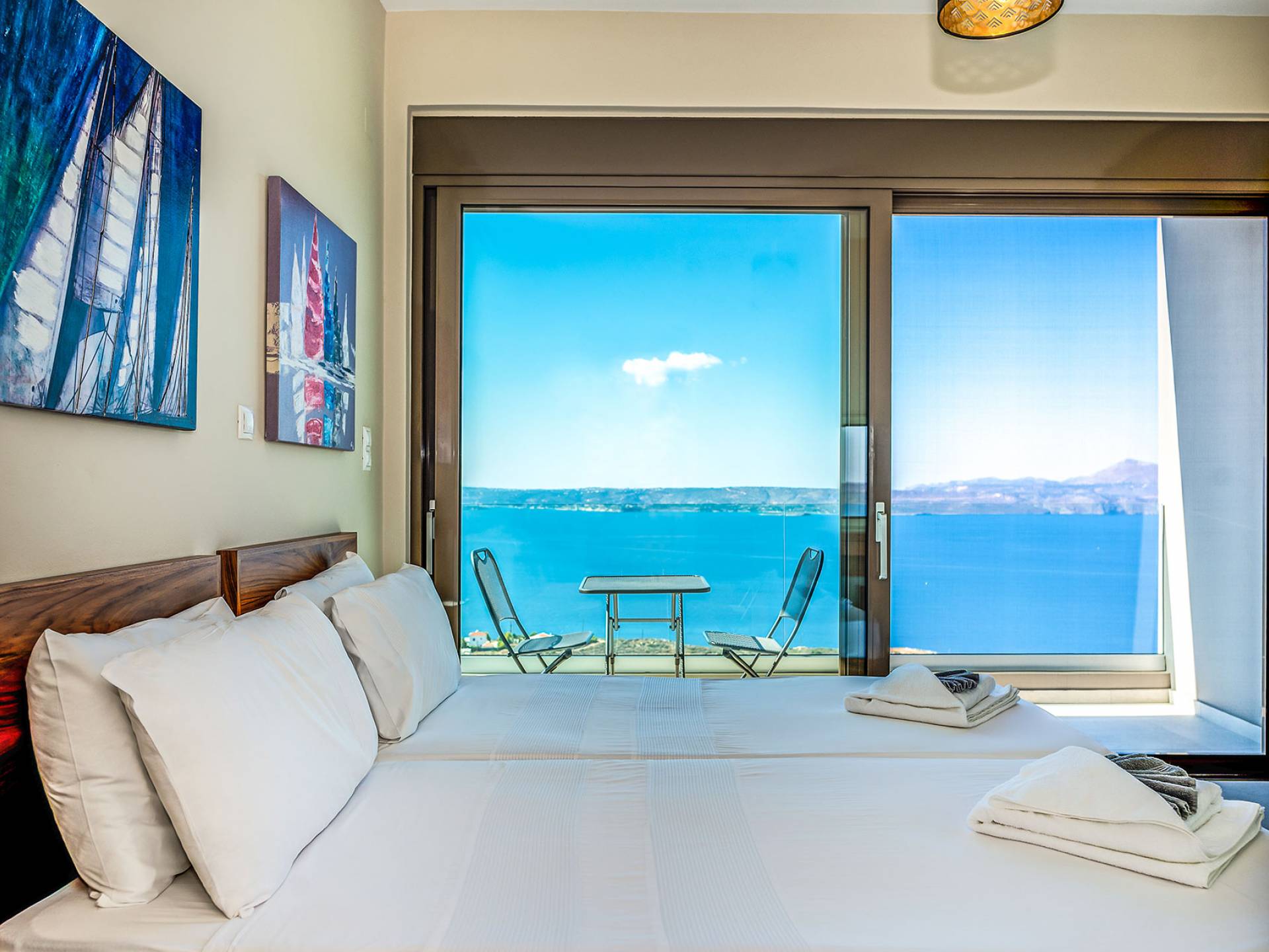 Villa Edge Chania dispose de 4 chambres principales, toutes avec salle de bains privative et placards intégrés. 2 des chambres ont des lits doubles king-size avec un éclairage LED multicolore sous-éclairé et 2 chambres à deux lits avec de grands lits simples. Chacune des chambres a une vue exceptionnelle sur la mer et toutes ont leur propre balcon privé, une salle de bain attenante avec douche à l'italienne et 2 chambres ont également une salle de bain privée. Des sèche-cheveux sont fournis dans toutes les chambres. Il y a une salle de jeux/salle de sport avec un canapé-lit double pouvant accueillir 2 personnes supplémentaires.