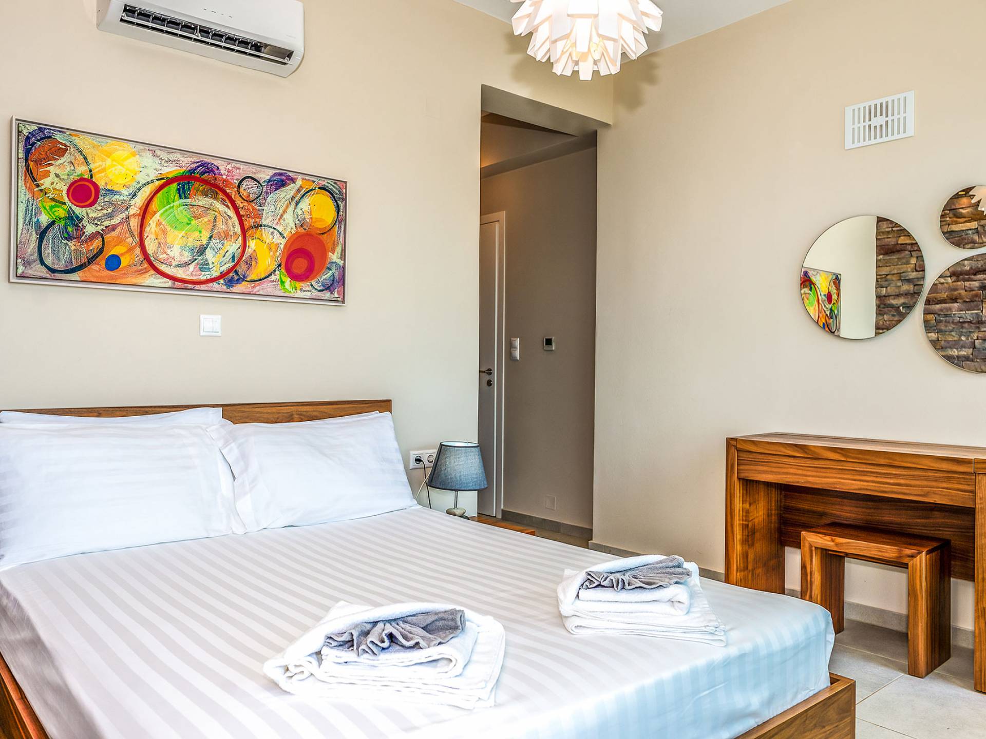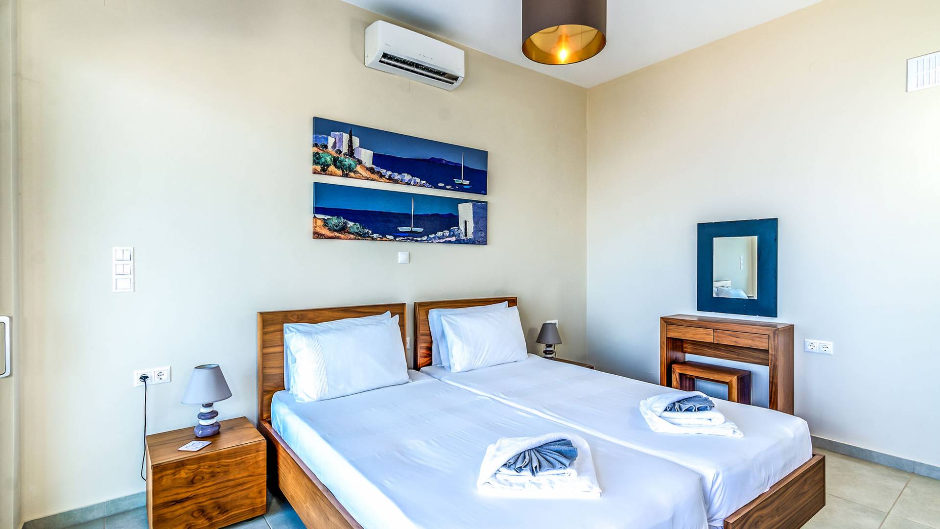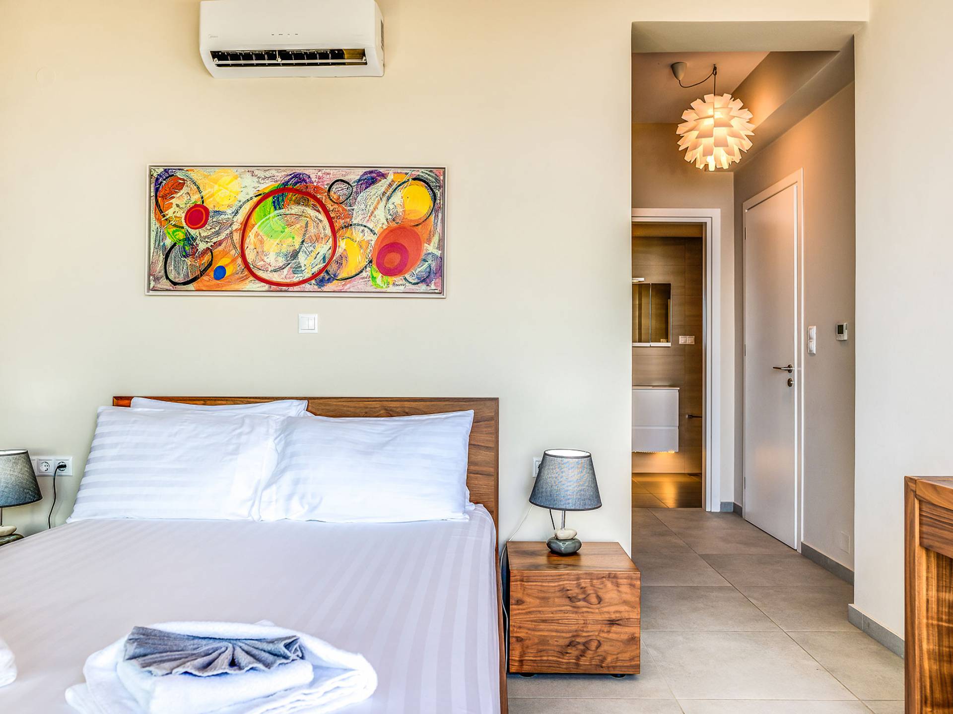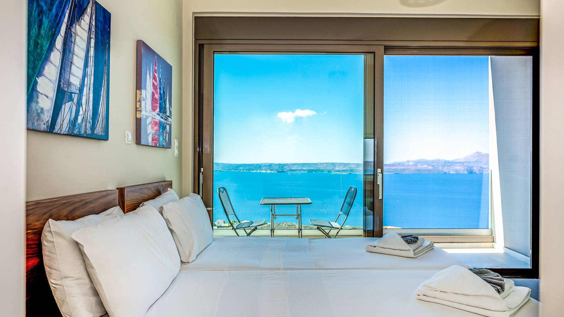 Villa Edge Chania dispose de 4 chambres principales, toutes avec salle de bains privative et placards intégrés. 2 des chambres ont des lits doubles king-size avec un éclairage LED multicolore sous-éclairé et 2 chambres à deux lits avec de grands lits simples. Chacune des chambres a une vue exceptionnelle sur la mer et toutes ont leur propre balcon privé, une salle de bain attenante avec douche à l'italienne et 2 chambres ont également une salle de bain privée. Des sèche-cheveux sont fournis dans toutes les chambres. Il y a une salle de jeux/salle de sport avec un canapé-lit double pouvant accueillir 2 personnes supplémentaires.