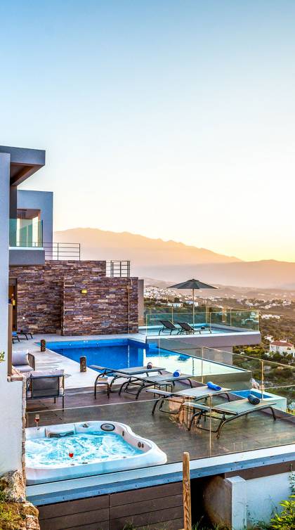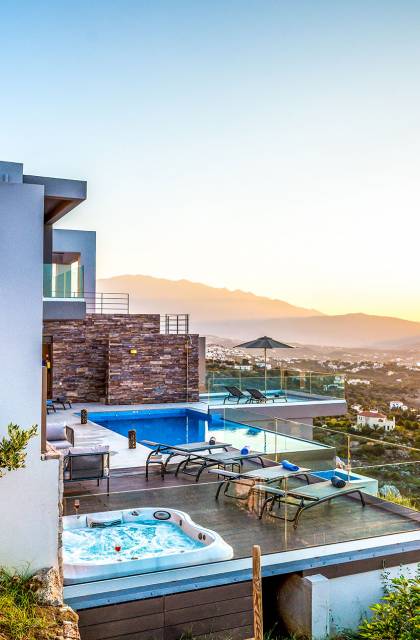 Villa Edge Chania est une superbe villa de luxe design flambant neuve pouvant accueillir jusqu'à 10 personnes et comprenant une piscine à débordement chauffée à l'énergie solaire, une connexion Wi-Fi gratuite, un bain à remous séparé, une salle de sport et une aire de jeux intérieure et extérieure.