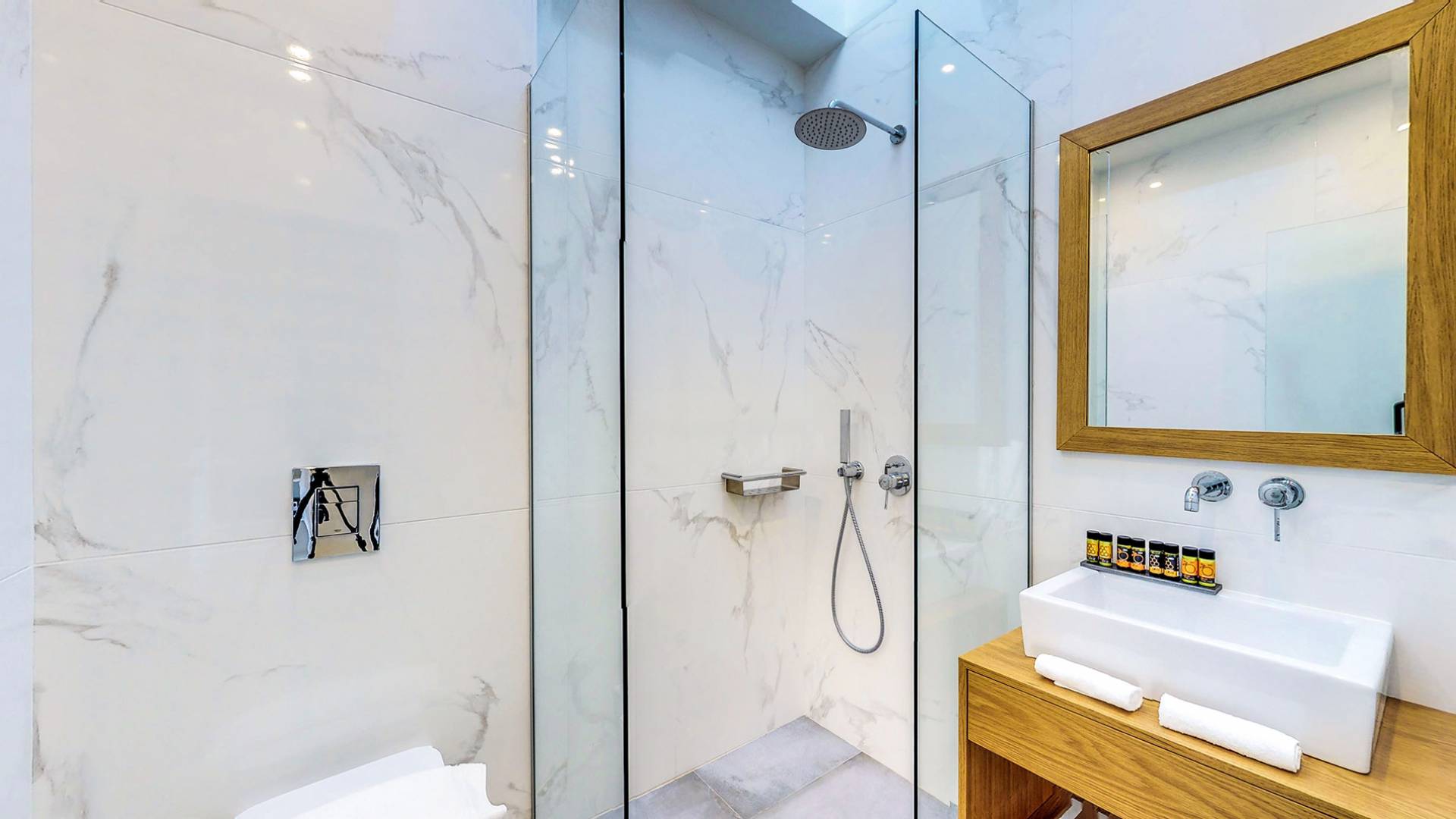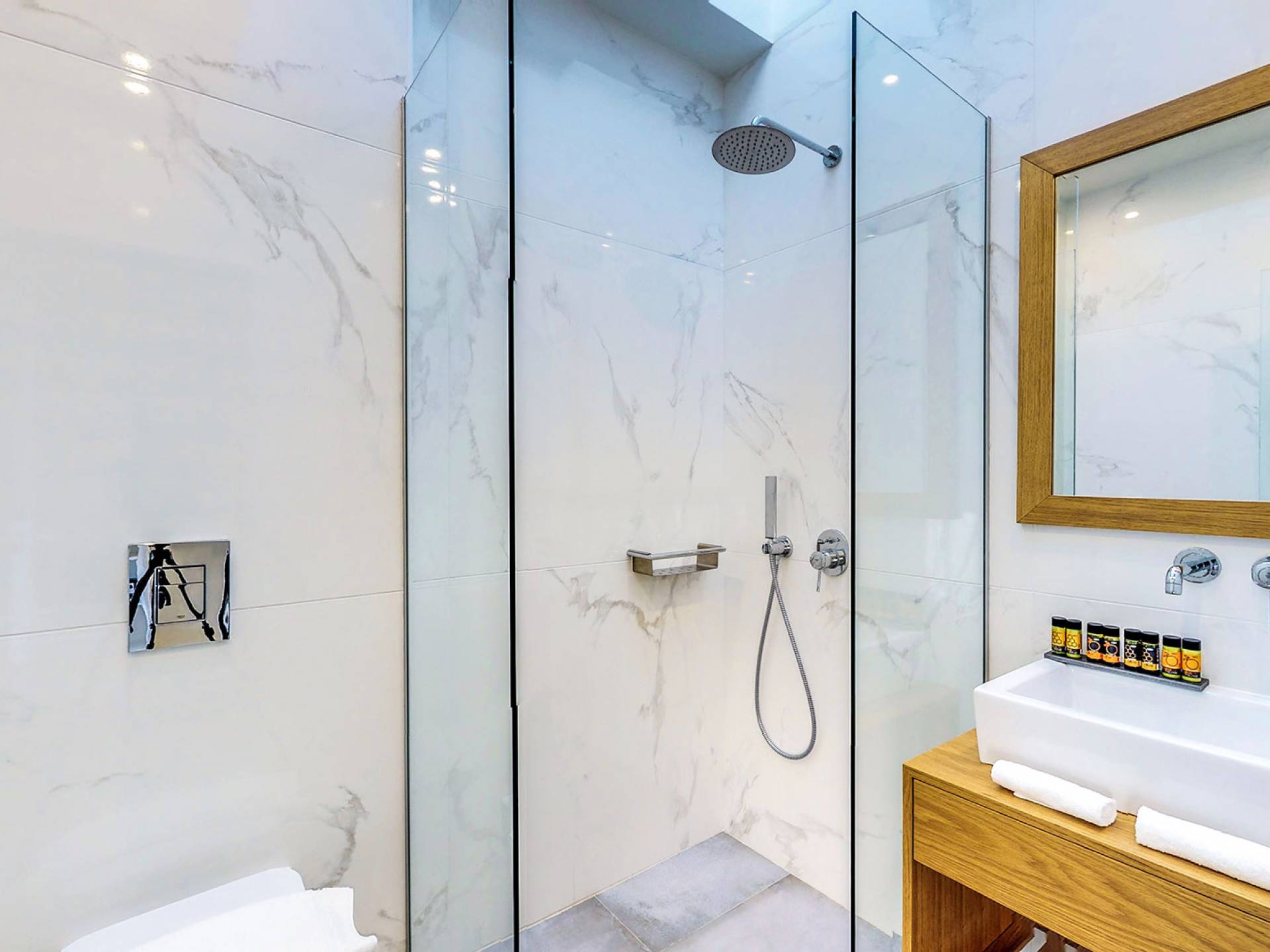 contrôlé individuellement- 4 salles de bains élégantes (3 attentes), avec des équipements modernes et des douches sans rendez-vous
