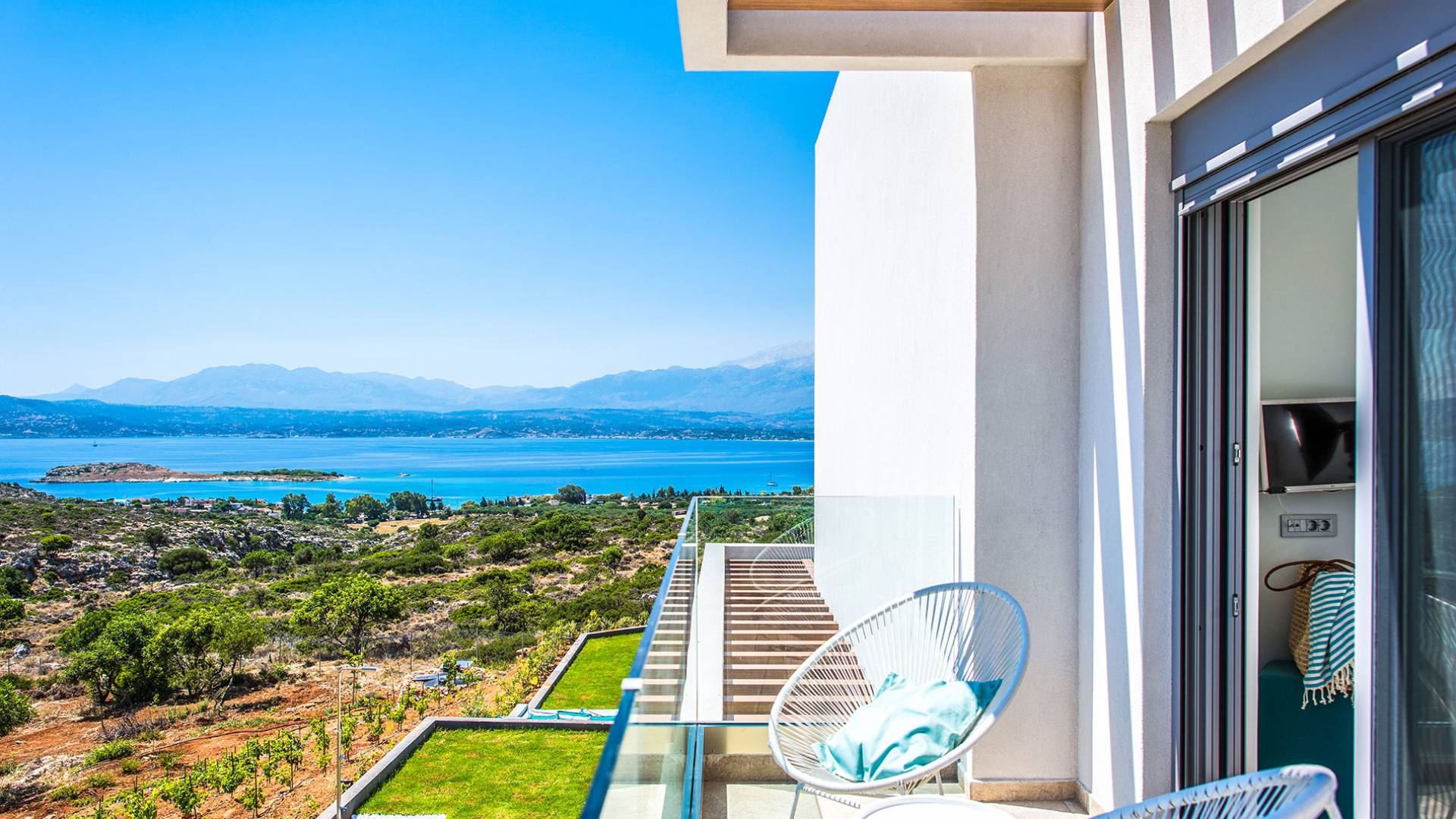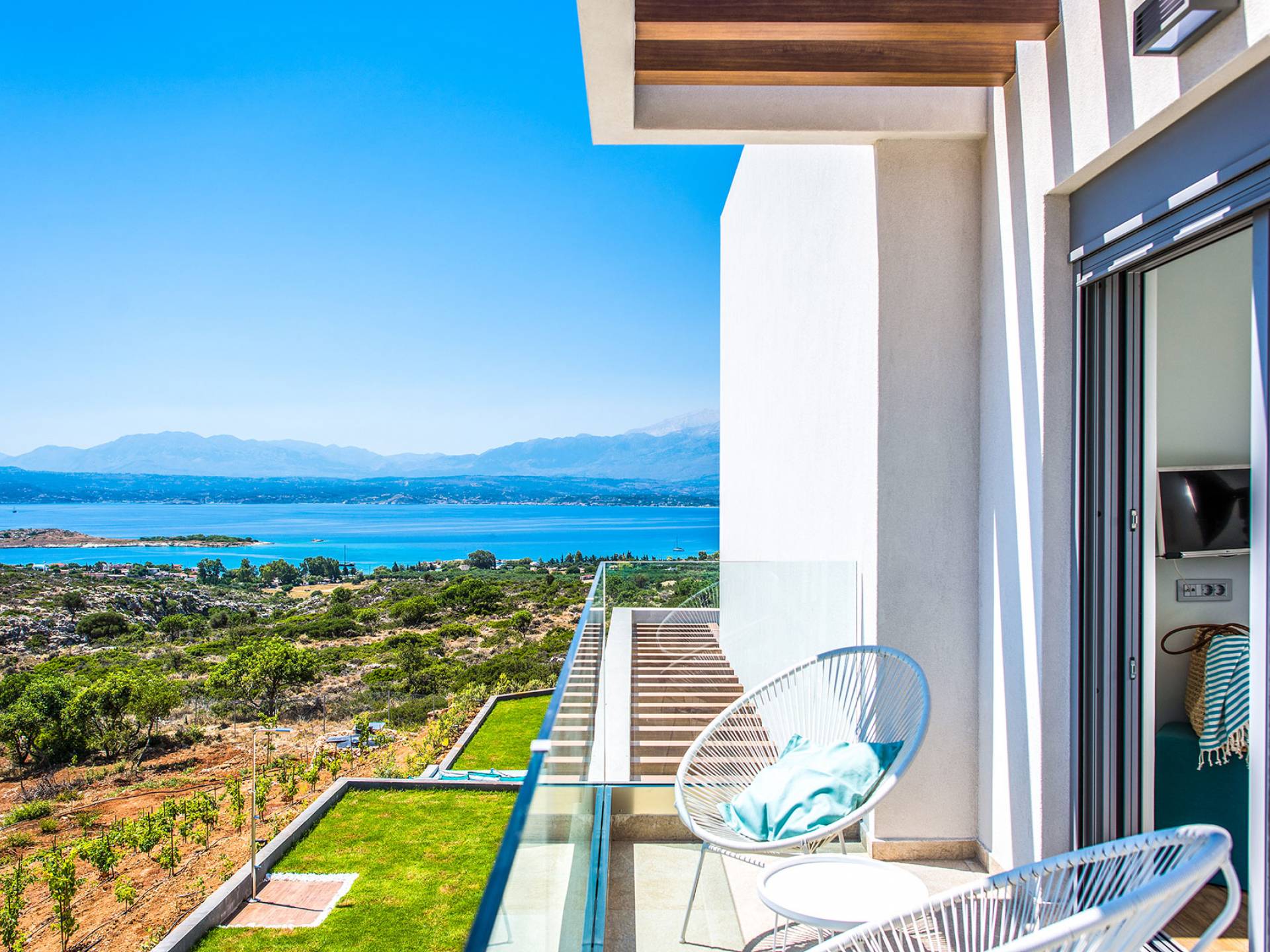 - la vue. Le bleu sans fin de la baie de Souda et des montagnes blanches de votre piscine à débordement est tout simplement à couper le souffle.
