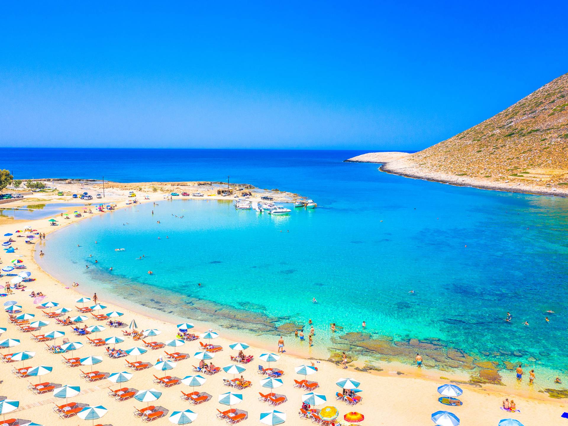 À seulement quelques minutes en voiture, la plage de Marathi offre une alternative tout aussi splendide avec une ambiance légèrement plus animée. Ses deux baies en forme de croissant sont protégées du vent, ce qui rend la mer calme et agréable toute l’année. C’est l’endroit parfait pour la baignade, le paddle ou des balades en bateau. Les tavernes au bord de l’eau y servent du poisson frais, des mezzés crétois et des vins locaux dans une atmosphère conviviale face à la baie de Souda.