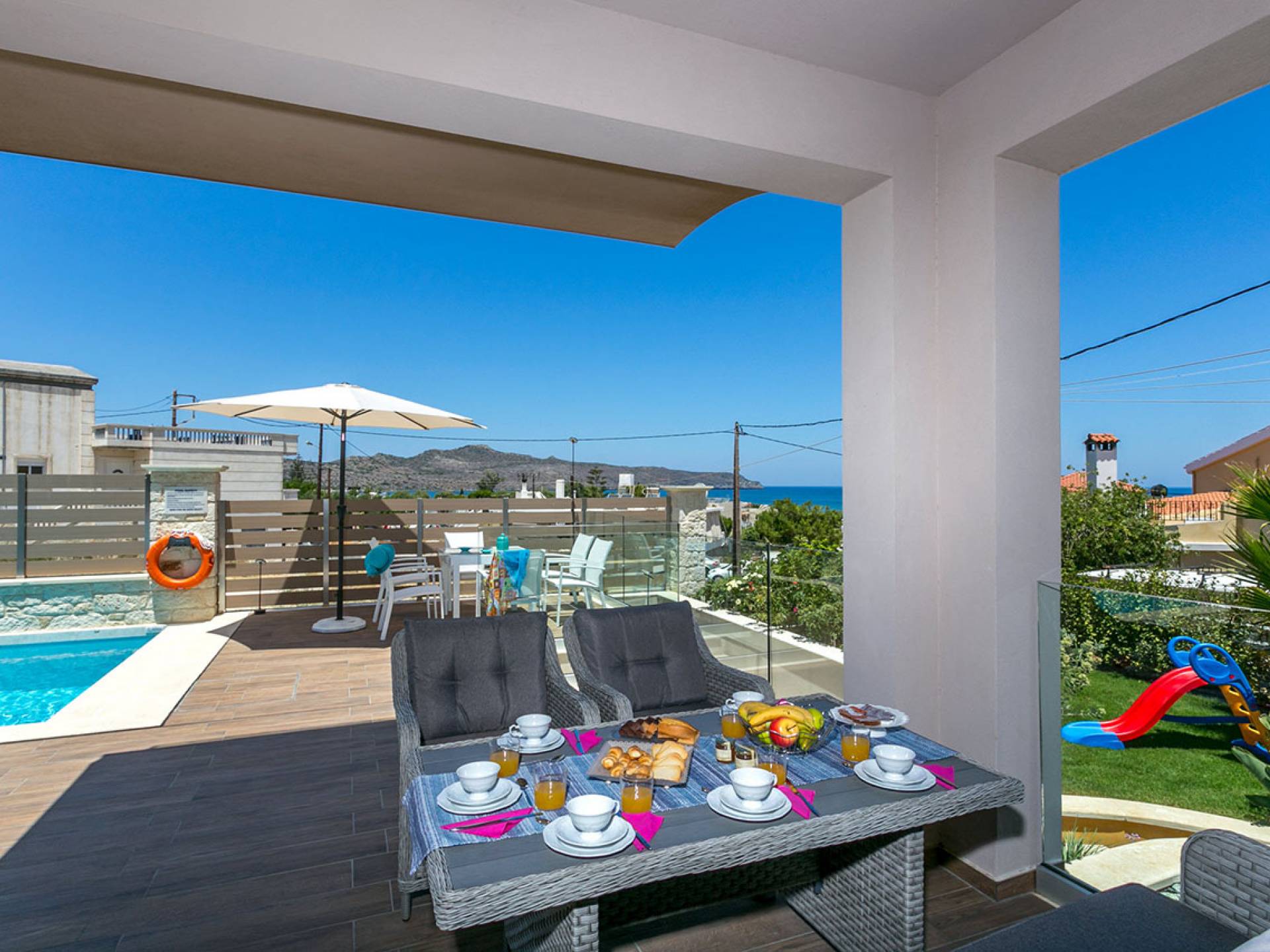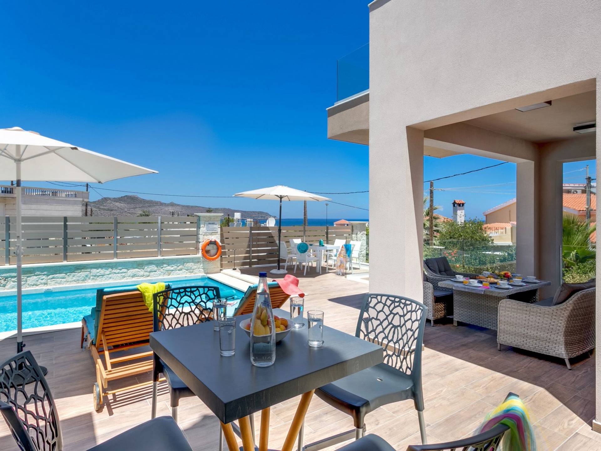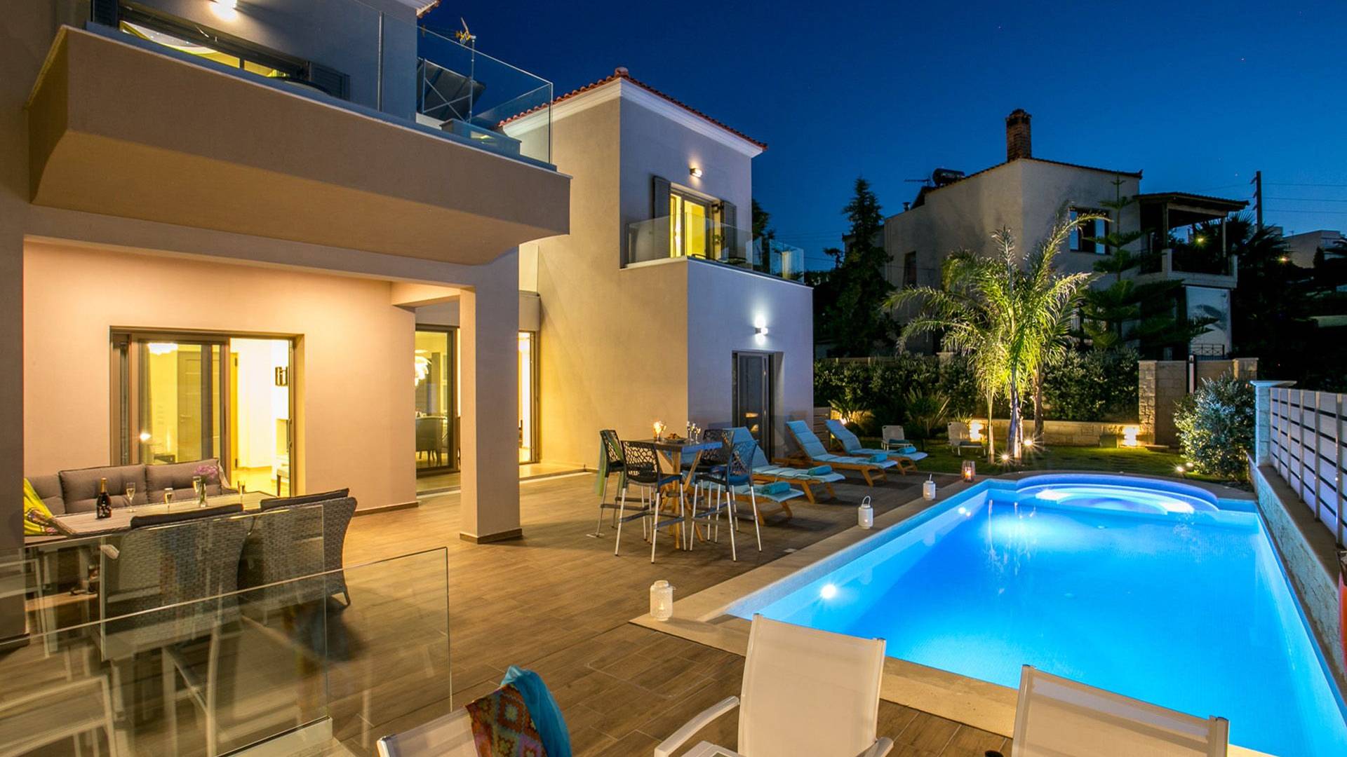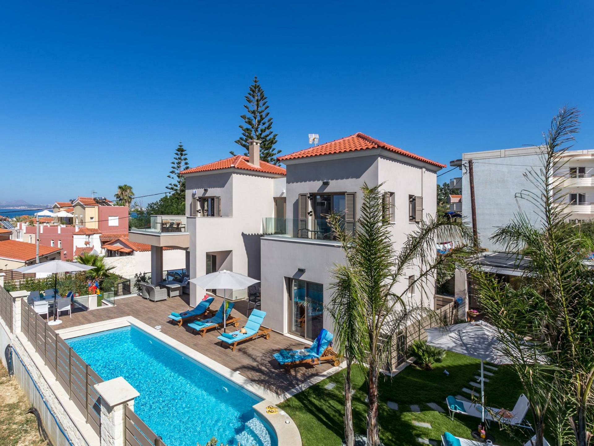 Séjourner dans une villa à Agia Marina, c’est vivre des vacances haut de gamme. Imaginez vue panoramique sur la mer, piscine privée, jardin verdoyant et intérieur méditerranéen moderne. Que vous voyagiez en couple, en famille ou entre amis, vous trouverez des villas pour tous les goûts — des retraites cosy aux résidences luxueuses.