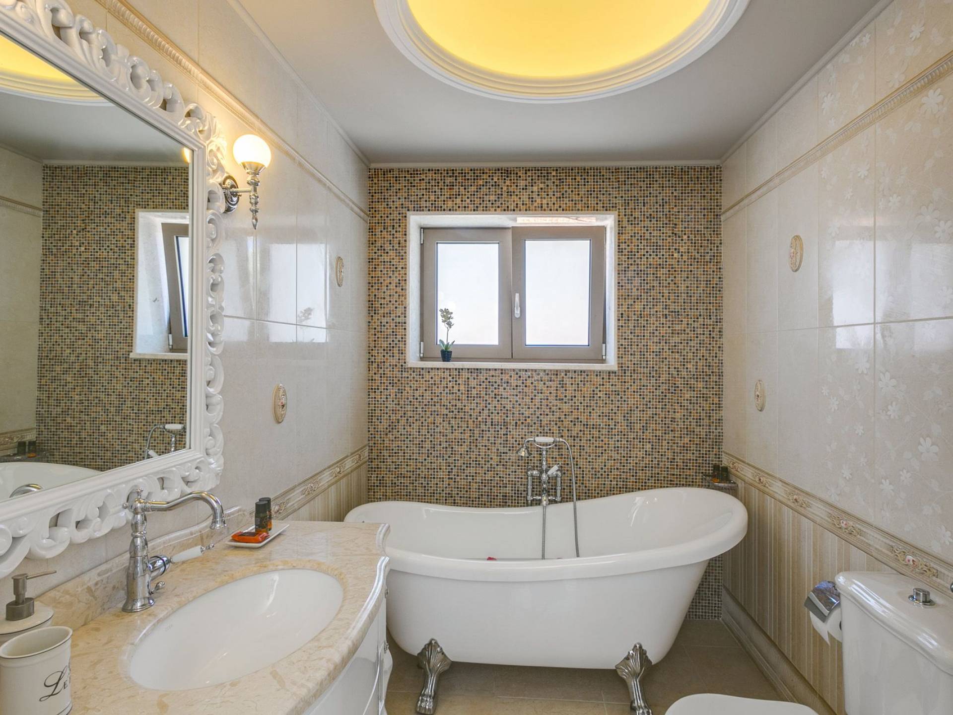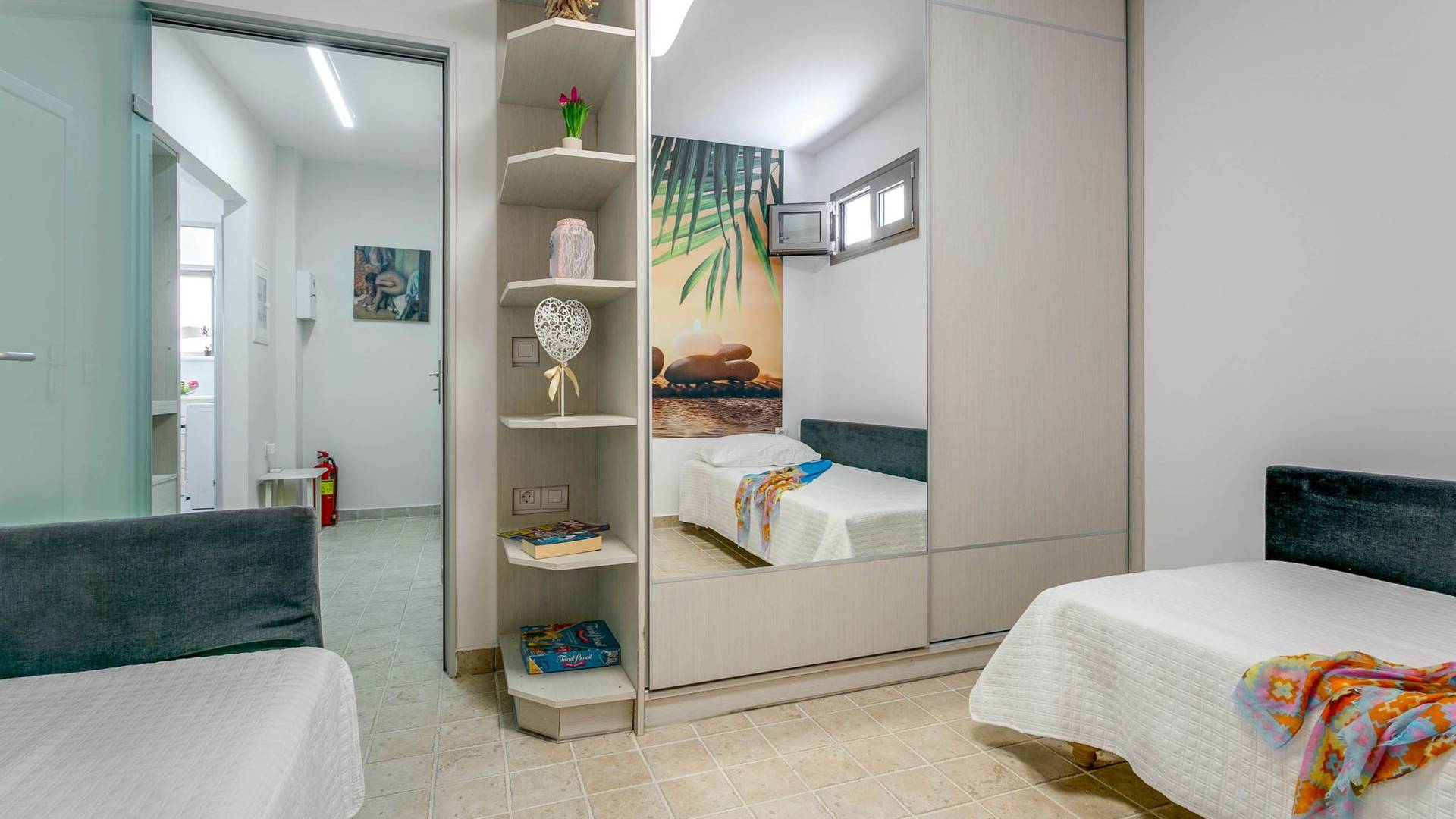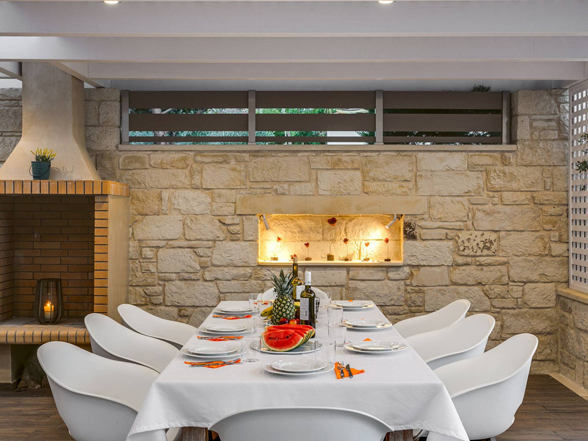Au niveau supérieur, il y a deux chambres confortables et une salle de bain. Toutes les chambres ont une vue panoramique imprenable sur la région grâce aux grandes fenêtres. Au rez-de-chaussée, il y a un coin salon avec cheminée, une salle à manger pour 8 personnes, une cuisine américaine équipée des appareils nécessaires, la chambre principale et une salle de bain avec douche. Toutes les zones ont un accès direct à la grande cour avec la piscine. Au même niveau et près de la piscine, il y a une salle à manger et un espace détente séparés. Au niveau inférieur, il y a une salle de bain et la dernière chambre avec deux canapés en coco mat qui sont conçus pour être utilisés comme lit. Une cuisine bien organisée se trouve également à l'étage inférieur. A ce niveau, vous trouverez des services de spa, il y a un humain et un sauna. Toutes les zones à l'intérieur doivent être climatisées.