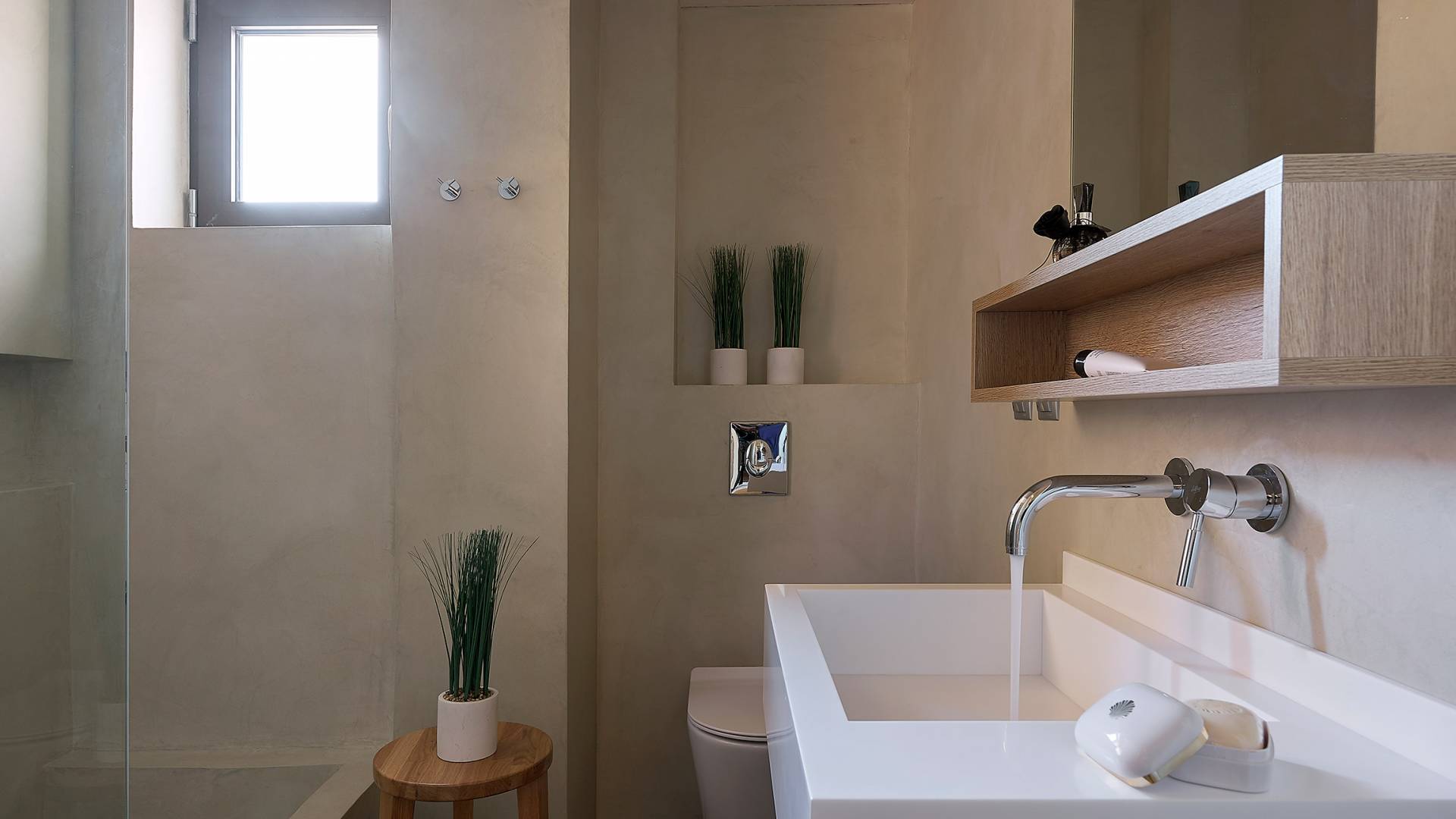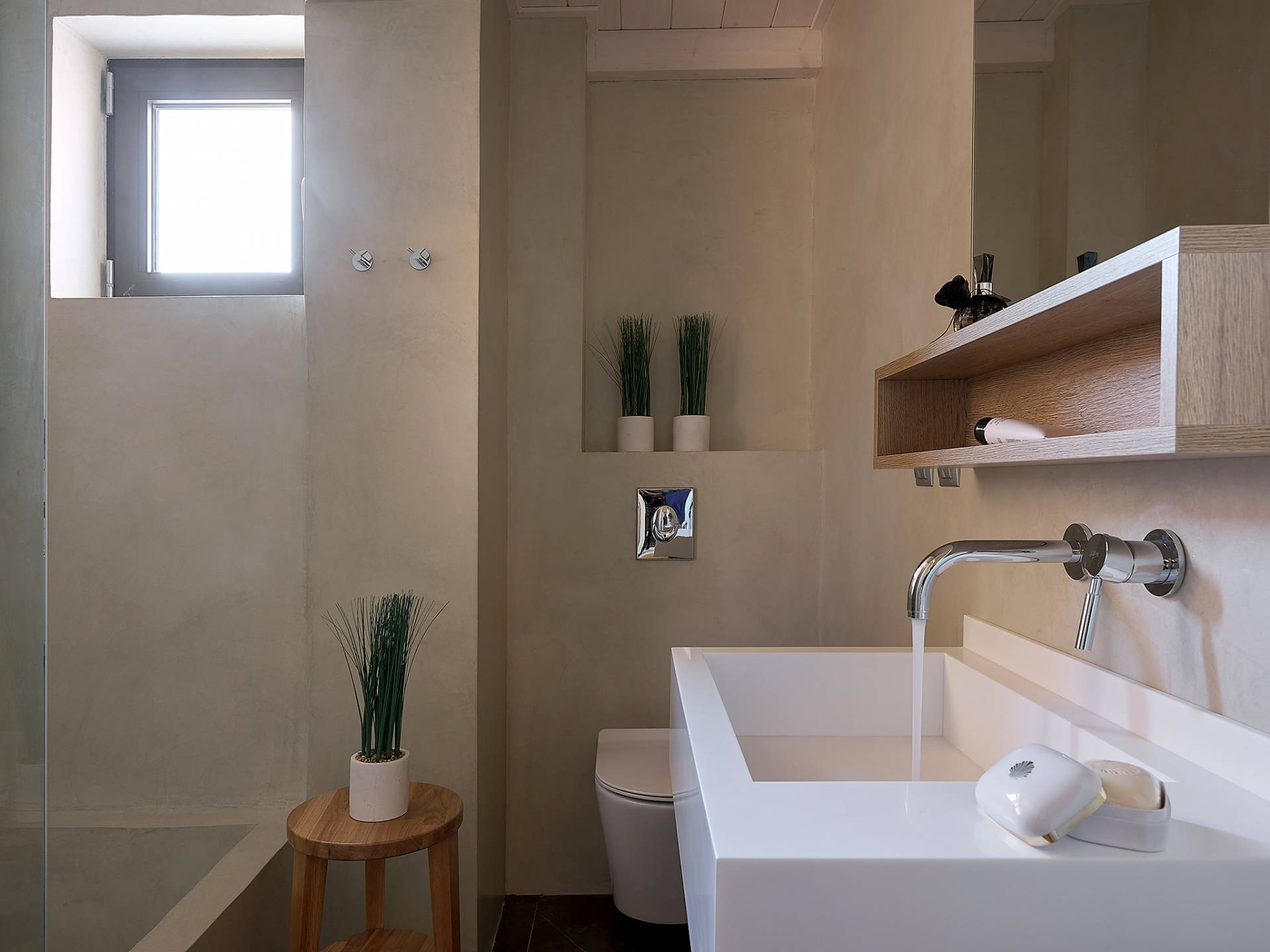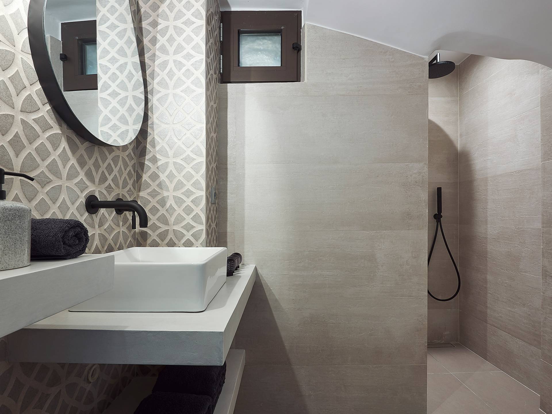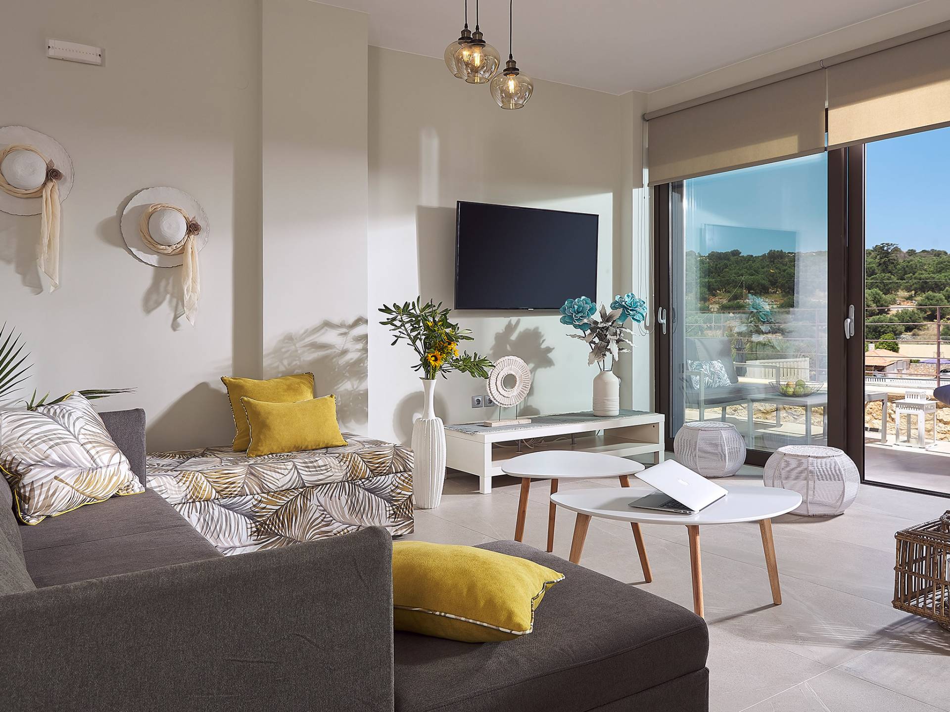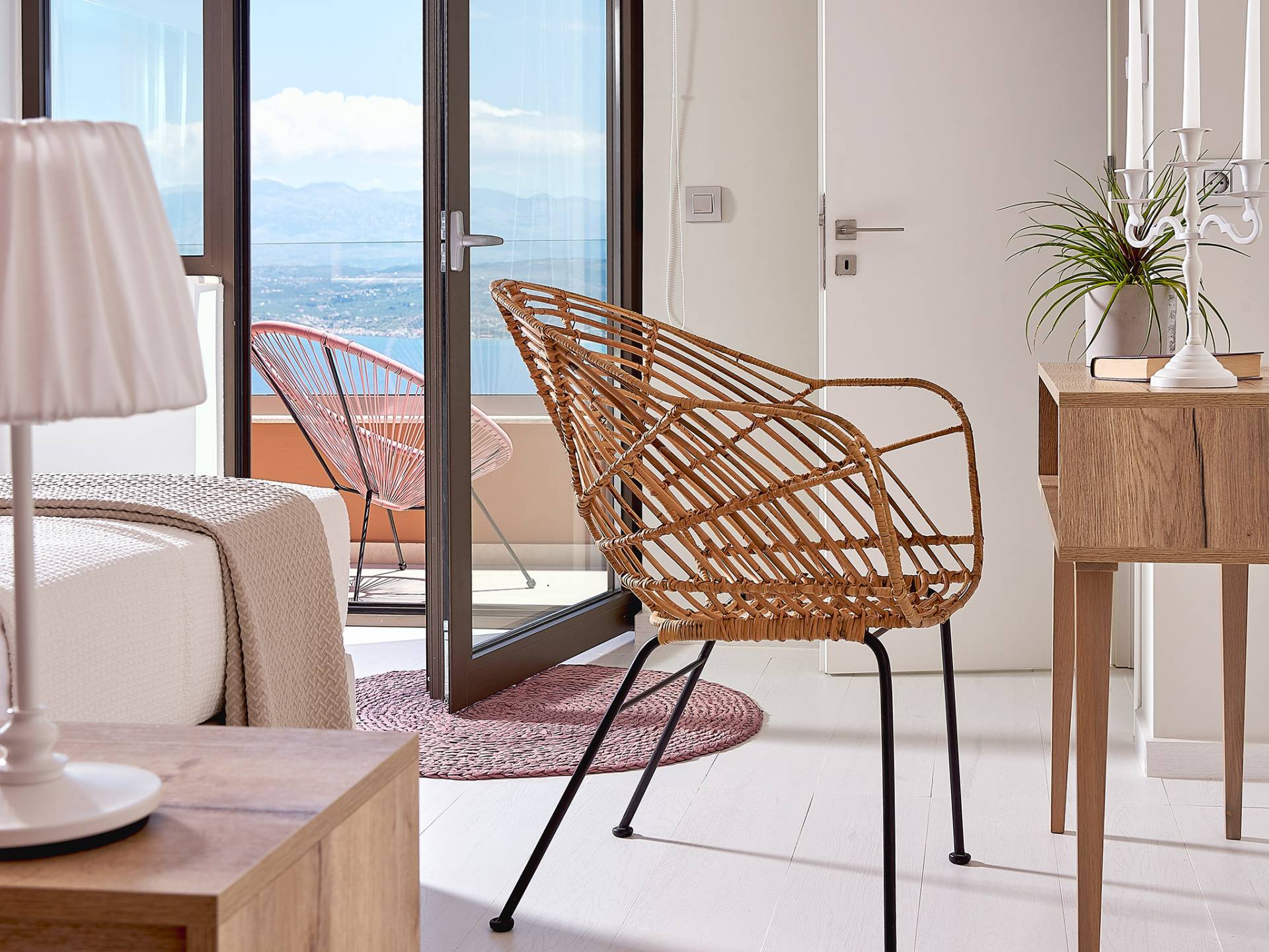 La décoration intérieure de la Villa Niolos 2 est moderne et son agencement fonctionnel, pouvant accueillir confortablement 5 personnes dans ses 3 chambres et jusqu'à 7 personnes si nécessaire. En entrant dans la villa au rez-de-chaussée, vous trouverez un spacieux espace ouvert composé du salon et de la cuisine. Le salon dispose d'un confortable canapé d'angle, d'une table basse, d'un téléviseur HD 55'' et d'un coin repas intérieur et offre un accès direct à une véranda équipée de mobilier de jardin. À côté, la cuisine est entièrement équipée avec tous les appareils essentiels pour rendre vos vacances indépendantes aussi faciles que possible et offre un comptoir de petit-déjeuner et un accès direct à une véranda avec un coin repas extérieur et un barbecue à gaz. Toute la pièce est lumineuse et aérée et bénéficie de belles vues sur la mer. Une salle de bains avec douche et un débarras séparé avec lave-linge se trouvent également au même étage.