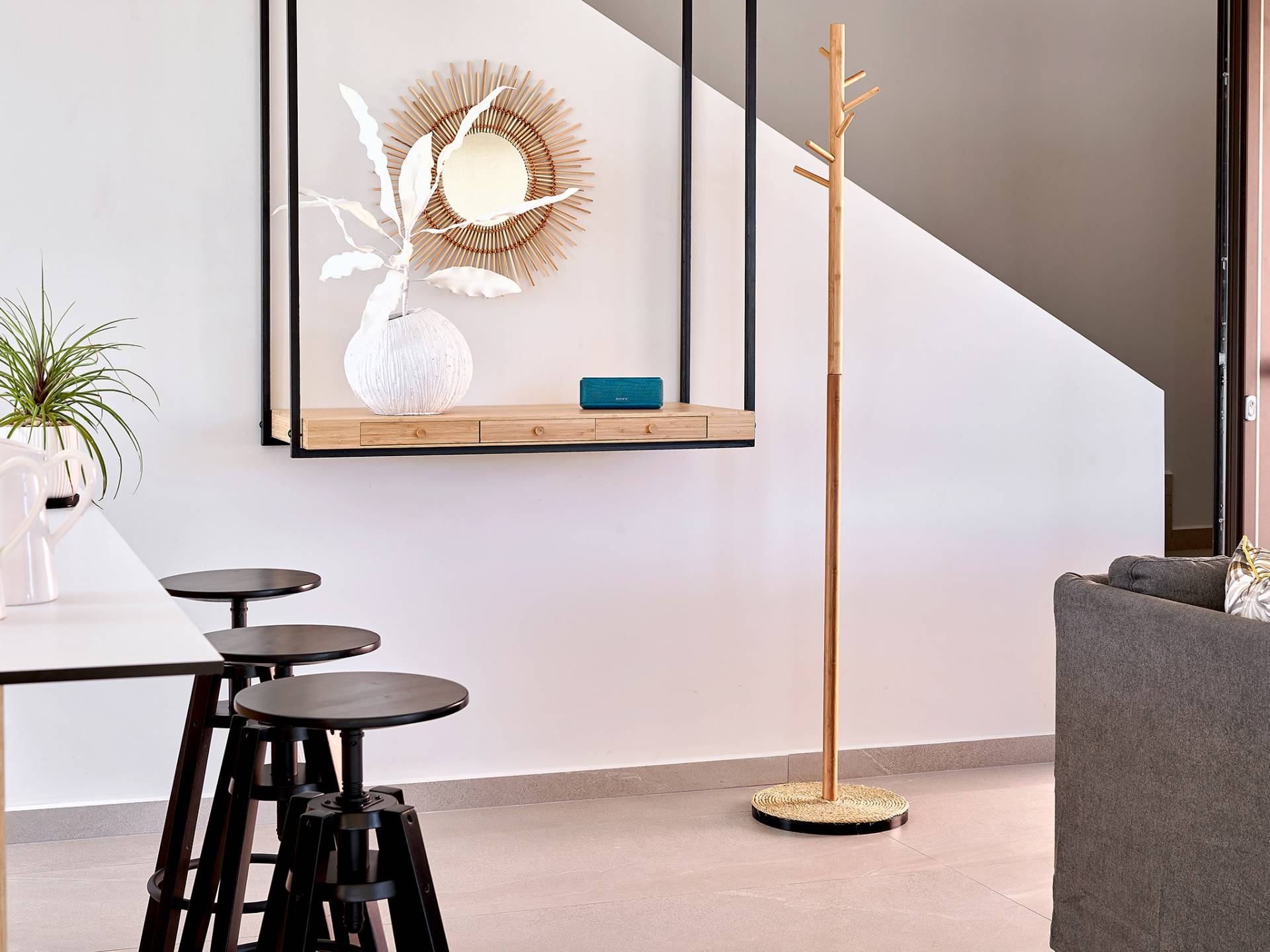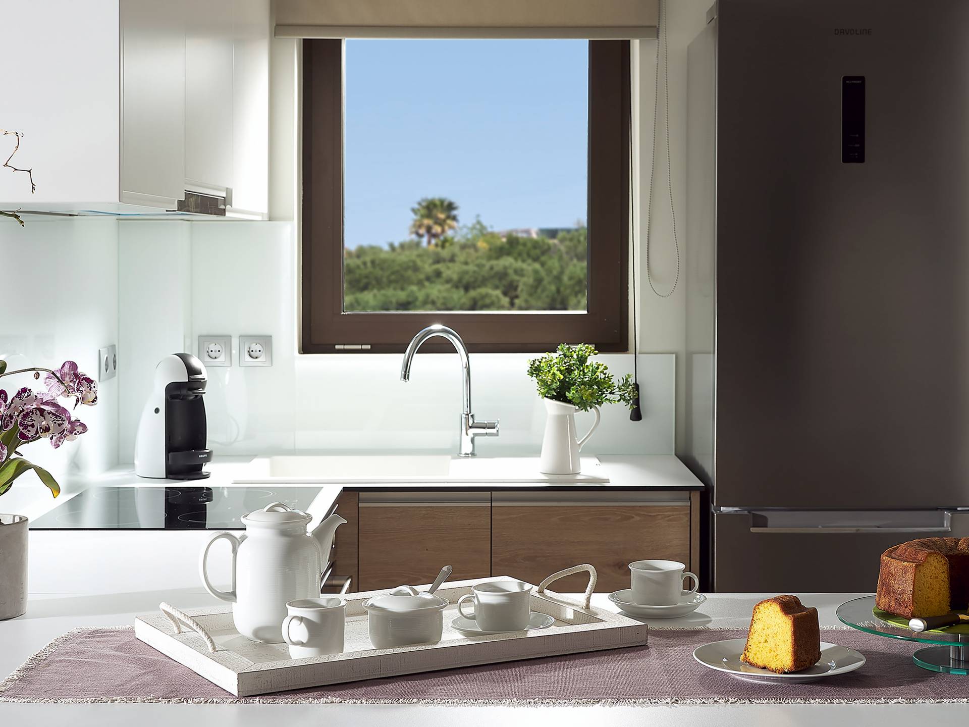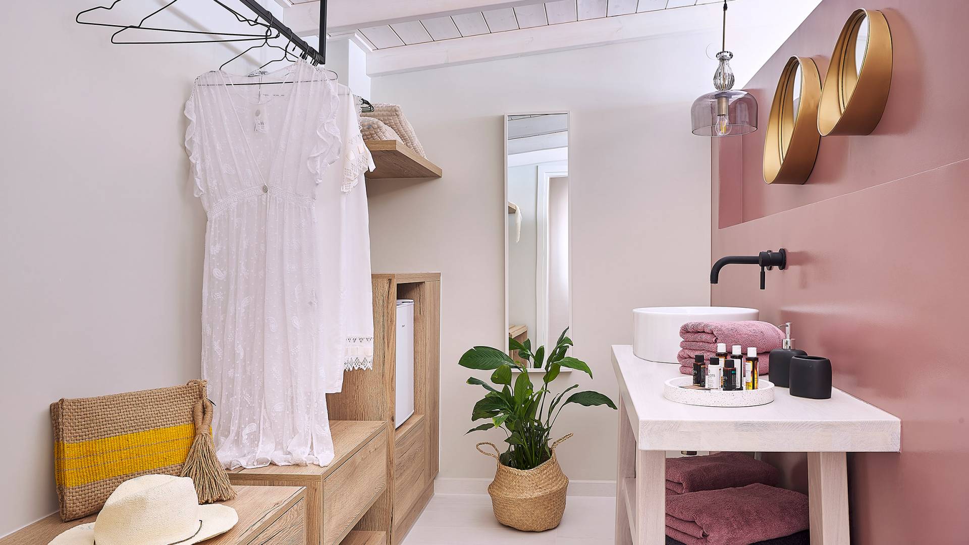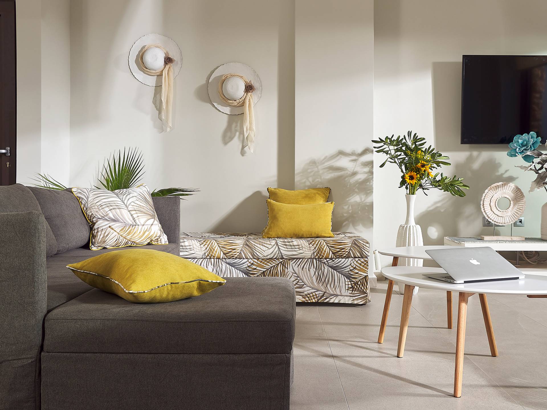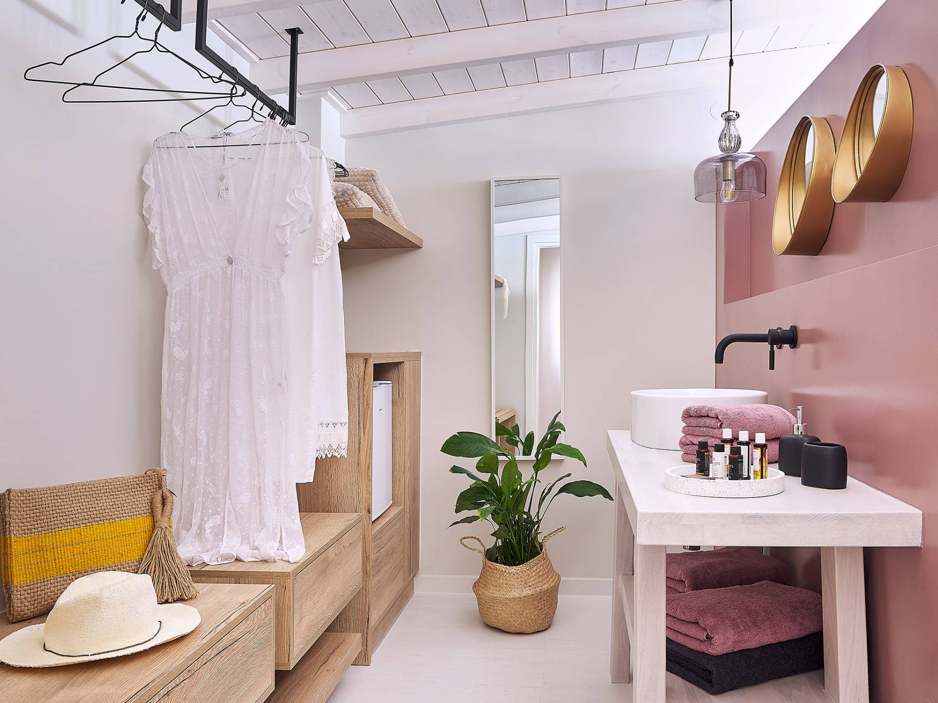 La décoration intérieure de la Villa Niolos 2 est moderne et son agencement fonctionnel, pouvant accueillir confortablement 5 personnes dans ses 3 chambres et jusqu'à 7 personnes si nécessaire. En entrant dans la villa au rez-de-chaussée, vous trouverez un spacieux espace ouvert composé du salon et de la cuisine. Le salon dispose d'un confortable canapé d'angle, d'une table basse, d'un téléviseur HD 55'' et d'un coin repas intérieur et offre un accès direct à une véranda équipée de mobilier de jardin. À côté, la cuisine est entièrement équipée avec tous les appareils essentiels pour rendre vos vacances indépendantes aussi faciles que possible et offre un comptoir de petit-déjeuner et un accès direct à une véranda avec un coin repas extérieur et un barbecue à gaz. Toute la pièce est lumineuse et aérée et bénéficie de belles vues sur la mer. Une salle de bains avec douche et un débarras séparé avec lave-linge se trouvent également au même étage.