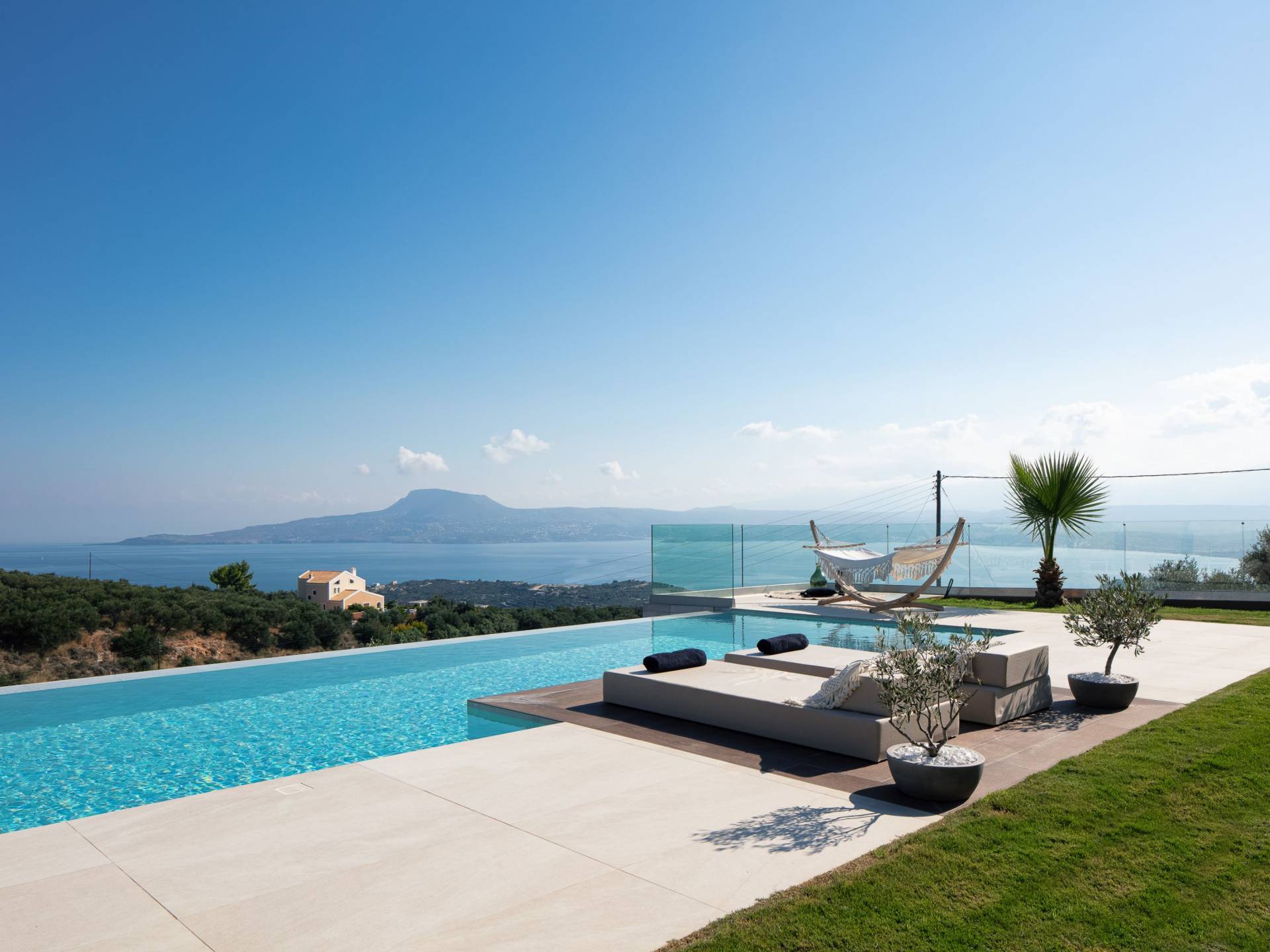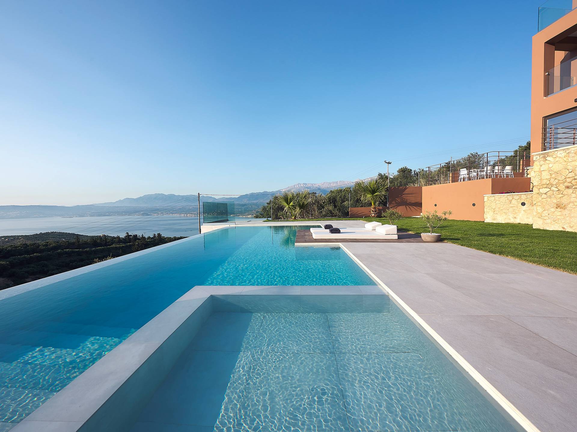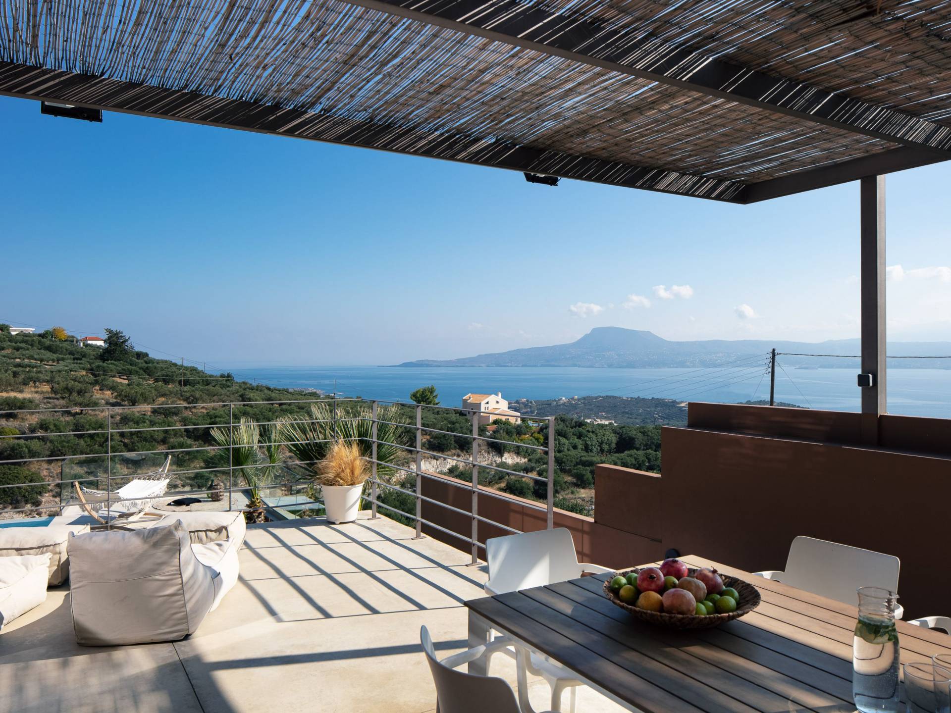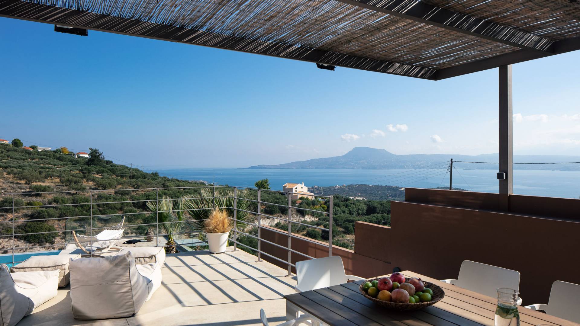 Villa Niolos 2 est une villa de luxe de 140 m², nouvellement construite, construite avec des normes de conception et de qualité de construction élevées, située à côté du village de Sternes, à seulement 2 minutes en voiture des plages de sable bien connues de Marathi et Loutraki. En raison de sa position (située à flanc de colline), la villa offre une vue incroyable sur la baie de Souda.