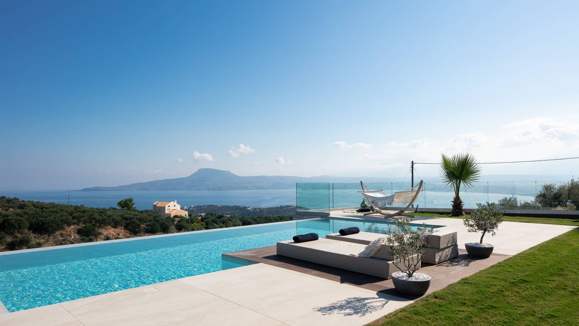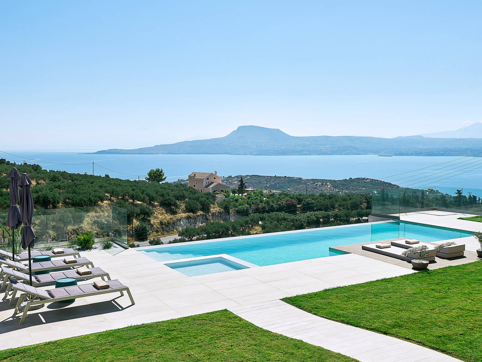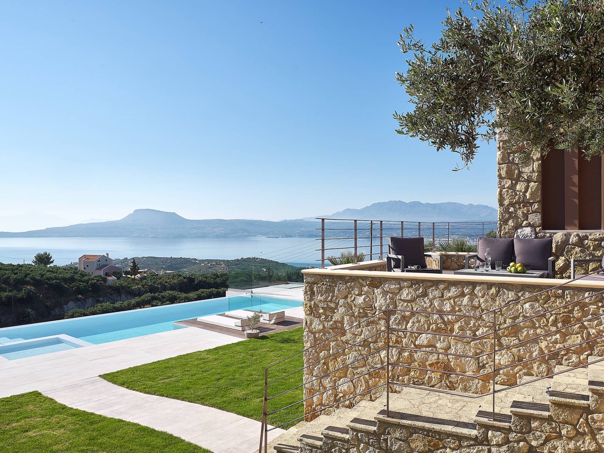 Villa Niolos 2 est une villa de luxe de 140 m², nouvellement construite, construite avec des normes de conception et de qualité de construction élevées, située à côté du village de Sternes, à seulement 2 minutes en voiture des plages de sable bien connues de Marathi et Loutraki. En raison de sa position (située à flanc de colline), la villa offre une vue incroyable sur la baie de Souda.