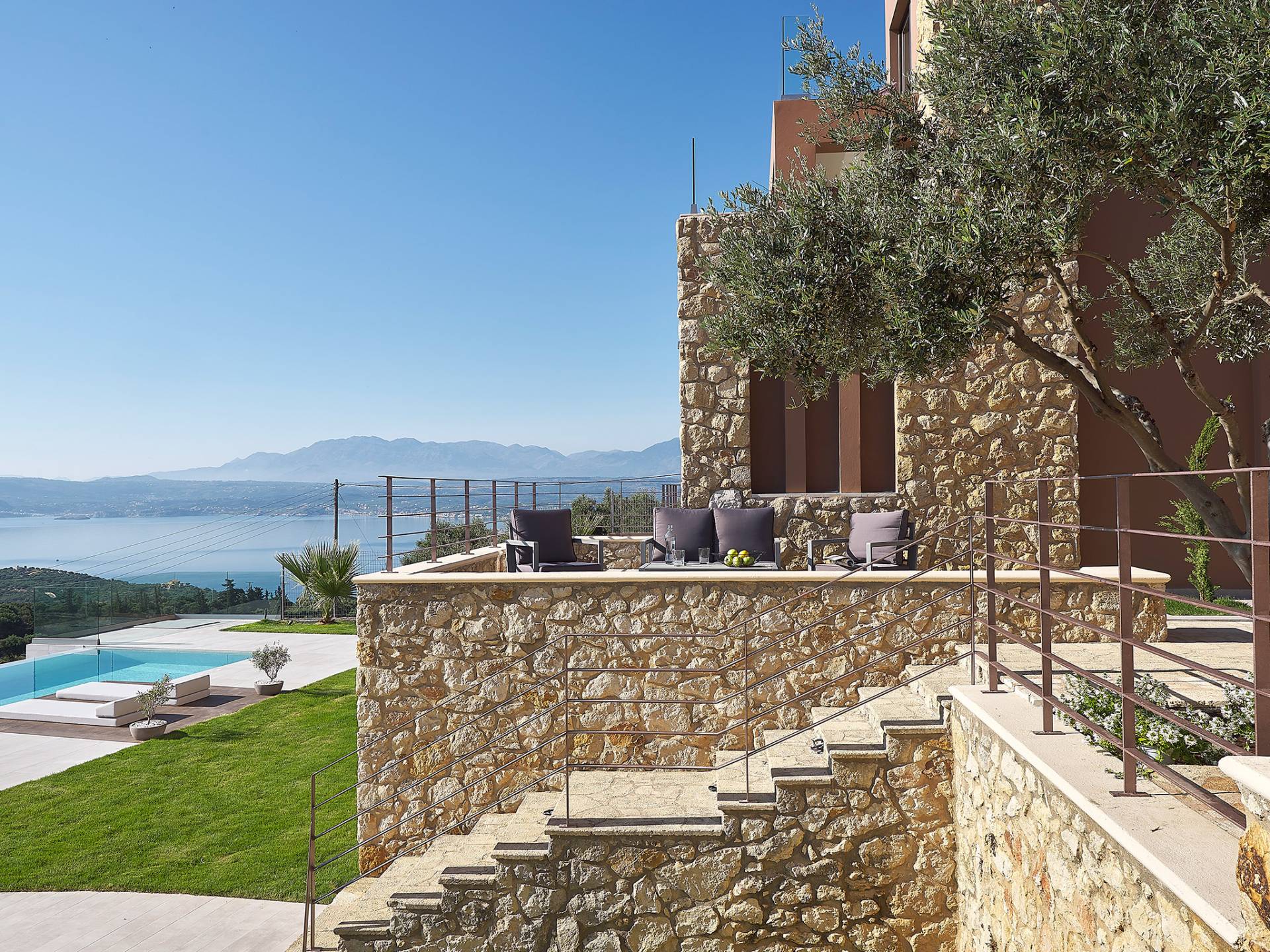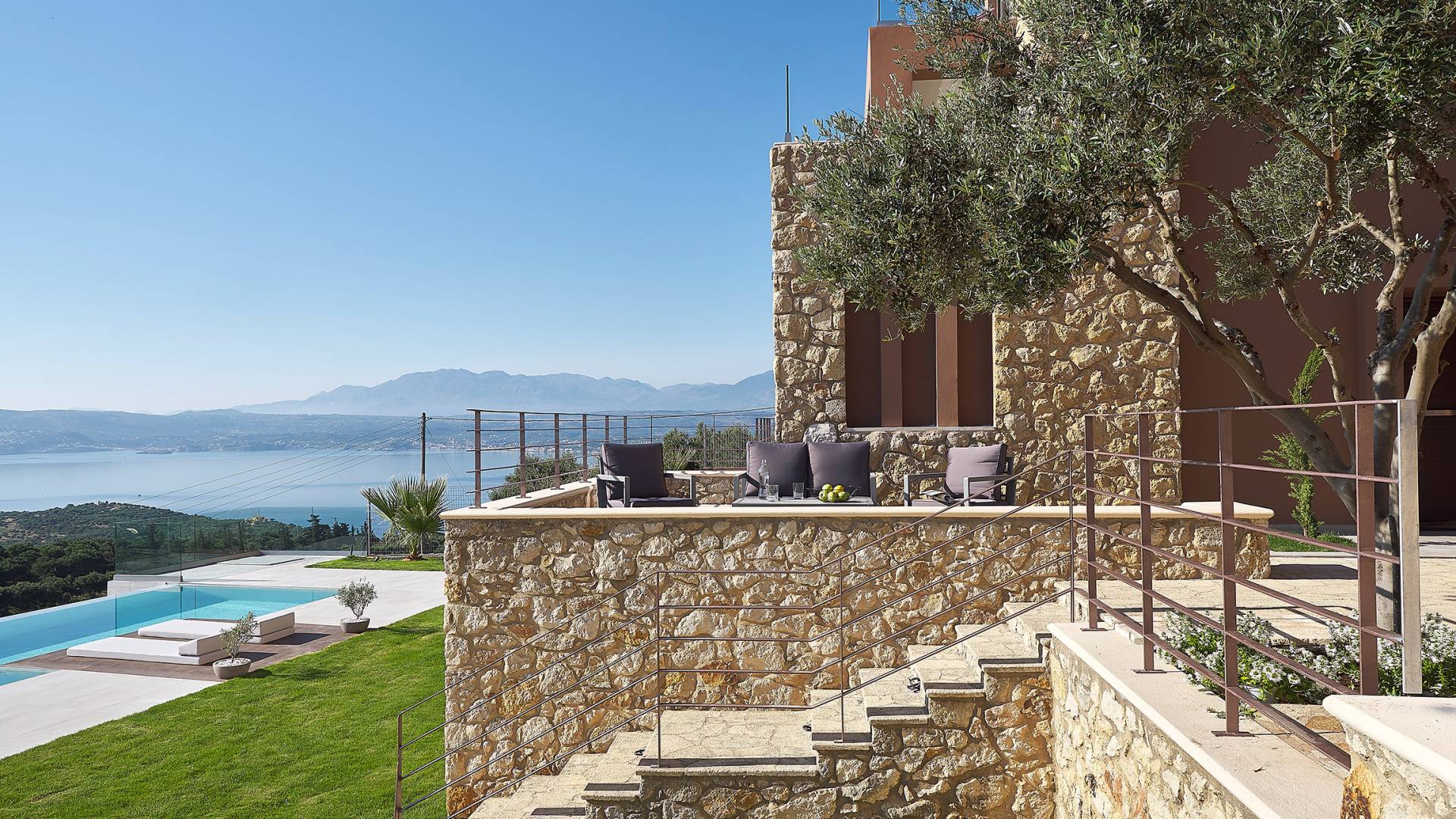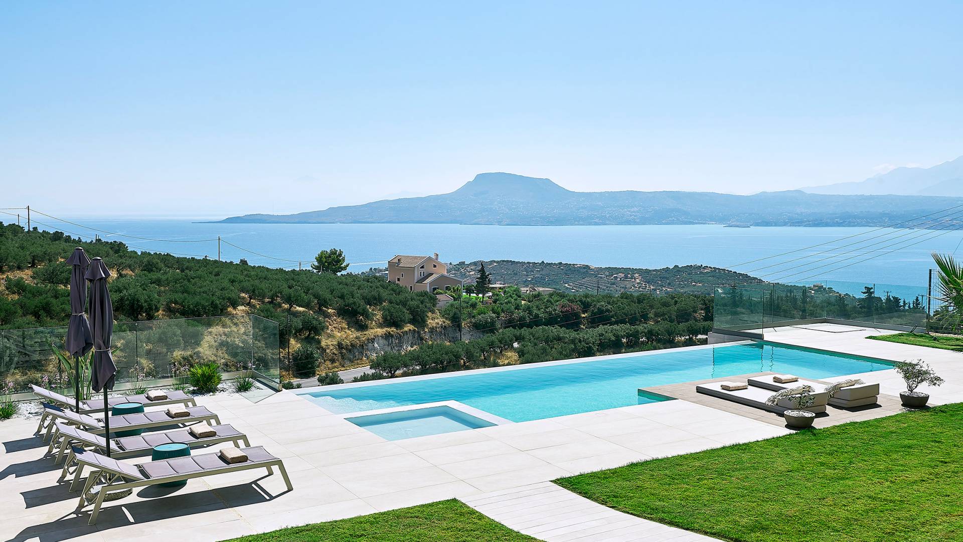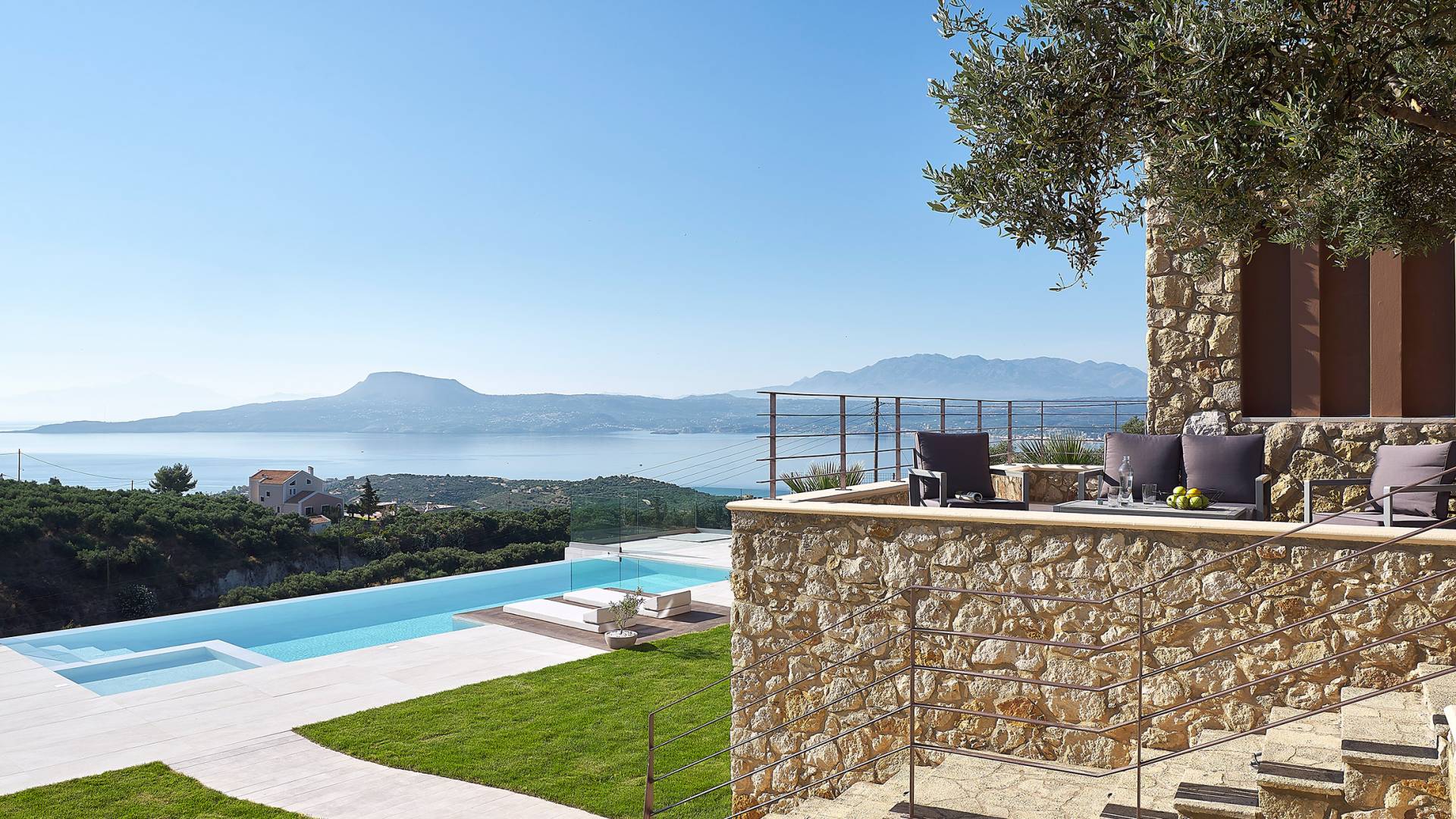 Villa Niolos 2 est une villa de luxe de 140 m², nouvellement construite, construite avec des normes de conception et de qualité de construction élevées, située à côté du village de Sternes, à seulement 2 minutes en voiture des plages de sable bien connues de Marathi et Loutraki. En raison de sa position (située à flanc de colline), la villa offre une vue incroyable sur la baie de Souda.