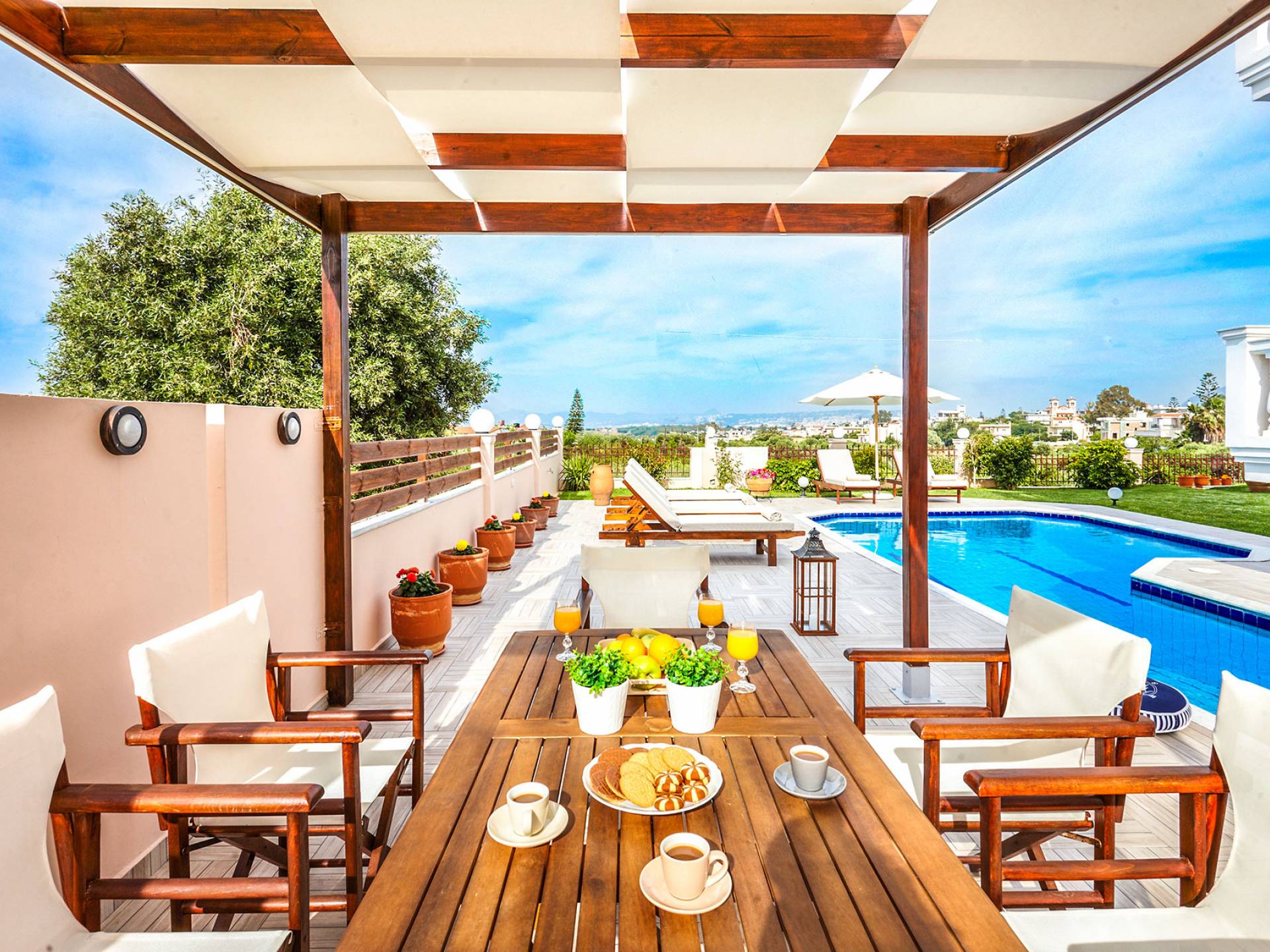 Séjourner dans une villa à Kalamaki, c’est se réveiller au son des vagues et savourer son café du matin face à la mer Égée. Avec piscine privée, terrasse ensoleillée et totale intimité, votre villa devient bien plus qu’un simple hébergement : c’est votre havre de paix.