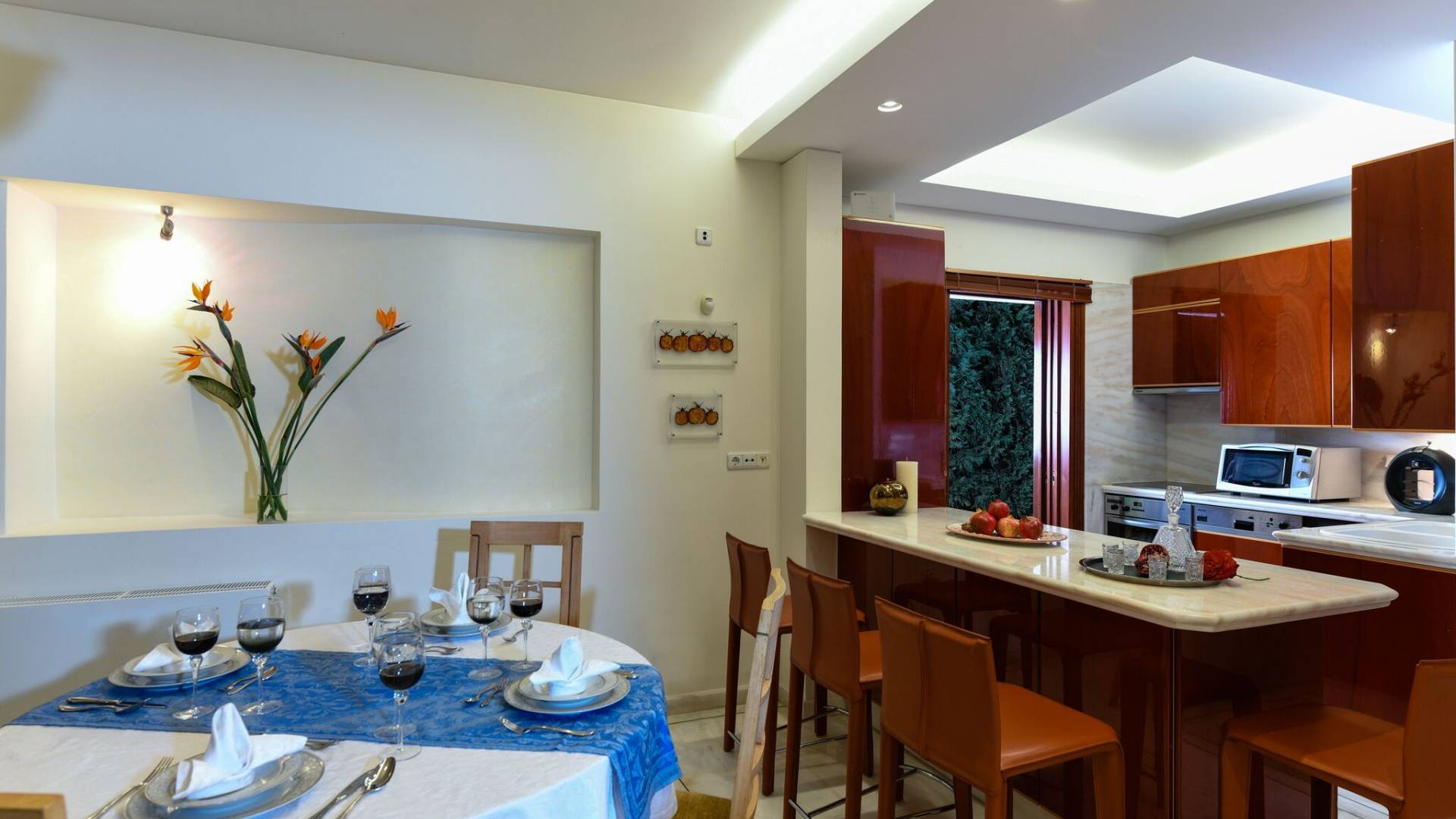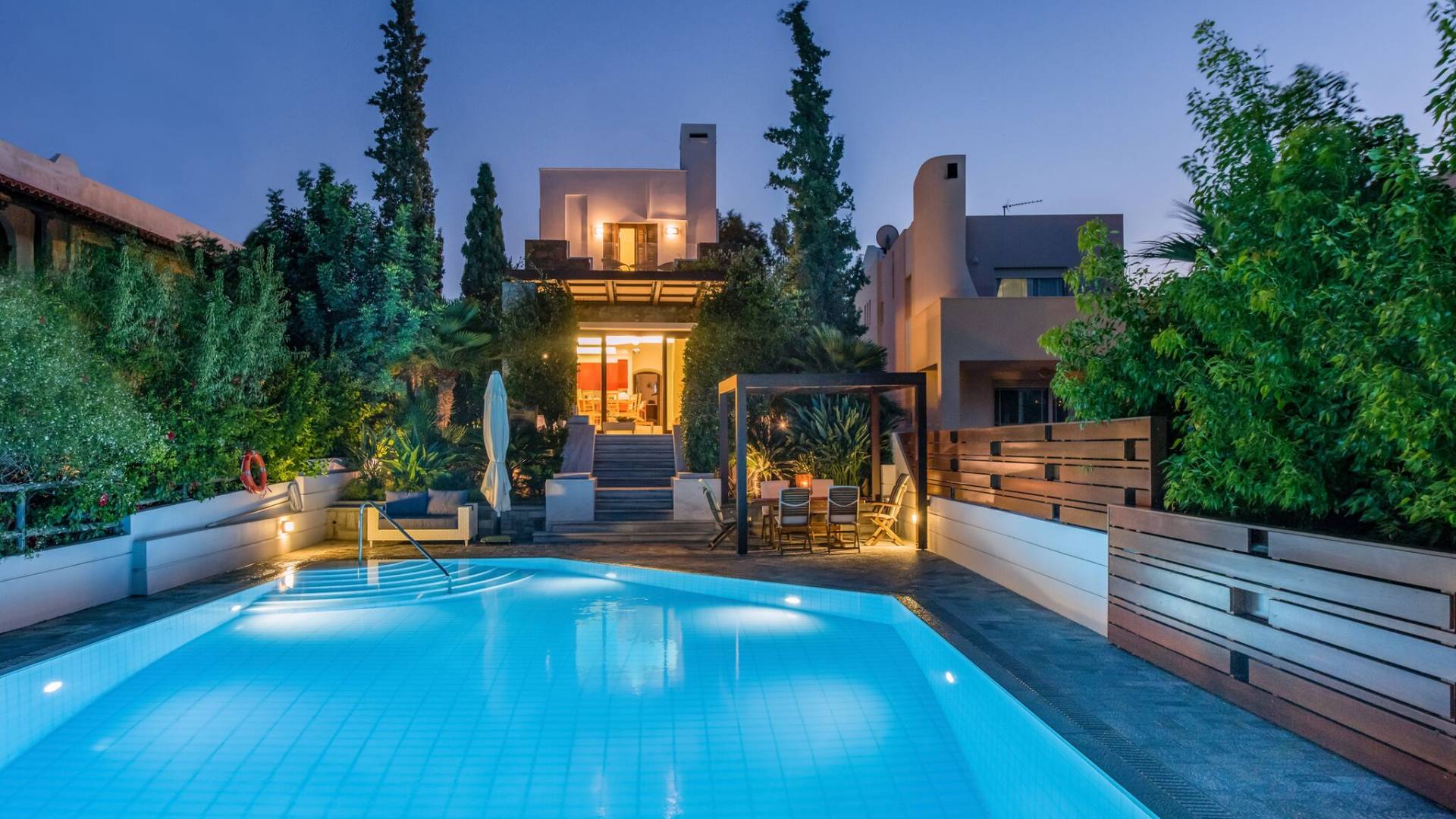 La villa « Agios Nikolaos » (traduction grecque du mot « Saint Nicolas ») est une luxueuse villa, construite avec des matériaux traditionnels comme la roche et le marbre. Il combine l'architecture crétoise avec le grec moderne, offrant tout le confort que la destination du voyage exige de la Crète. Il est situé dans un paysage d'une beauté étonnante, l'un des plus beaux de Crète, à côté de la mer et directement voisin de la zone humide unique d'Almyros (protégée par le traité international de Ramsar 1971)