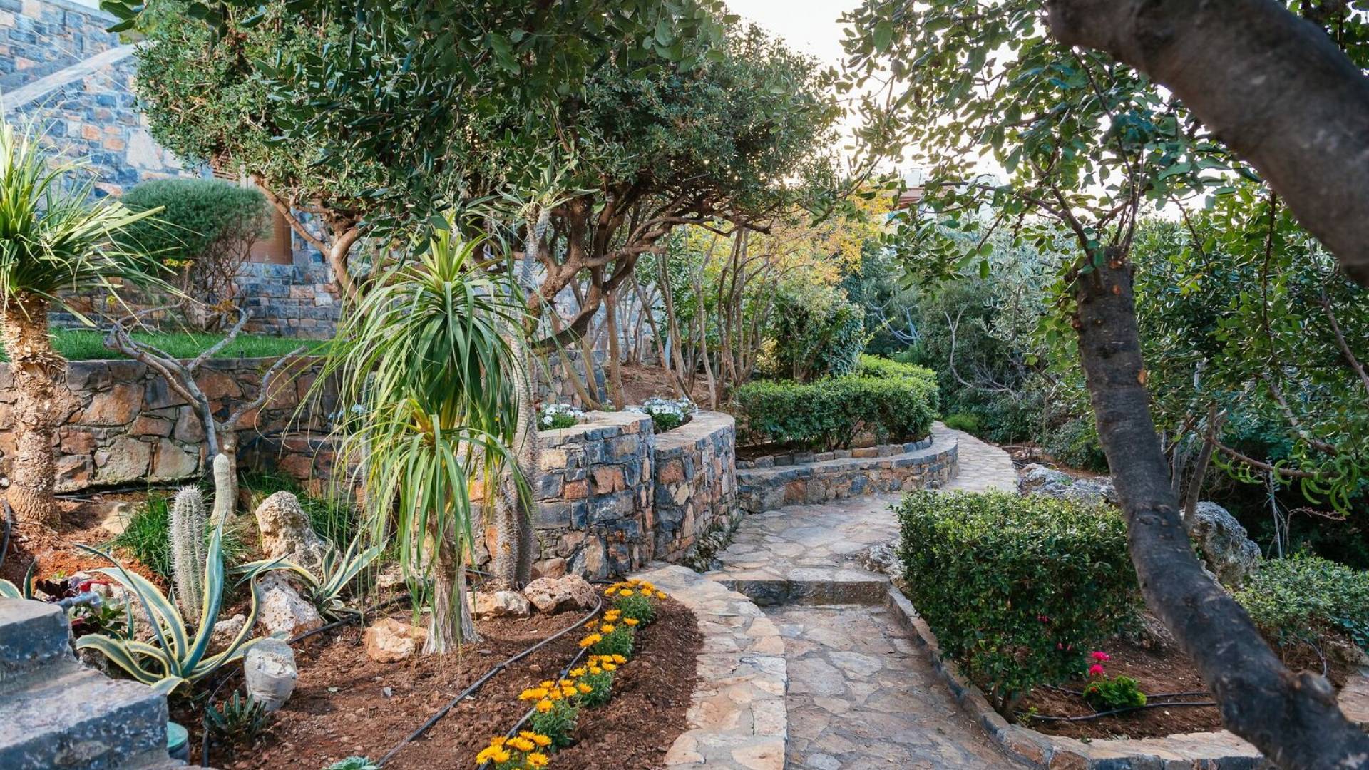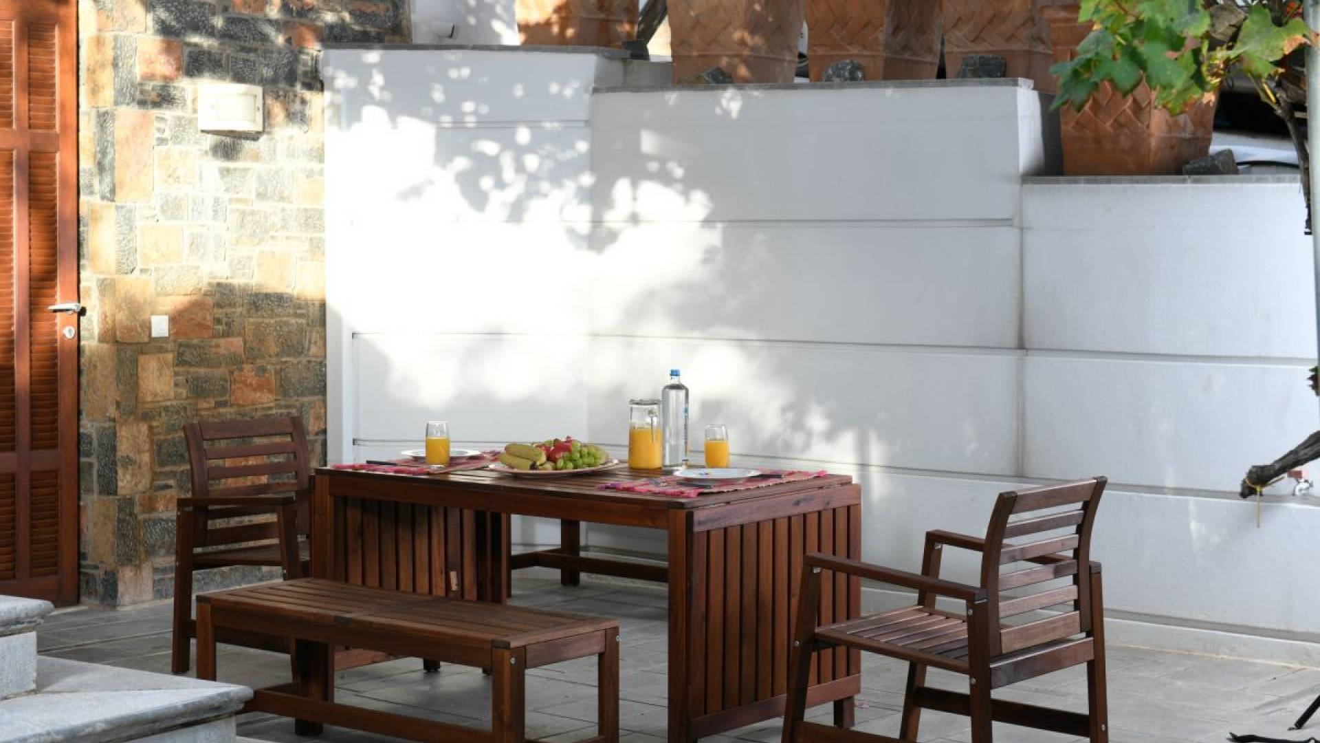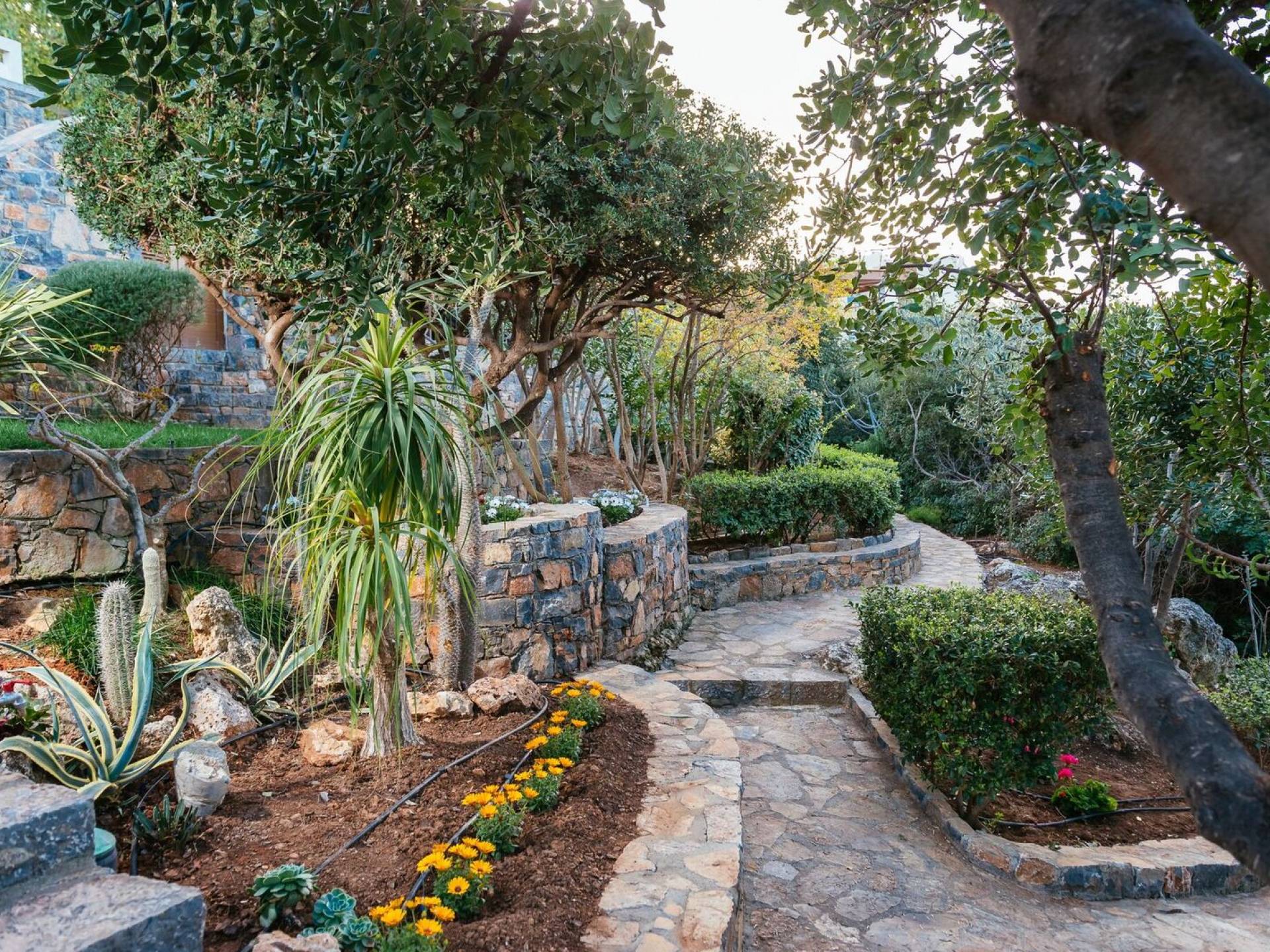 La villa dispose d'un studio/appartement indépendant d'une seule pièce, qui comprend une salle de bain avec douche, une cuisine entièrement équipée et un salon avec une véranda. Cet appartement peut accueillir jusqu'à 2 personnes. Devant la maison principale s'étend la piscine (avec vue directe sur la plage d'Almyros et la ville d'Agios Nikolaos) avec douche, salon extérieur et chaises longues. Le chemin de pierre de la villa part de la piscine et mène à la rivière et à la plage. Autour de la villa, il y a un magnifique jardin en harmonie avec l'environnement naturel avec de belles fleurs et arbres. De plus, il y a un espace disponible pour deux places de parking