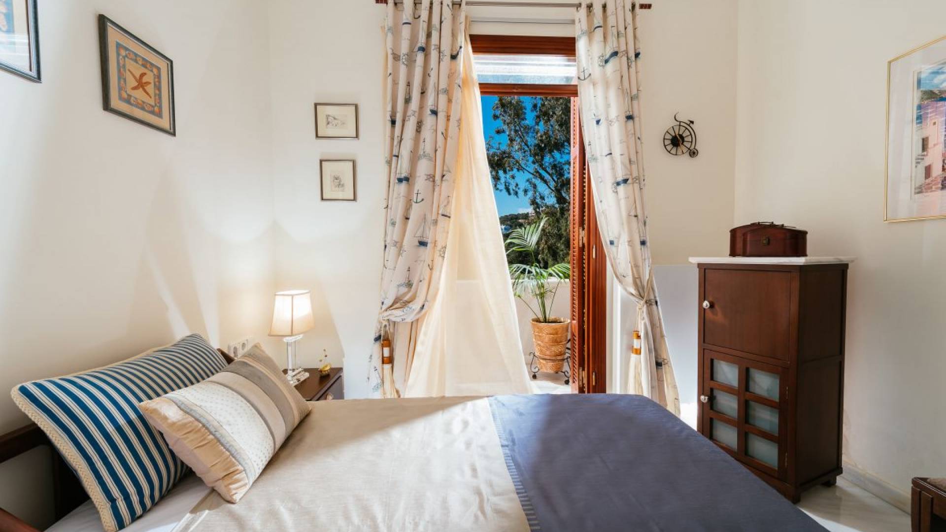 La villa "Agios Nikolaos" peut accueillir jusqu'à 7 personnes et se compose de la maison principale et d'un studio/appartement indépendant. La maison principale a deux étages. Au rez-de-chaussée, il y a une pièce à espace unique qui combine un salon, une salle à manger et une cuisine. Devant le salon, une véranda se prolonge avec une immense piscine privée qui a une vue immédiate sur la plage et la ville d'Agios Nikolaos. Le rez-de-chaussée dispose également d'une salle de bain complète avec baignoire et d'une chambre double avec balcon et vue sur la montagne.