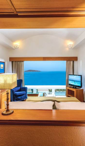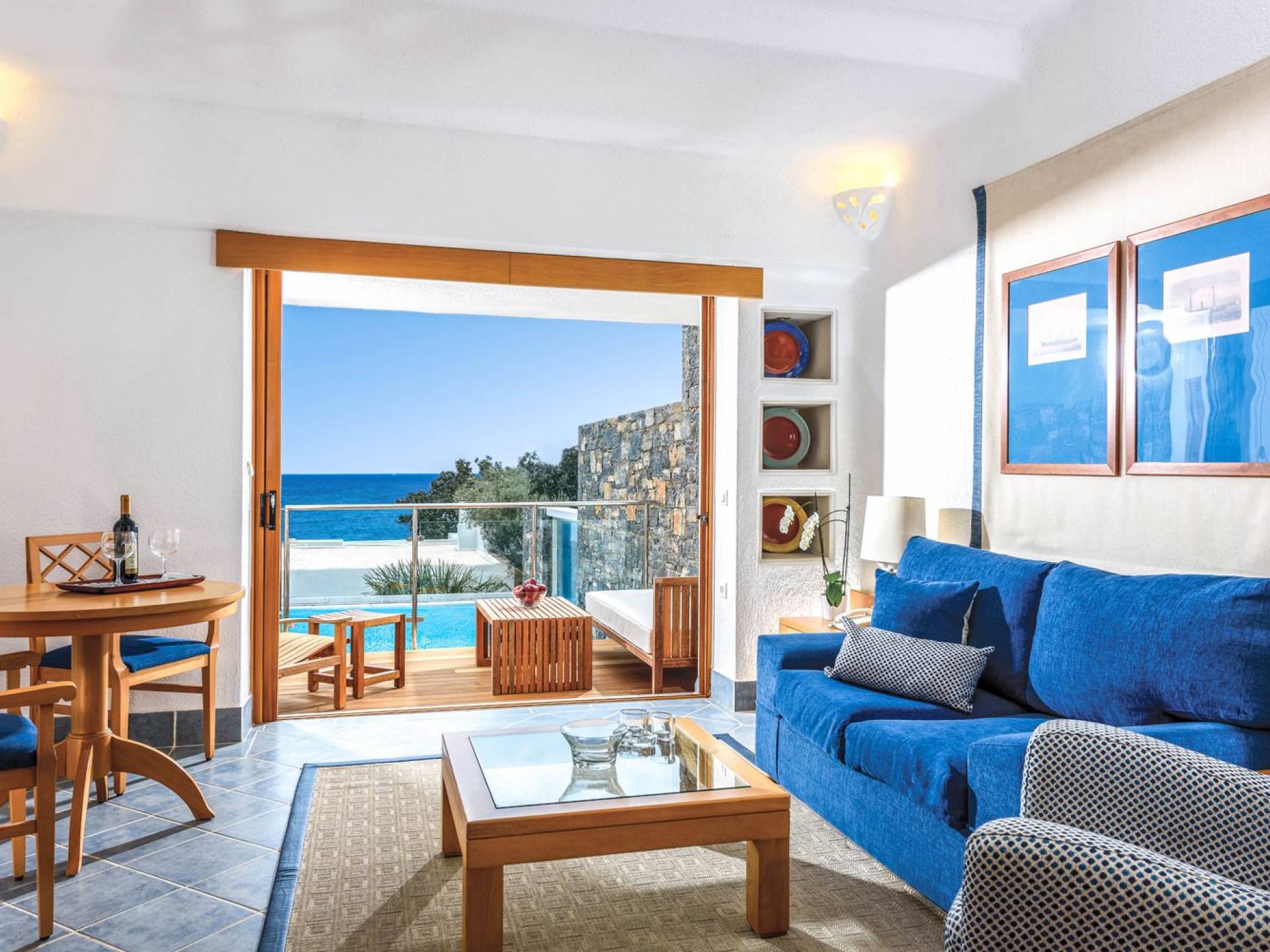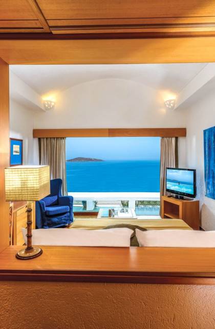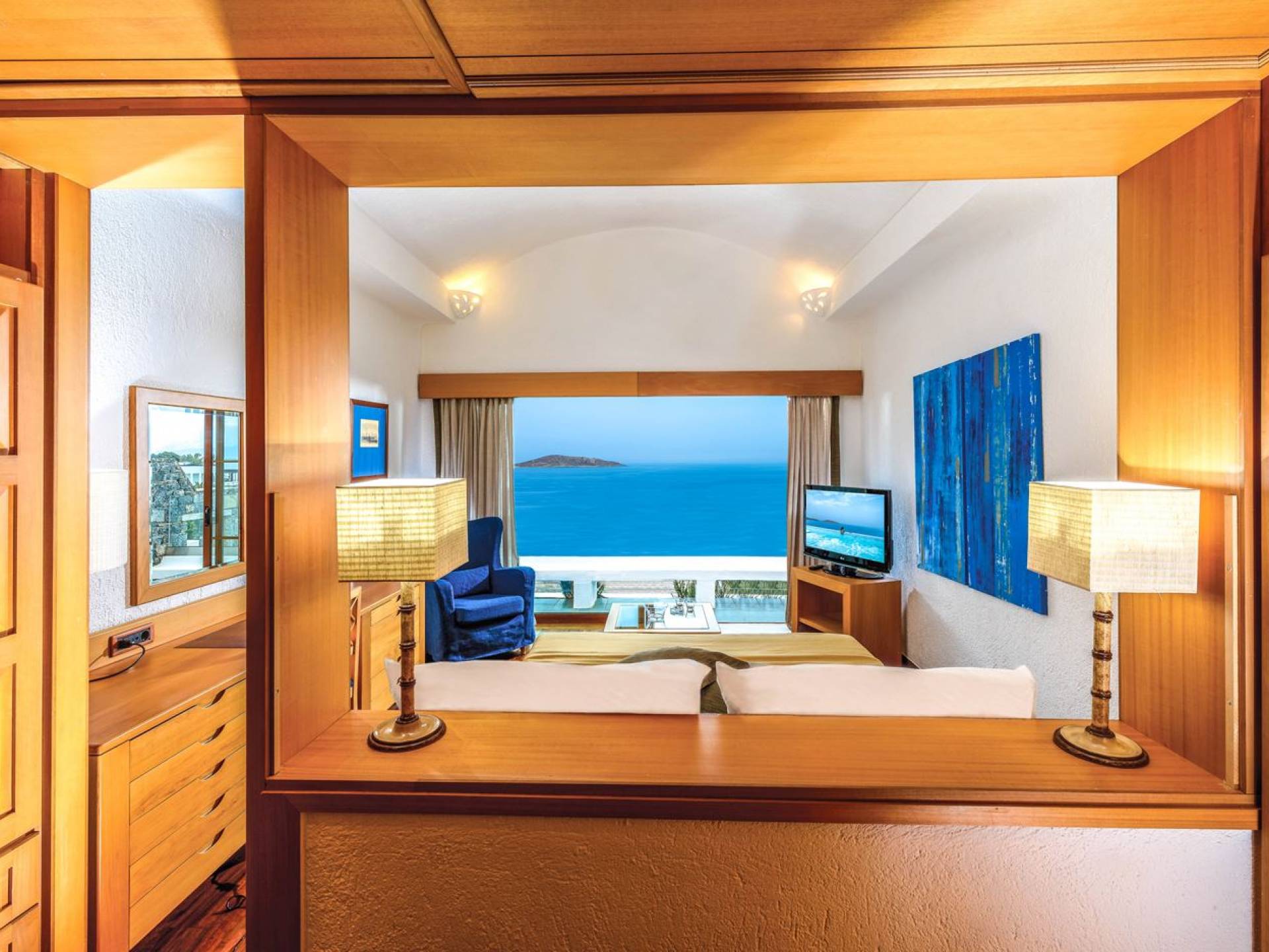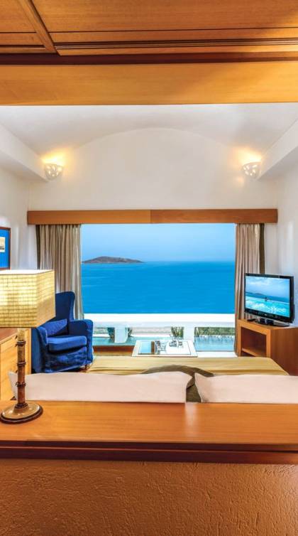 L'hôtel Elounda Peninsula All-Suite est l'hôtel le plus exclusif de Grèce. Bénéficiant d'une position unique sur une étendue de terre péninsulaire, il surplombe la baie de Mirabello et l'étendue de la mer Égée. La vue est bleue à perte de vue. L'Elounda Peninsula All-Suite Hotel est accessible par un chemin privé qui mène au coin salon au dernier étage. Ses vastes vérandas vous donnent l'impression d'être sur le pont d'un vaisseau amiral.