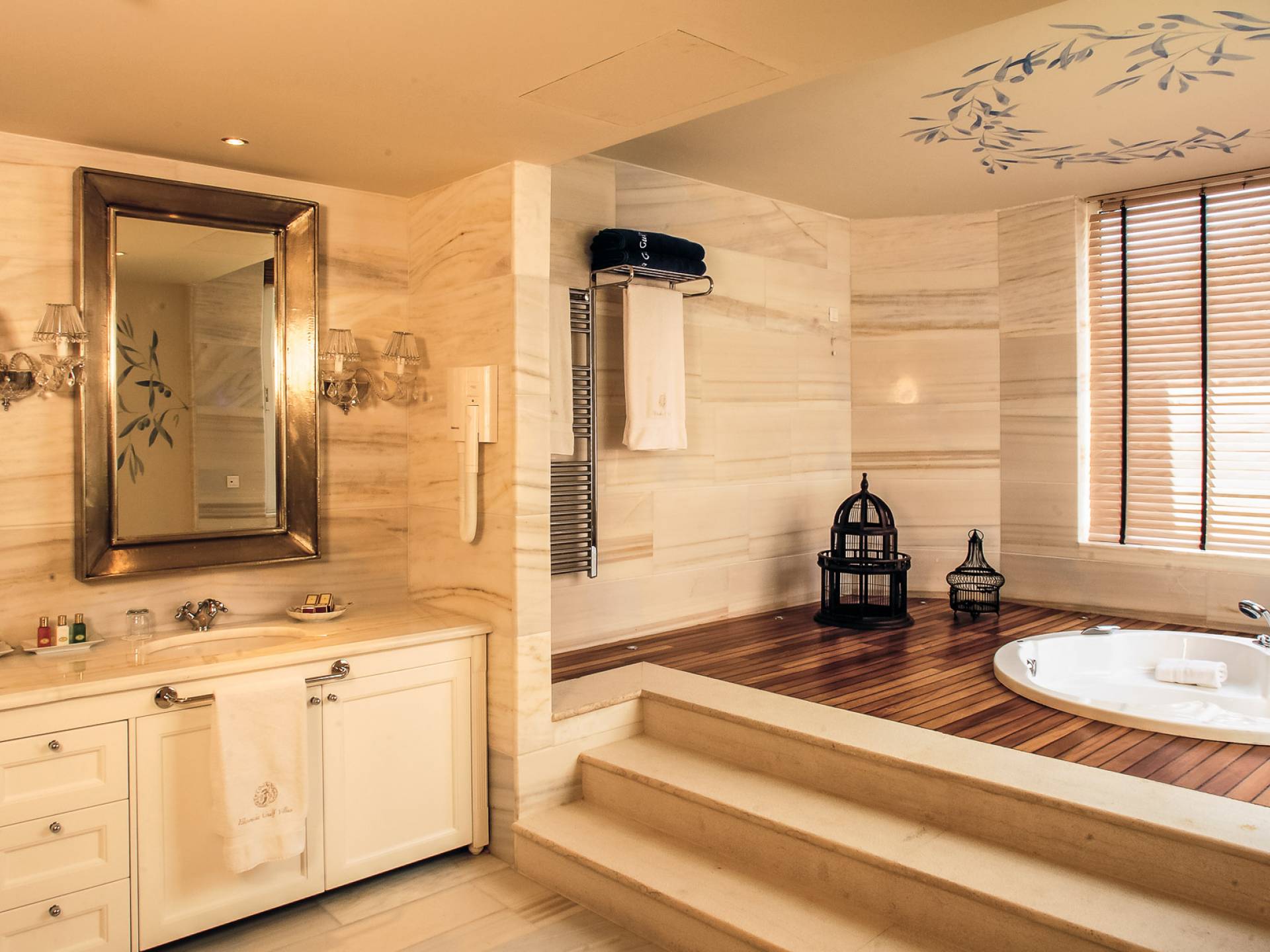 Les Imperial Spa Pool Villas à une chambre avec piscines privées chauffées sont le choix idéal pour une escapade romantique de luxe sur l'île enchanteresse de Crète. Les grandes villas offrent une combinaison inégalée d'élégance et de luxe. La chambre principale gracieusement décorée comprend une salle de bains privative en marbre poli et est reliée au salon élégamment conçu menant à la cuisine américaine entièrement équipée. Toutes les Imperial Spa Villas disposent d'une piscine à débordement chauffée en forme de croissant et d'une terrasse ensoleillée avec une vue imprenable sur la mer.