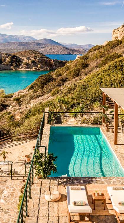 Réservez votre villa privée à Istron Bay et découvrez l’un des plus beaux paysages côtiers de Crète.