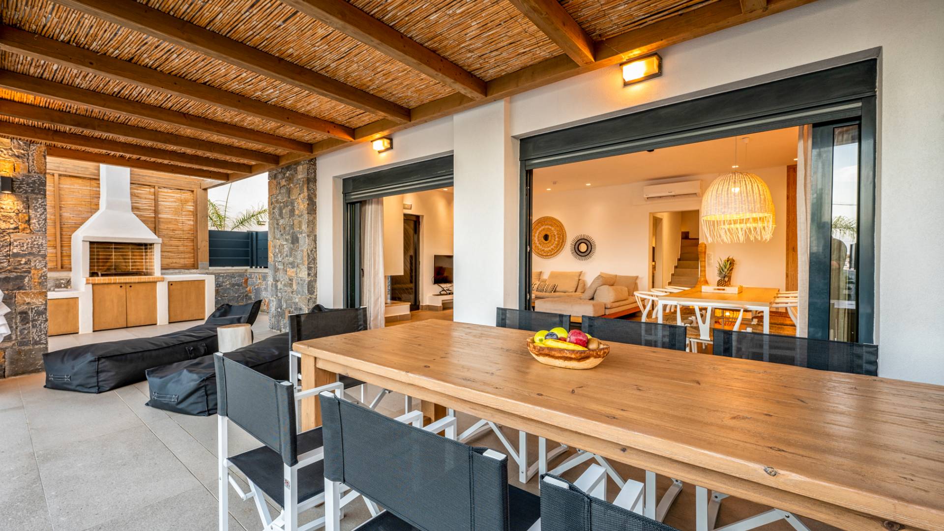 - Véranda ombragée avec restauration en plein air et barbe à barrage intégré
