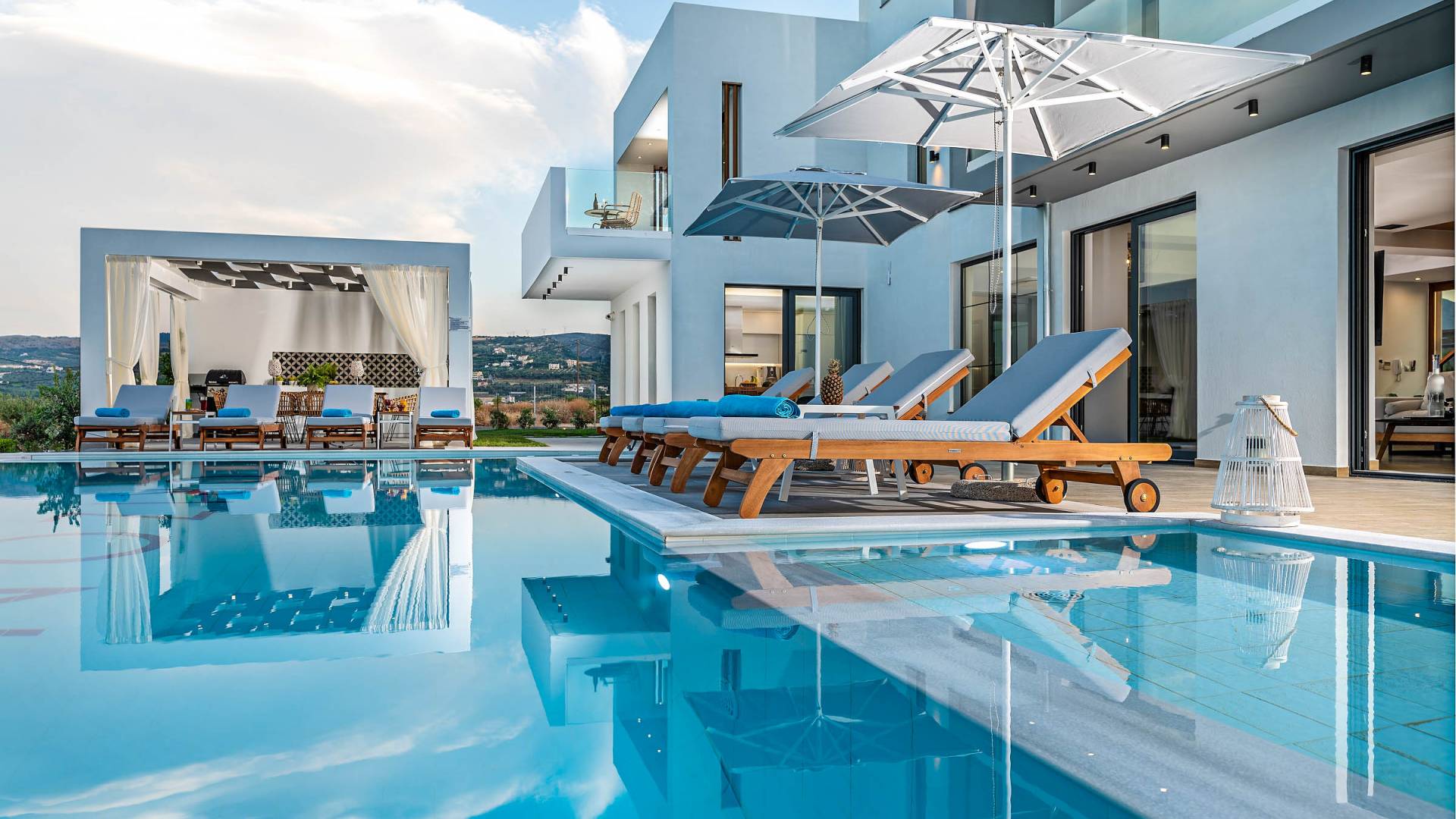 Villa de luxe moderne avec piscine privée, jacuzzi extérieur, salle de sport & piscine intérieure – à seulement 10 min de la ville de Réthymnon et 2 km de la plage de sable la plus proche.