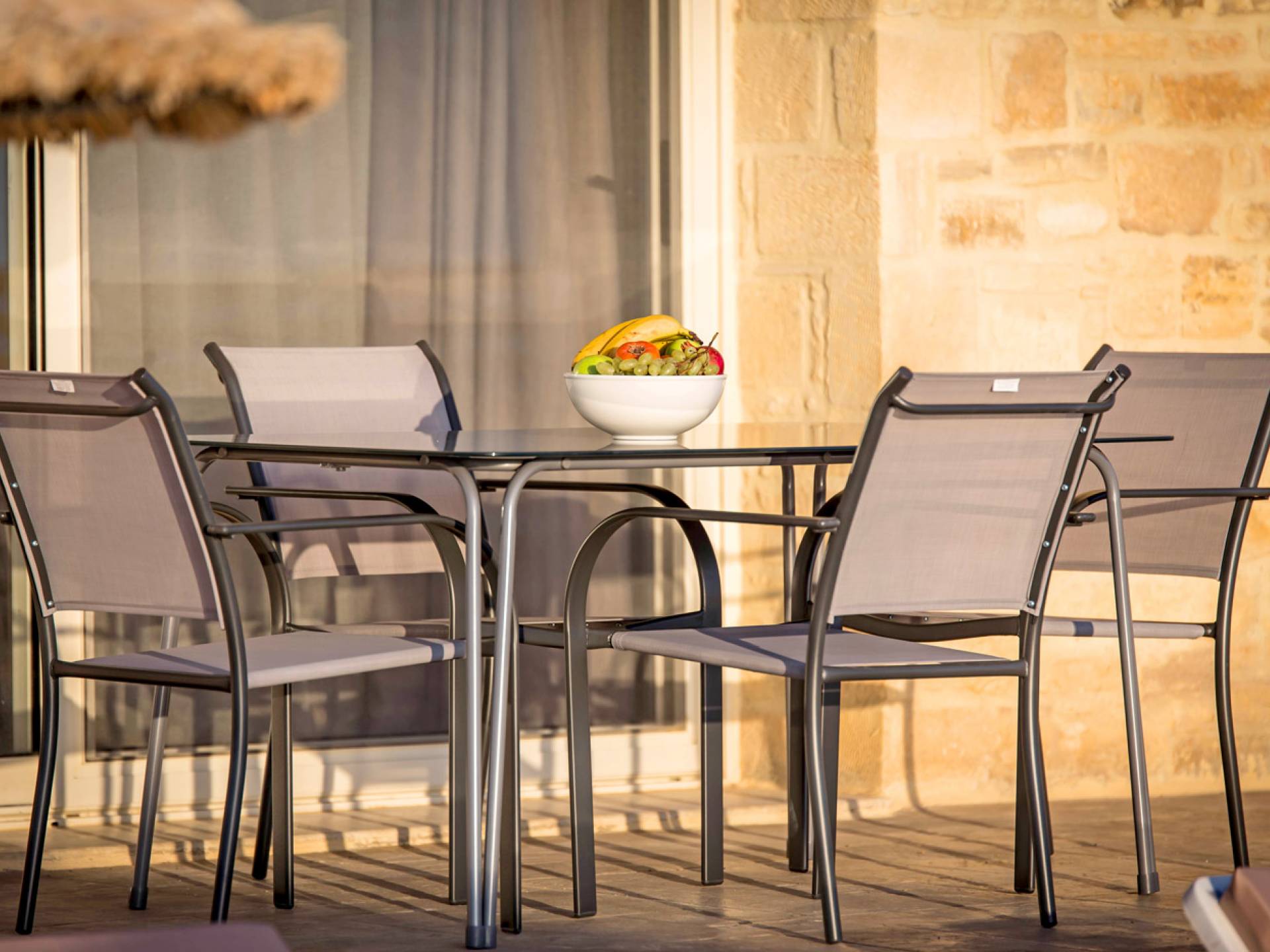 L'extérieur d'Anatoli Villa Rethymno est entouré de cours en pierre, d'espaces verts et d'un grand parking tandis que la maison offre des systèmes d'alarme et des caméras de surveillance extérieures. Plongez dans une grande piscine privée et laissez vos enfants jouer dans la pataugeoire. Vous trouverez également des transats, une pergola, une salle à manger extérieure et un barbecue portable. Le bel espace de vie vous offre un salon, un coin repas, une cheminée, une télévision, une micro-chaîne stéréo, un accès Internet WI-FI et un téléphone. Un cuiseur vapeur, un aspirateur et une poussette sont également disponibles.