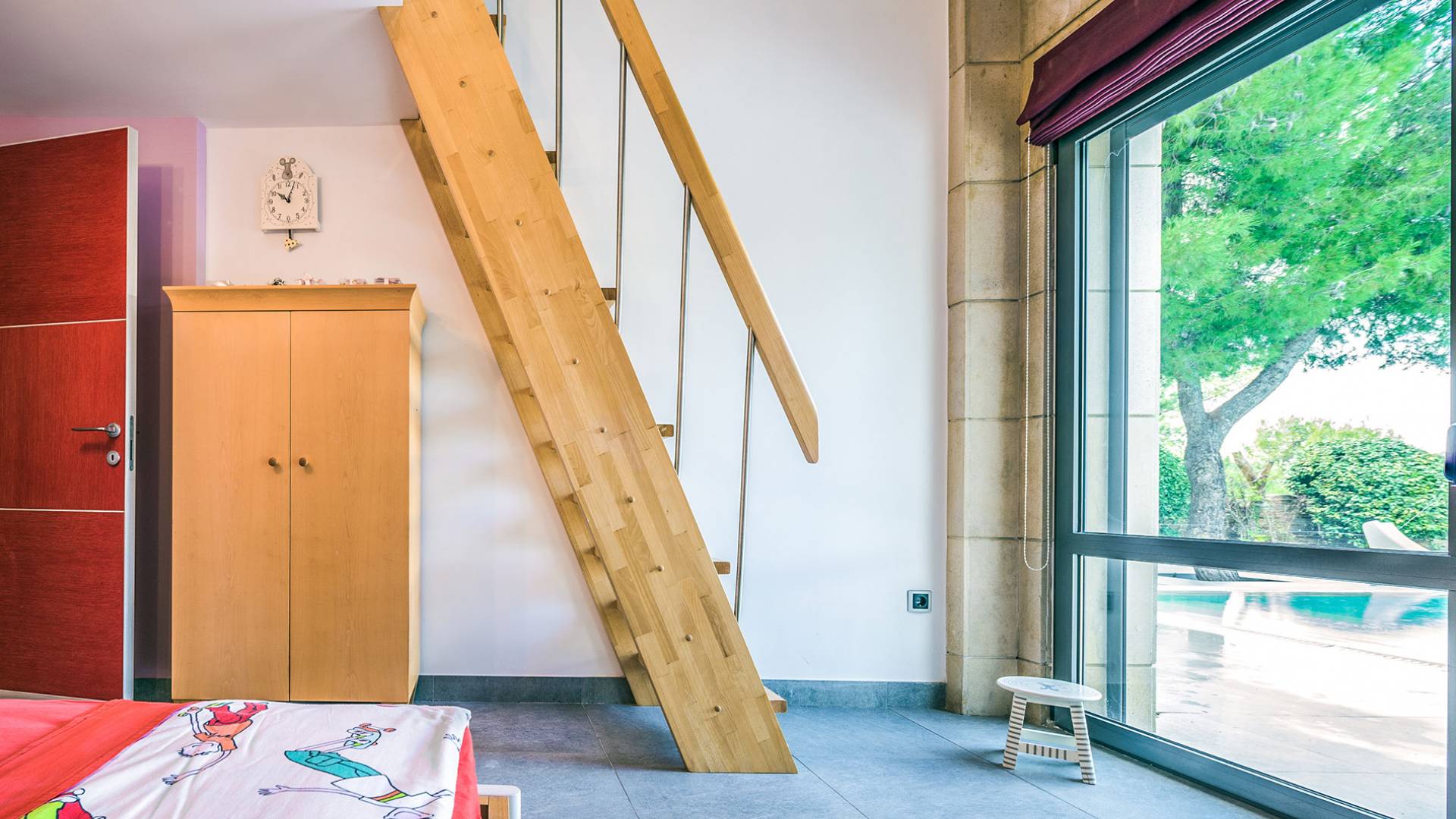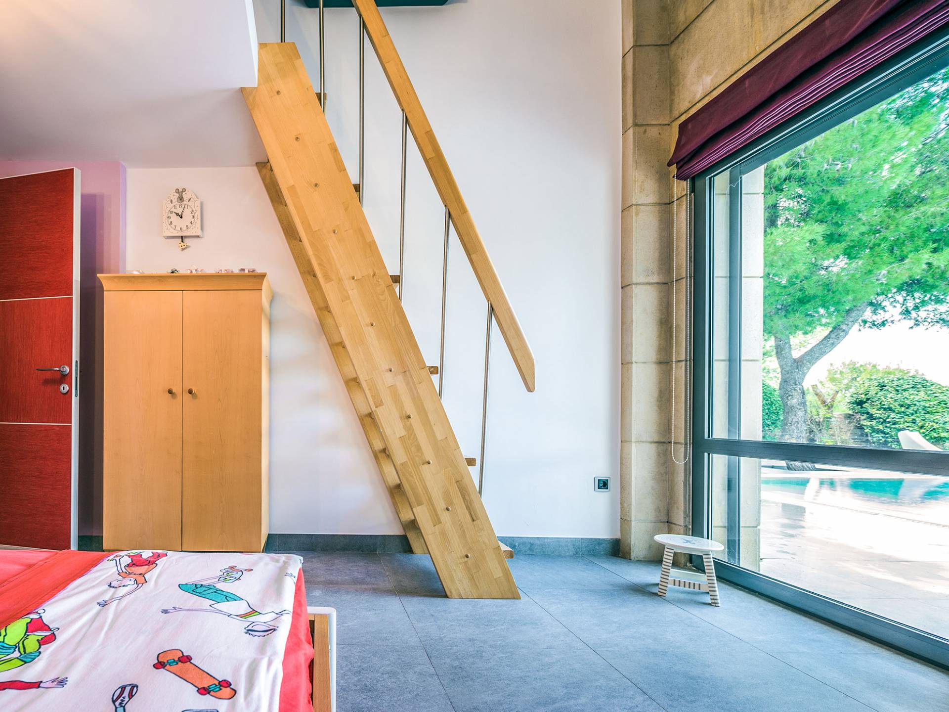 Un escalier magnifiquement conçu ou un ascenseur décoré avec goût vous emmène du luxueux salon/cuisine à d'autres espaces uniques, qui s'étendent sur le rez-de-chaussée, tandis qu'entre les deux, vous pouvez même trouver des toilettes avec une baignoire qui peuvent également faciliter la deuxième chambre, plus un espace bureau confortable. Avec deux chambres tout à fait merveilleuses - une chambre simple avec vue sur la piscine et un loft et une chambre double avec vue sur la piscine avec un lit superposé et un loft - plus la Junior Suite tout aussi raffinée avec salle de bain attenante, elles sont parfaitement dimensionnées pour une famille. De plus, vous découvrirez un autre espace de vie magnifique, avec une grande bibliothèque et des coins salons confortables, qui vous mèneront à la table à manger en plein air au bord de la piscine, pour vous prélasser dans la brise chaude de la Méditerranée. Avec une belle vue sur le jardin, un accès facile au patio et une salle de bain colorée avec baignoire, vous êtes assuré de vous faire plaisir. Détendez-vous et admirez le rêve du styliste ou ne manquez pas l'occasion de vous prélasser dans la piscine, juste à vos pieds !