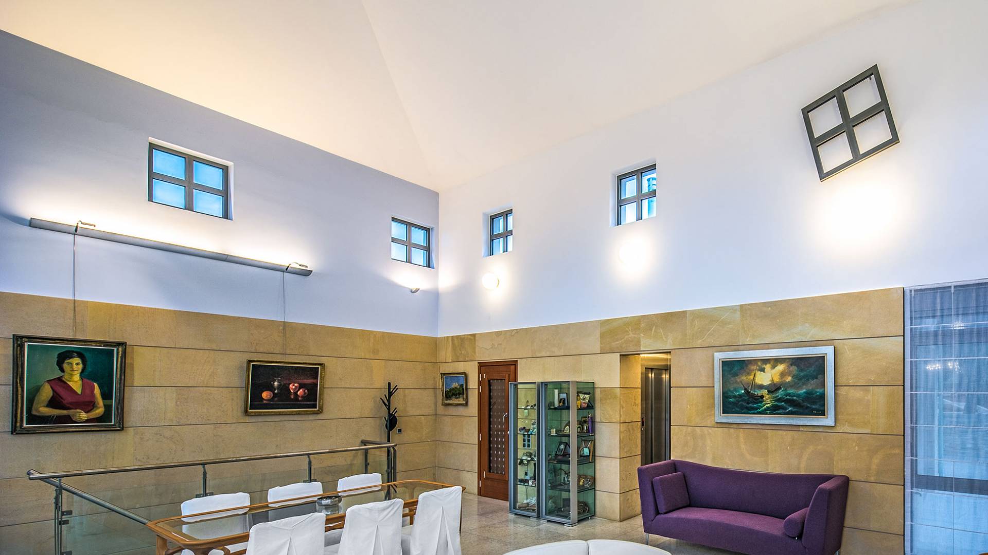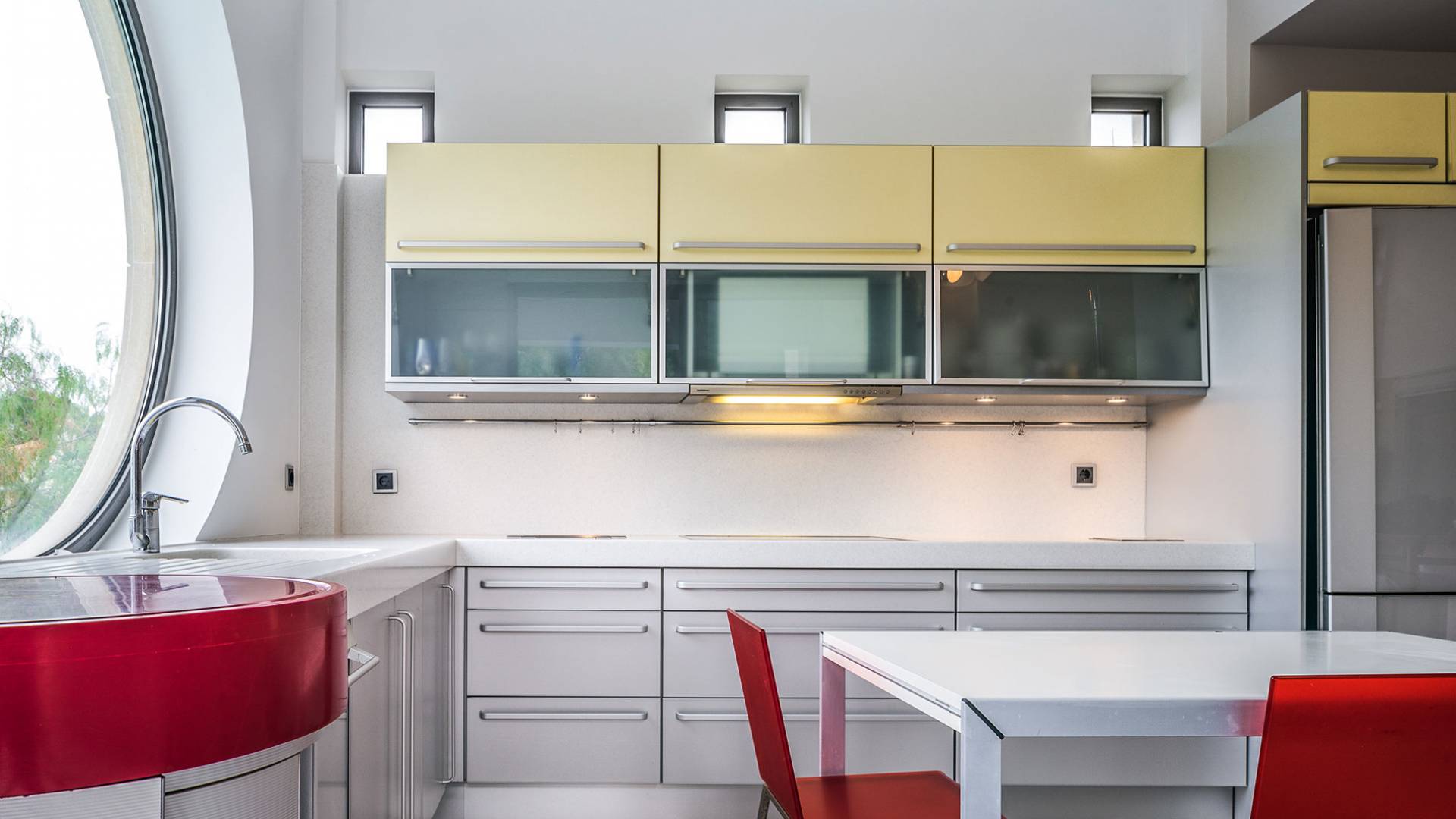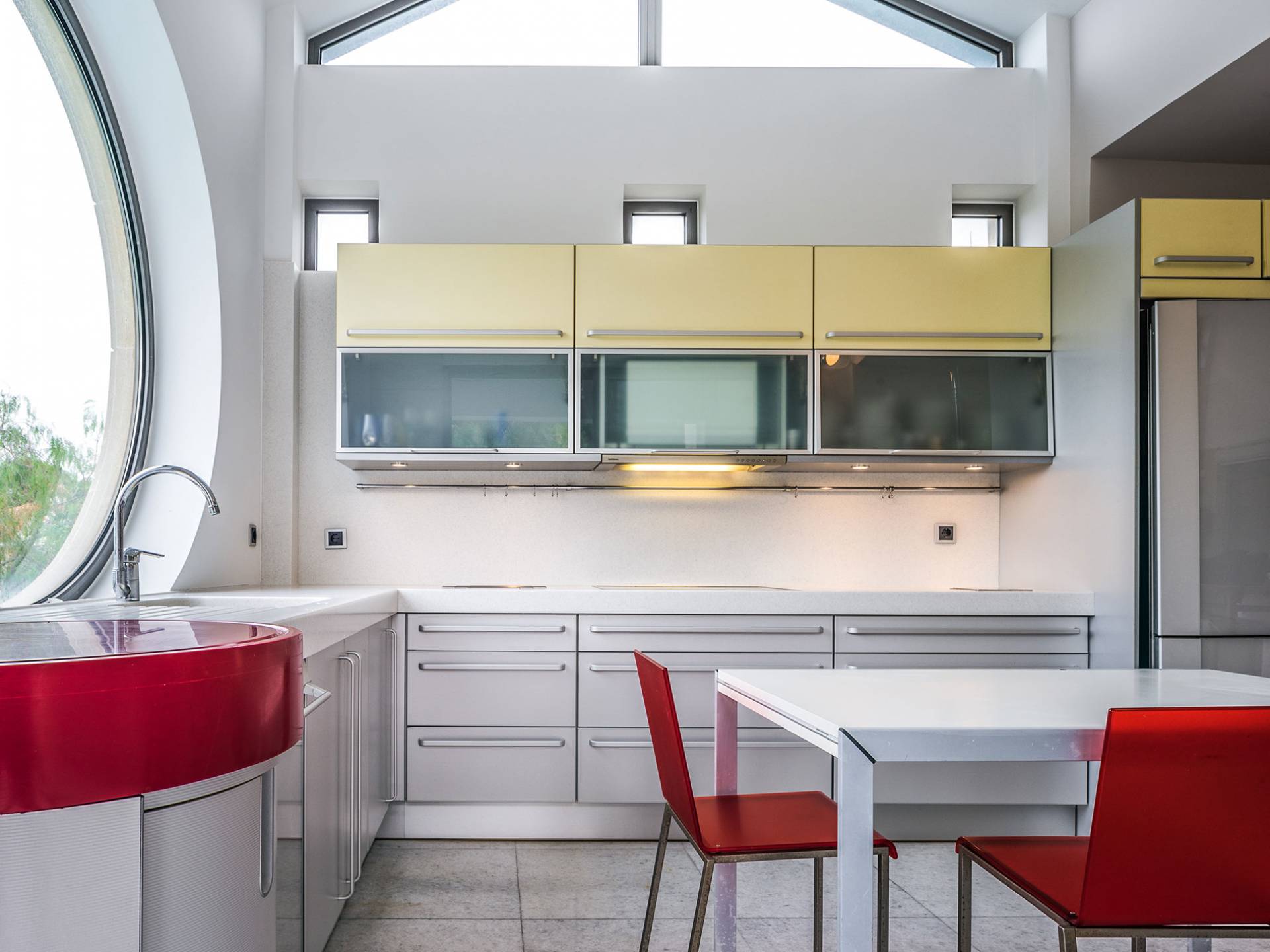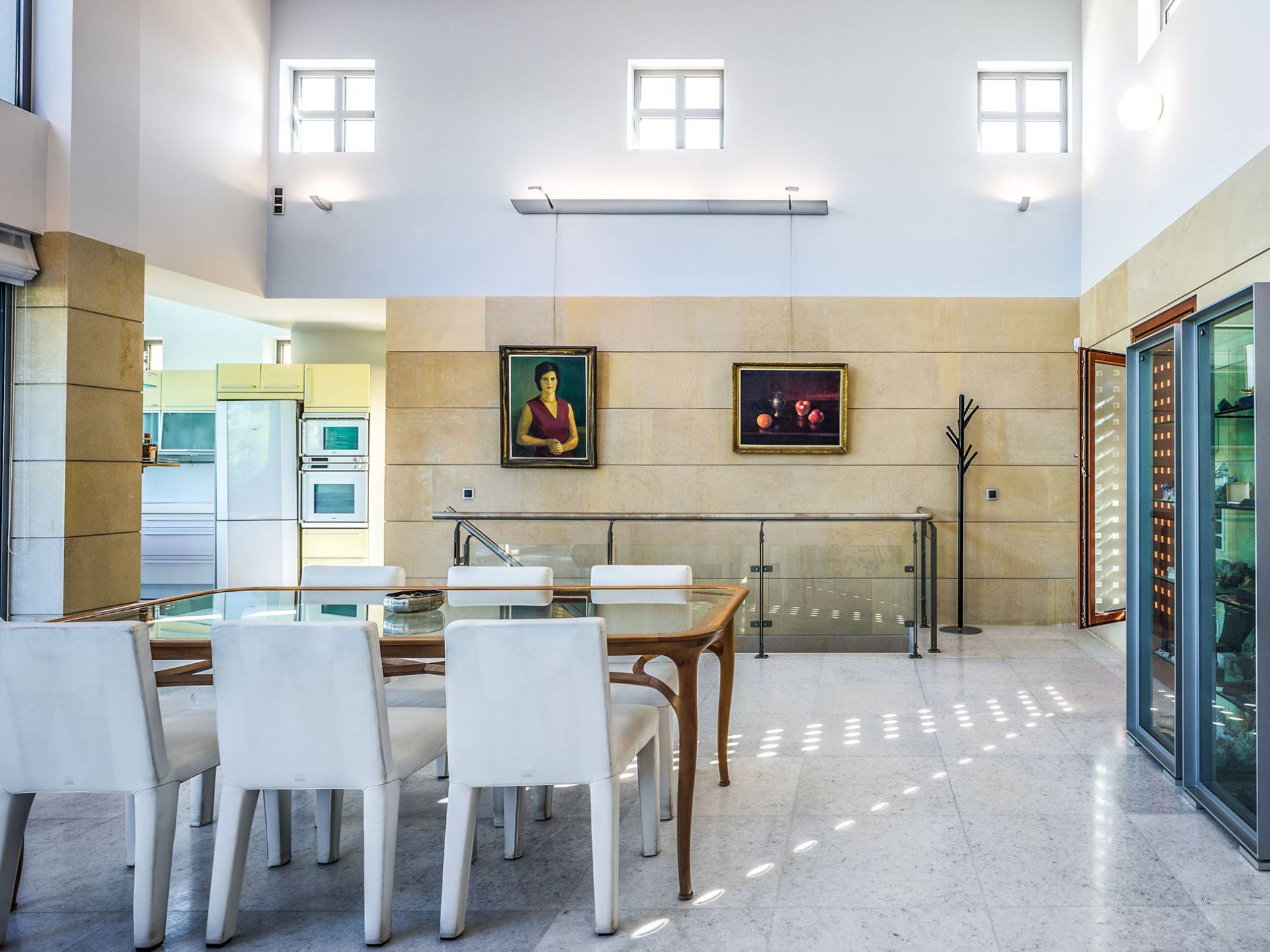 L'entrée principale de Minimal Blue Villa Athens au premier étage vous emmène dans un magnifique salon, qui offre une superbe vue sur la piscine et la mer avec une cheminée, deux canapés et un fauteuil dispersés autour d'une table à manger en verre. Découvrez la Master Suite avec une vue spectaculaire sur la pinède et une salle de bain en marbre blanc avec douche. Il y a aussi une fabuleuse cuisine entièrement équipée avec des appareils Gaggenau intégrés (réfrigérateur, four, plaques vitrocéramiques, lave-vaisselle) offrant la plus belle vue sur la piscine, pour se livrer à une somptueuse gastronomie grecque - un espace intime à côté de la terrasse du premier étage surplombant la mer. Au coucher du soleil, dégustez des plats appétissants, accompagnés d'une sélection d'excellents vins !