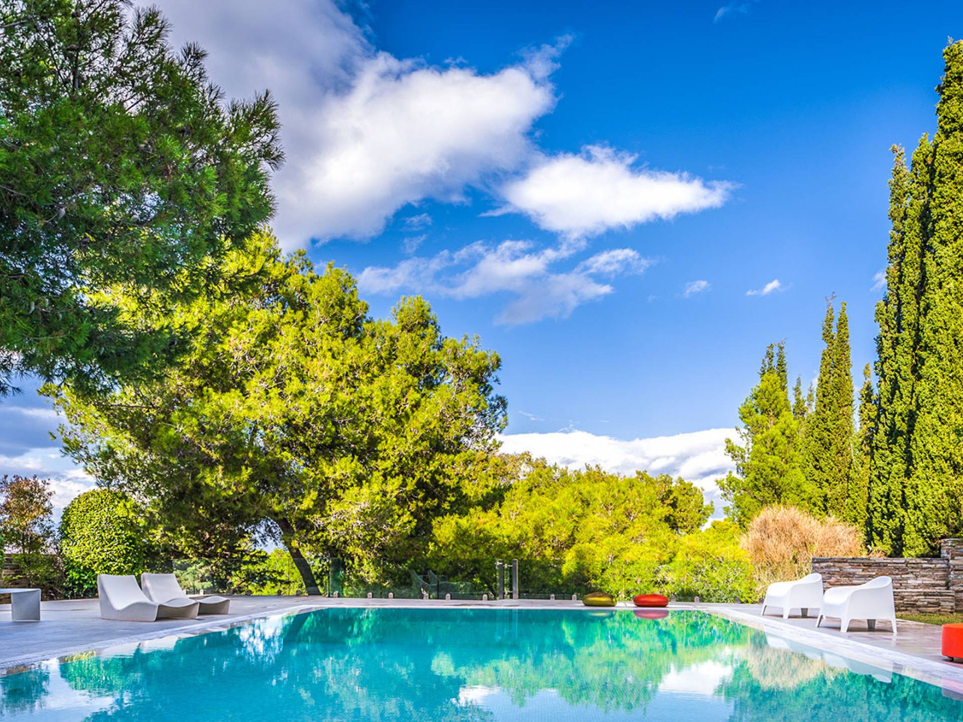 Supervisant les aspects architecturaux du développement, cet objet architectural caché avec beaucoup de soin et d'attention aux détails incarne le raffinement et le style. Avec seulement cinq chambres idylliques (9 personnes) et deux espaces de vie spacieux, vous et vos compagnons vous sentirez vraiment gâtés par les caractéristiques et les installations de luxe, alors que vous commencez à vous détendre loin de la foule et de l'agitation des grands hôtels. Soit vous regardez le soleil se coucher sur la forêt de pins adjacente, soit vous vous levez tôt pour capter les premiers rayons de lumière qui se répandent sur la côte attique, profitez de paysages à couper le souffle et d'un sentiment de pure sérénité. Une piscine à débordement de 100 m² invite les clients à se rafraîchir dans le bonheur, tandis que des chaises longues élégantes au bord de la piscine vous invitent à vous détendre sous le soleil méditerranéen.