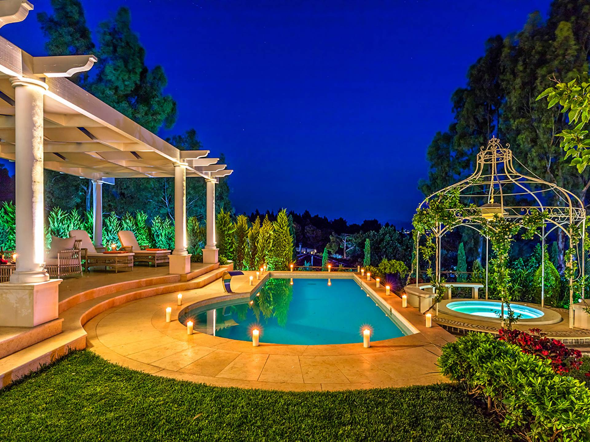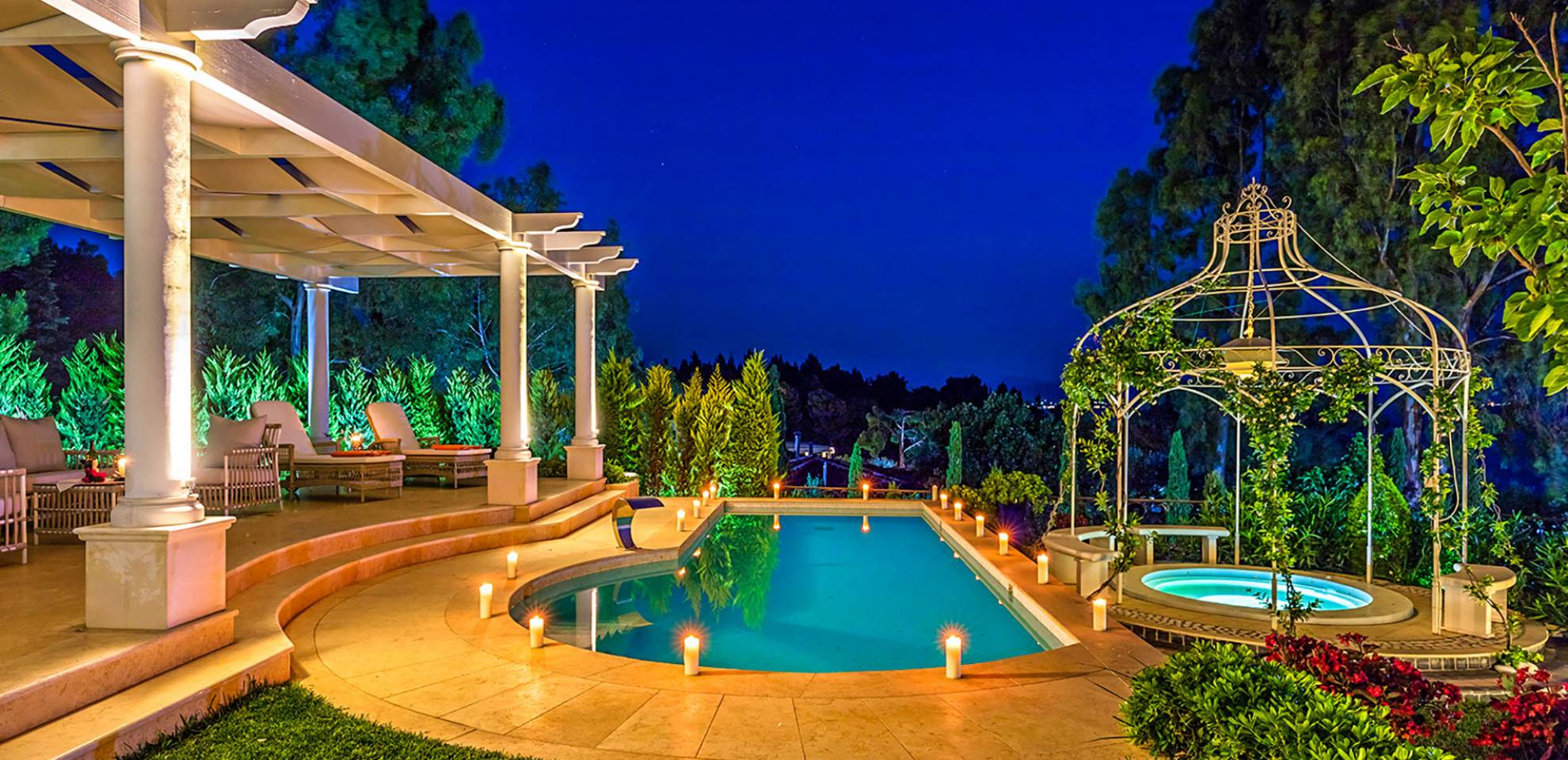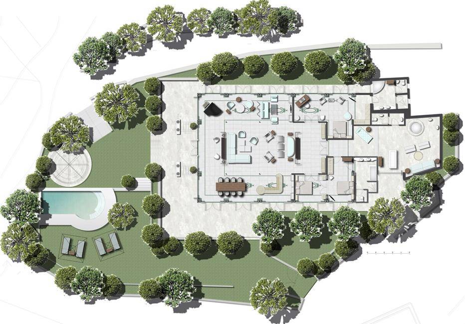 Cette Villa de 450 m² et ses 700 m² de verdure, de citronniers, de pins, d'orangers, une piscine privée, un jacuzzi extérieur, le tout surélevé du sol, offrent des sensations de vacances au paradis.