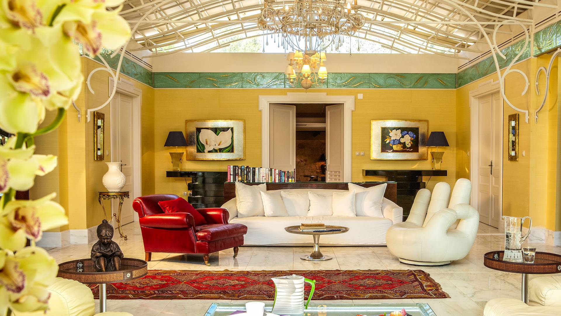 Un magnifique patio dans le jardin de la Villa of Blue Riviera, offre des heures de détente, à tout moment de la journée, avec une vue imprenable sur les eaux bleues de la mer Méditerranée. Trois chambres, deux salles de bains en marbre, deux WC supplémentaires, un immense salon avec son propre espace bar, un coin cuisine, la climatisation, une télévision par satellite à écran plasma, un lecteur DVD, un système de musique Wi-Fi Bose, un mini-bar bien approvisionné, vous offriront la goût de l'hospitalité à son plus haut niveau. Le piano dans le salon offre une alternative pour un dîner privé sur demande. La Villa propose un espace bien-être privé, juste à côté des chambres. Une ambiance relaxante et accueillante avec un lit de massage, une baignoire en marbre, un canapé élégant et des œuvres d'art décoratives satisfera le besoin de haute élégance des vacances de tout invité. Le toit coulissant du salon permet de rêver sous le ciel bleu grec. Tout cela viendra compléter le luxe et la qualité qu'offre la Villa de la Riviera Bleue.