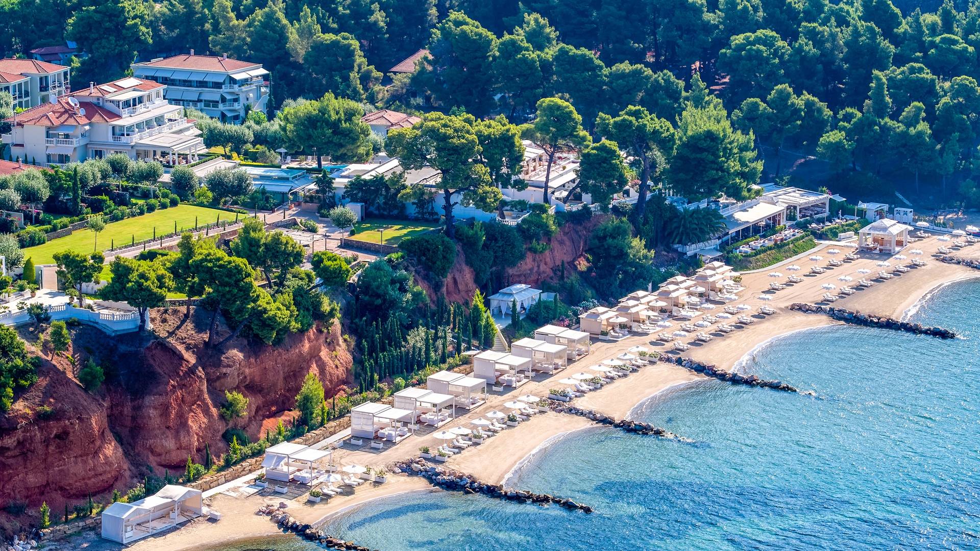 Le Danai Beach Resort & Villas, un splendide hôtel grec et membre des « Principaux hôtels du monde », réside dans la célèbre destination de Sithonia, Halkidiki, une péninsule grecque située au bord de la mer Égée turquoise. Ce refuge luxueux est situé dans une nature à couper le souffle : des jardins méditerranéens luxuriants et une vaste plage de sable avec le son apaisant des vagues créent l'environnement idéal pour de véritables loisirs.