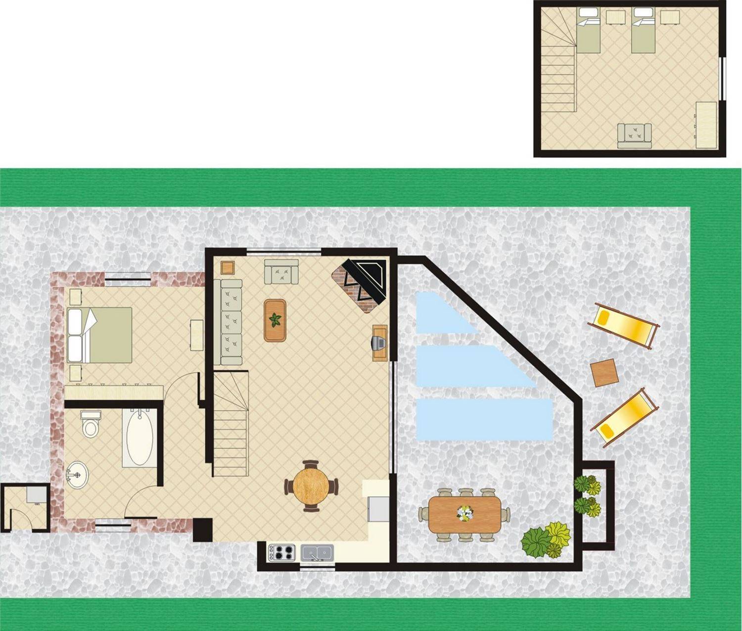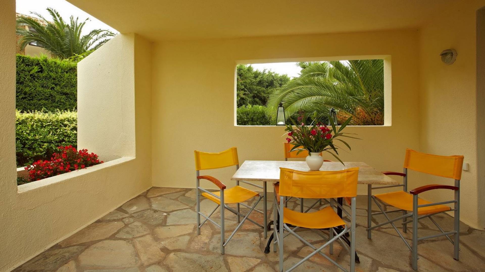 Erato Villa est un bâtiment confortable de deux étages situé dans son propre jardin et partageant une piscine commune avec les autres villas du complexe, la villa ayant un patio privé. La villa abrite une chambre double à l'étage inférieur et deux lits simples supplémentaires à l'étage supérieur. La villa contient également un espace de vie modéré et une cuisine connectée. Les installations d'hygiène comprennent une seule salle de bain contenant des toilettes et une baignoire.