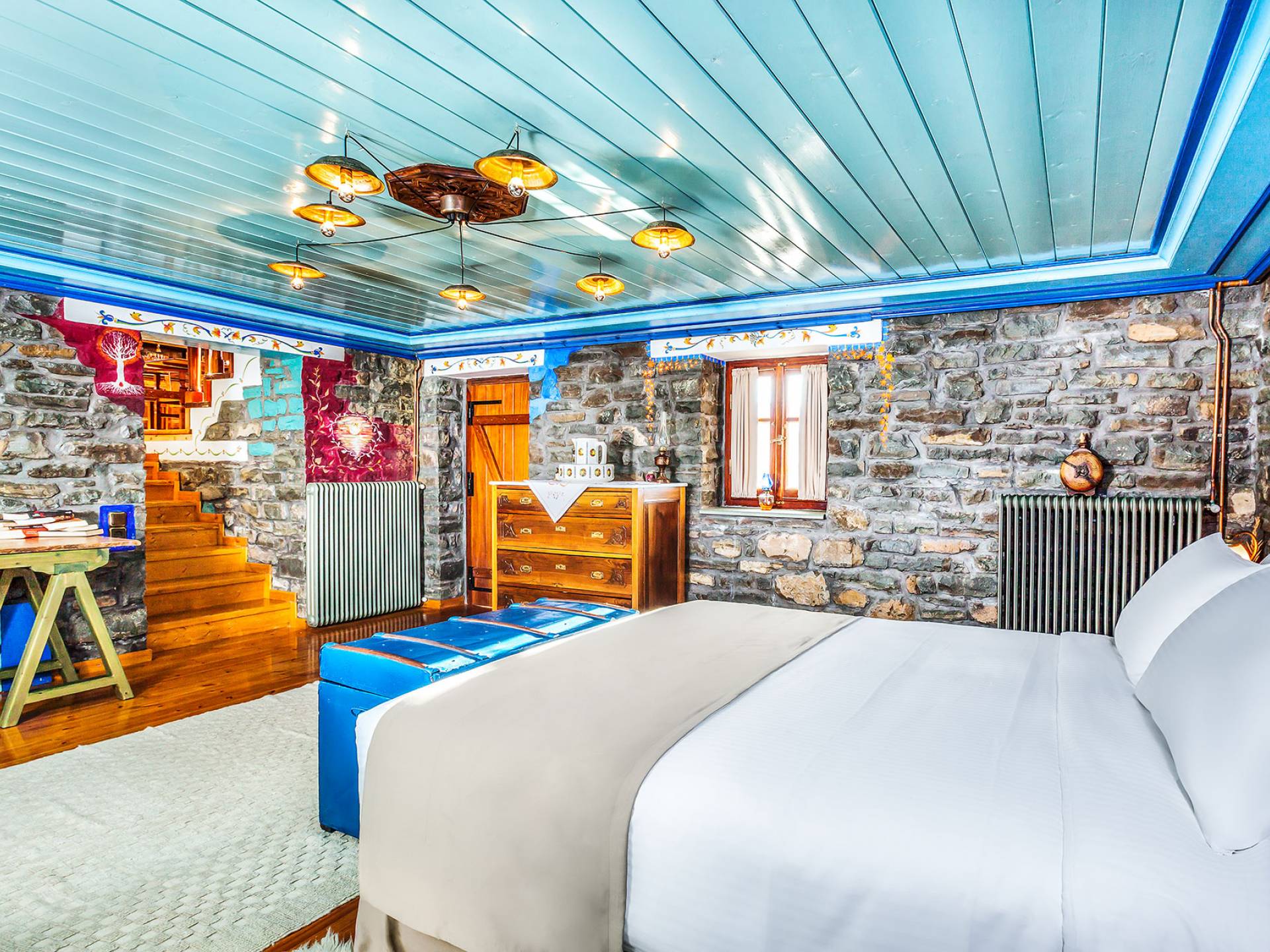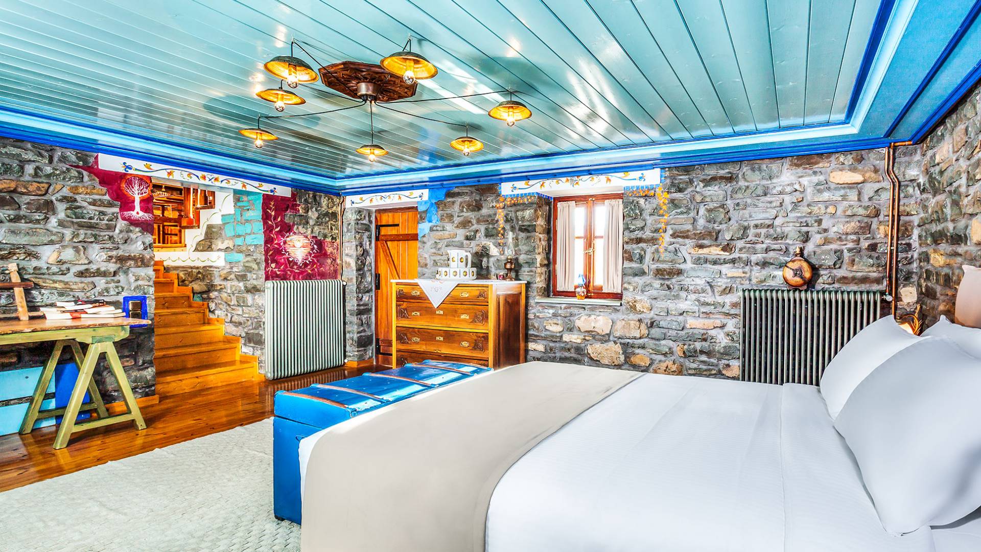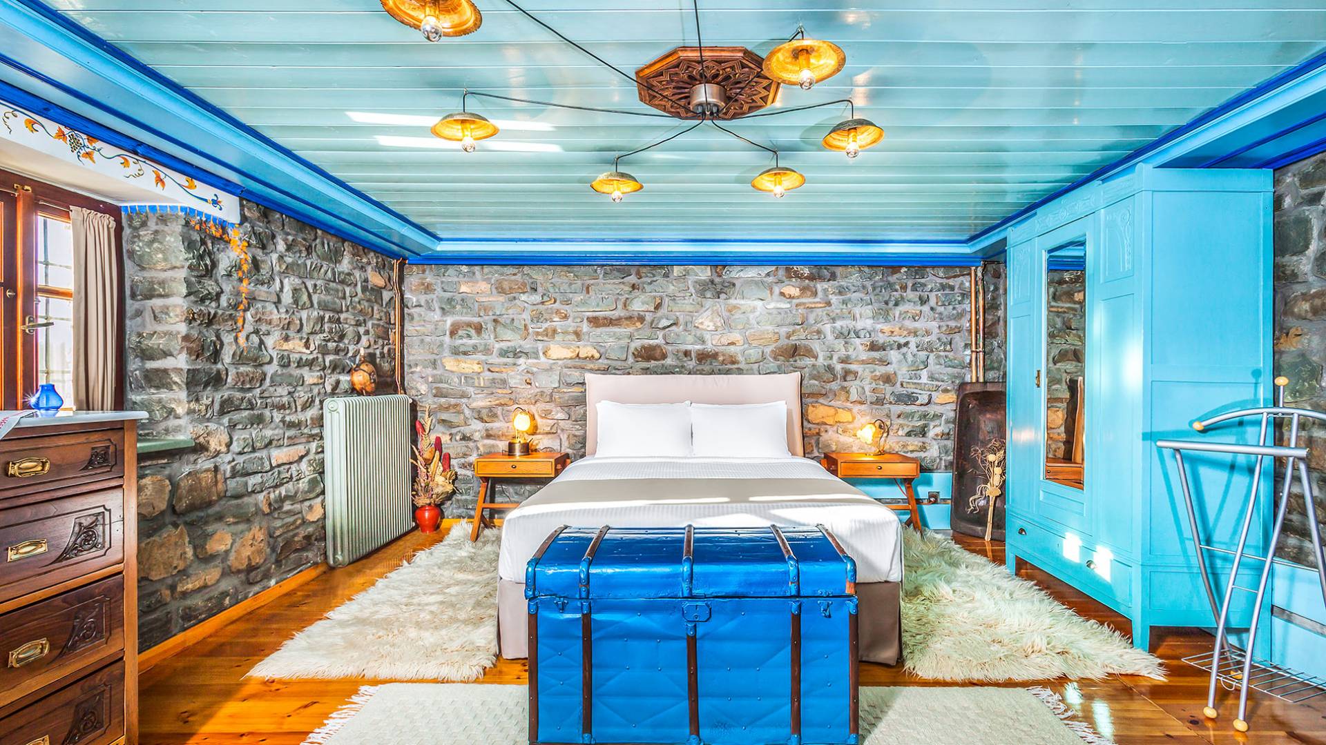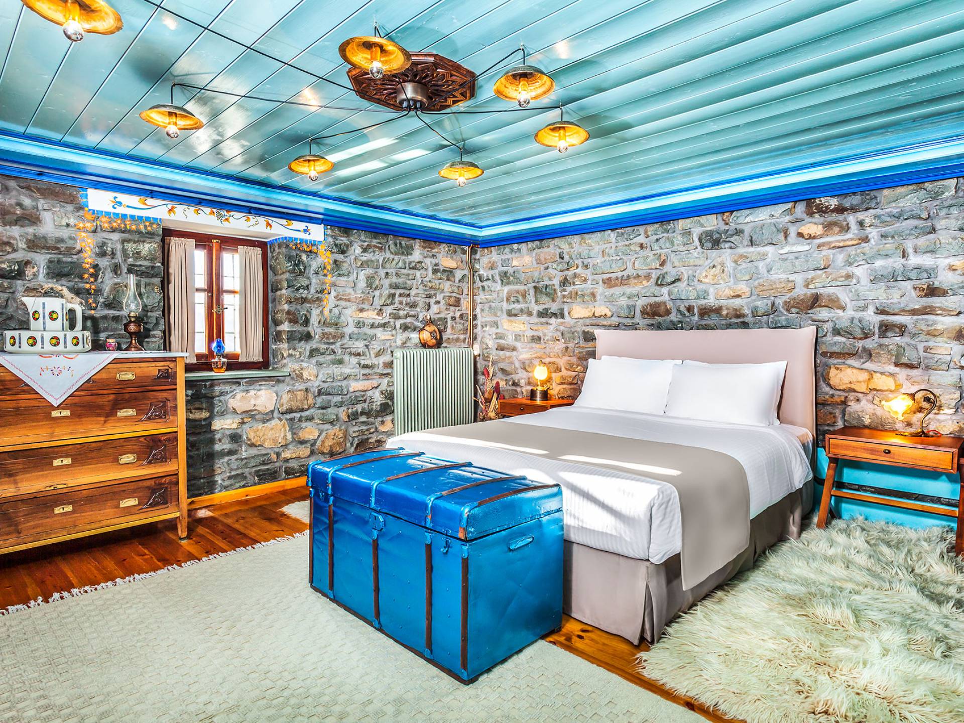 Au plus haut niveau de la maison, avec une vue d'une beauté incomparable dans le paysage sauvage et grandiose de Zagori, vous trouverez un coin chaleureux et familial composé d'une chambre avec lit double, une chambre avec deux lits simples confortables, idéal pour les enfants et une magnifique salle de bain luxueuse. De manière caractéristique, les couleurs qui prévalent dans les deux chambres, les manoirs et sont magnifiques. Le manoir bleu cobalt dans la chambre du couple et le carrelage en céramique chaleureux et relaxant du catholique pour l'enfant avec les lits jumeaux. Lumineux, chaleureux, revêtu de bois, parquet en chêne, éclairage raffiné et détails décoratifs folkloriques, tapis et parquets traditionnels, ainsi que de riches rideaux sur leurs grandes fenêtres, les chambres Heaven's View vous offriront la chaleur ultime. Une salle de bain confortable de style classique, avec une porcelaine lustrée et des accessoires impressionnants, entoure idéalement les deux chambres à l'étage.