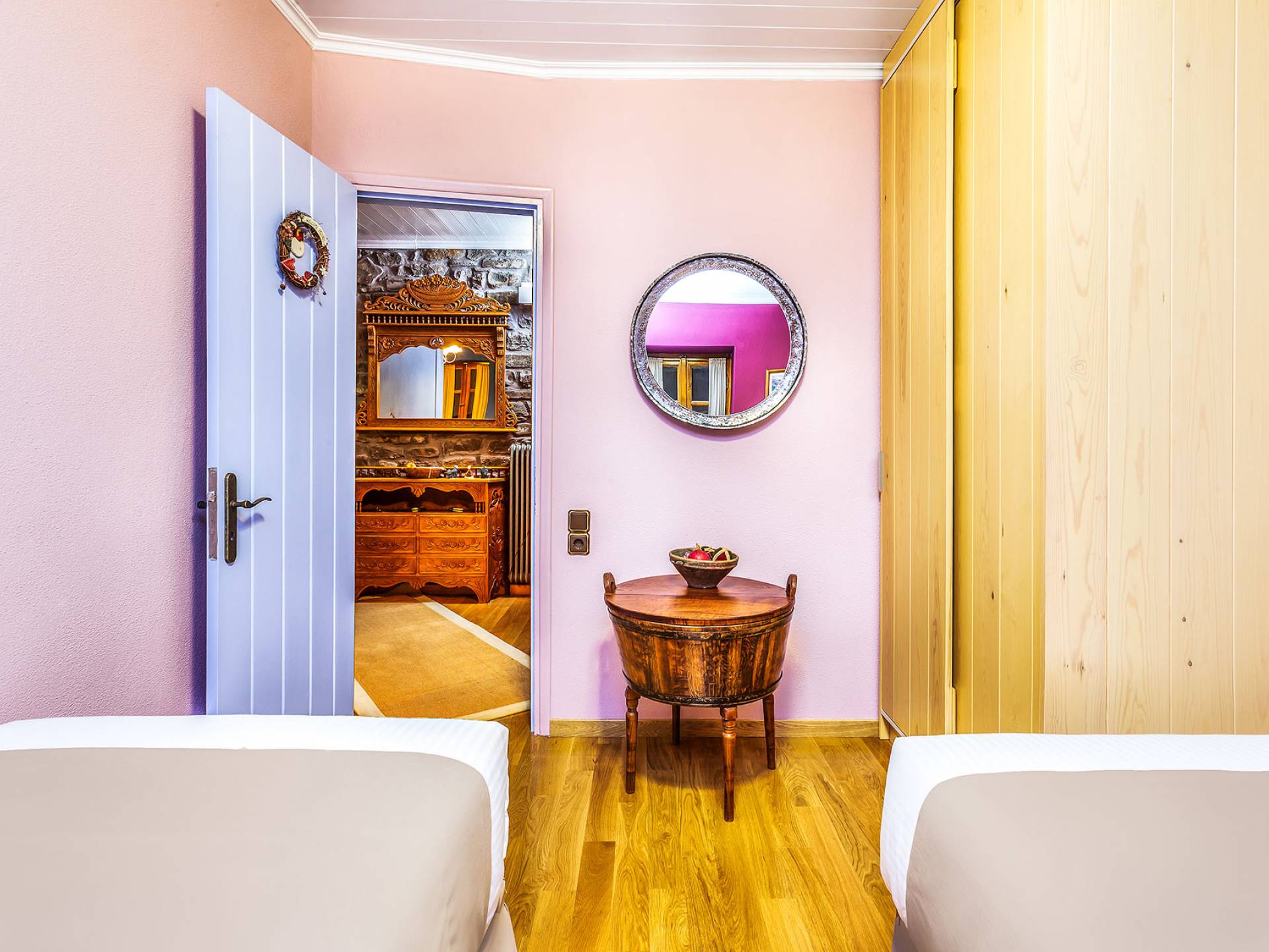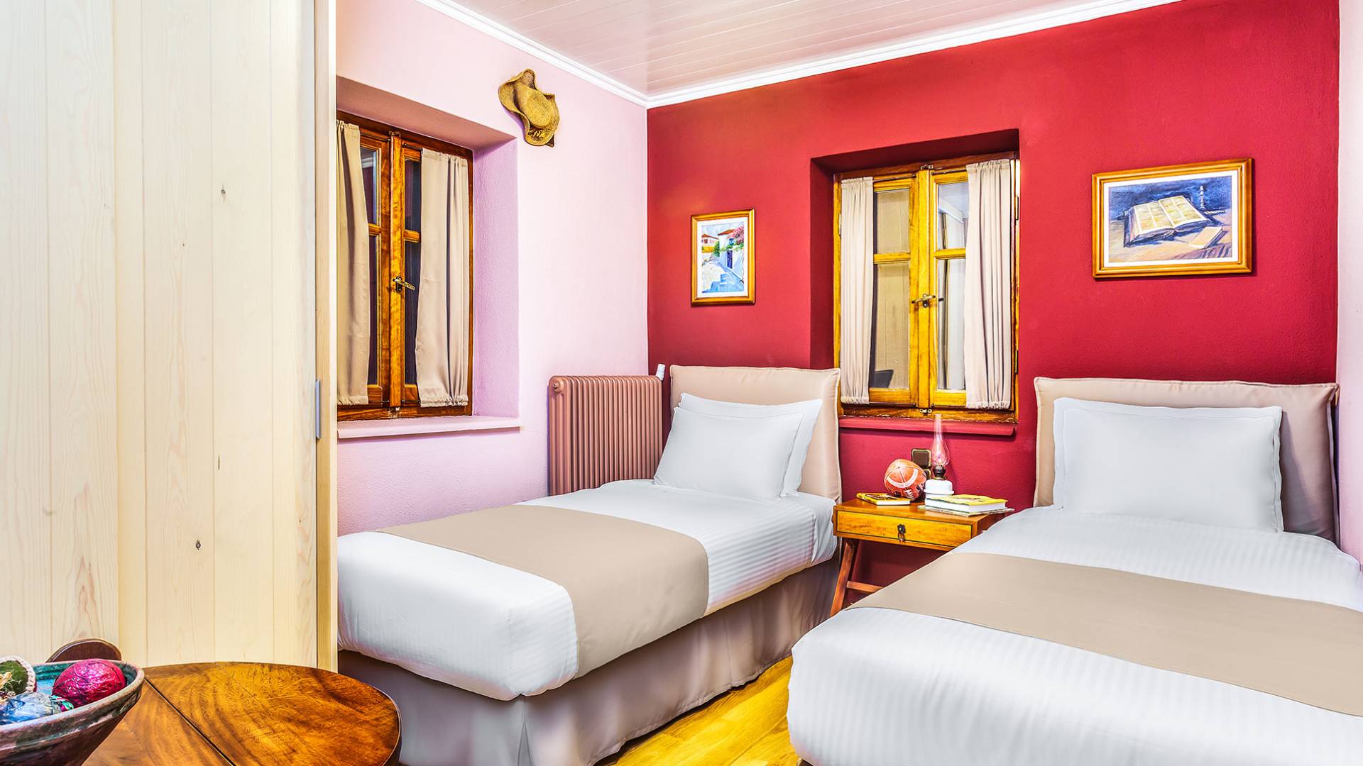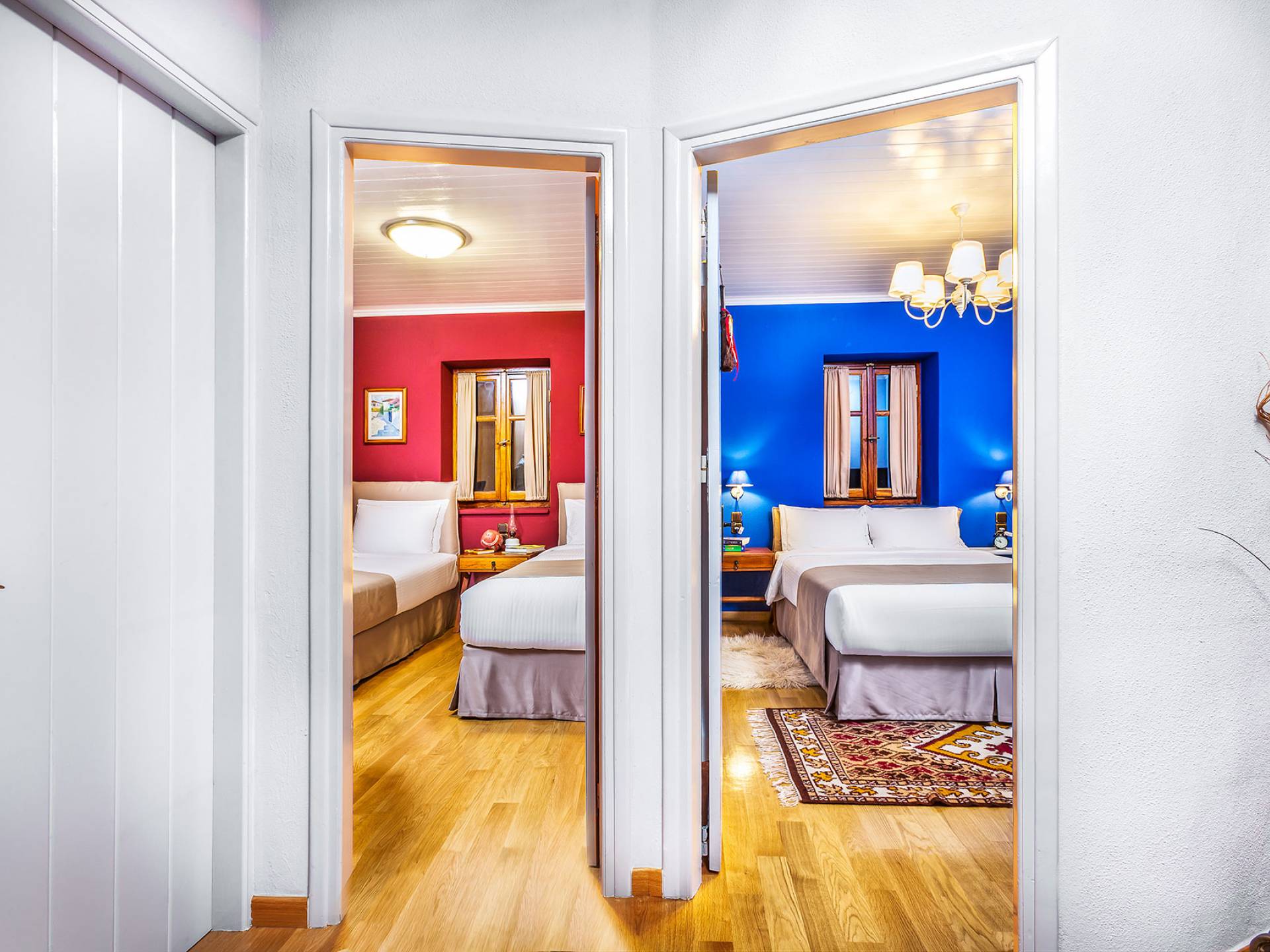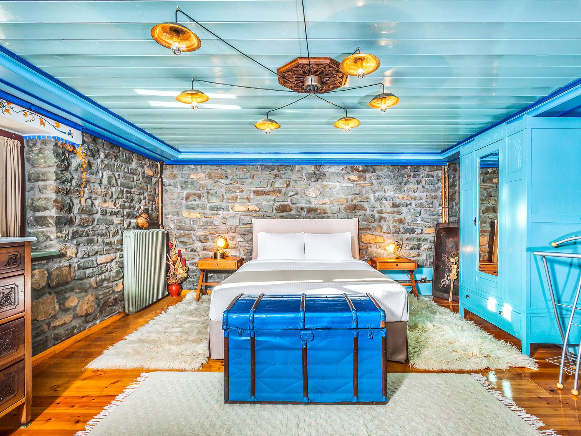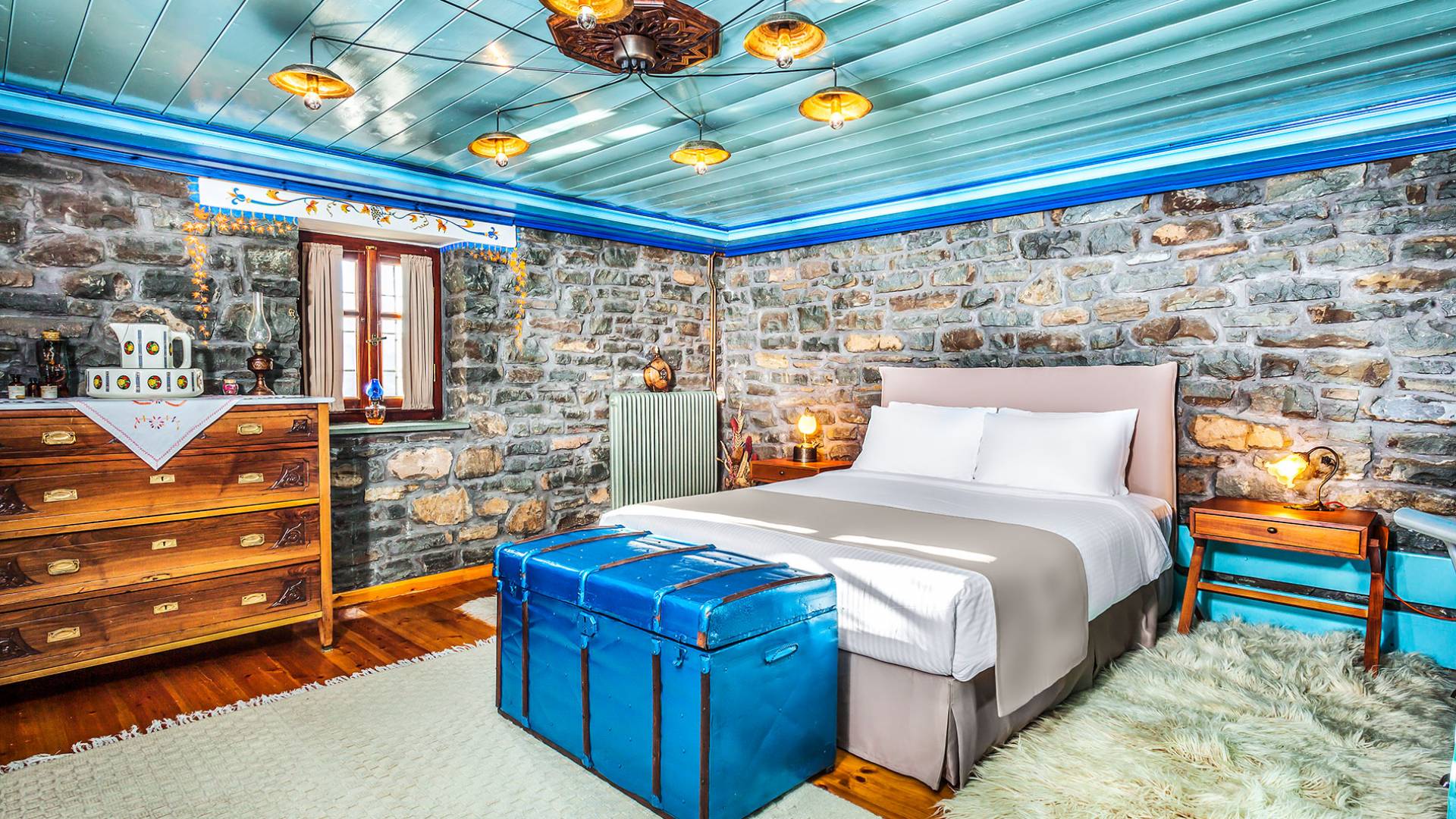 Au plus haut niveau de la maison, avec une vue d'une beauté incomparable dans le paysage sauvage et grandiose de Zagori, vous trouverez un coin chaleureux et familial composé d'une chambre avec lit double, une chambre avec deux lits simples confortables, idéal pour les enfants et une magnifique salle de bain luxueuse. De manière caractéristique, les couleurs qui prévalent dans les deux chambres, les manoirs et sont magnifiques. Le manoir bleu cobalt dans la chambre du couple et le carrelage en céramique chaleureux et relaxant du catholique pour l'enfant avec les lits jumeaux. Lumineux, chaleureux, revêtu de bois, parquet en chêne, éclairage raffiné et détails décoratifs folkloriques, tapis et parquets traditionnels, ainsi que de riches rideaux sur leurs grandes fenêtres, les chambres Heaven's View vous offriront la chaleur ultime. Une salle de bain confortable de style classique, avec une porcelaine lustrée et des accessoires impressionnants, entoure idéalement les deux chambres à l'étage.
