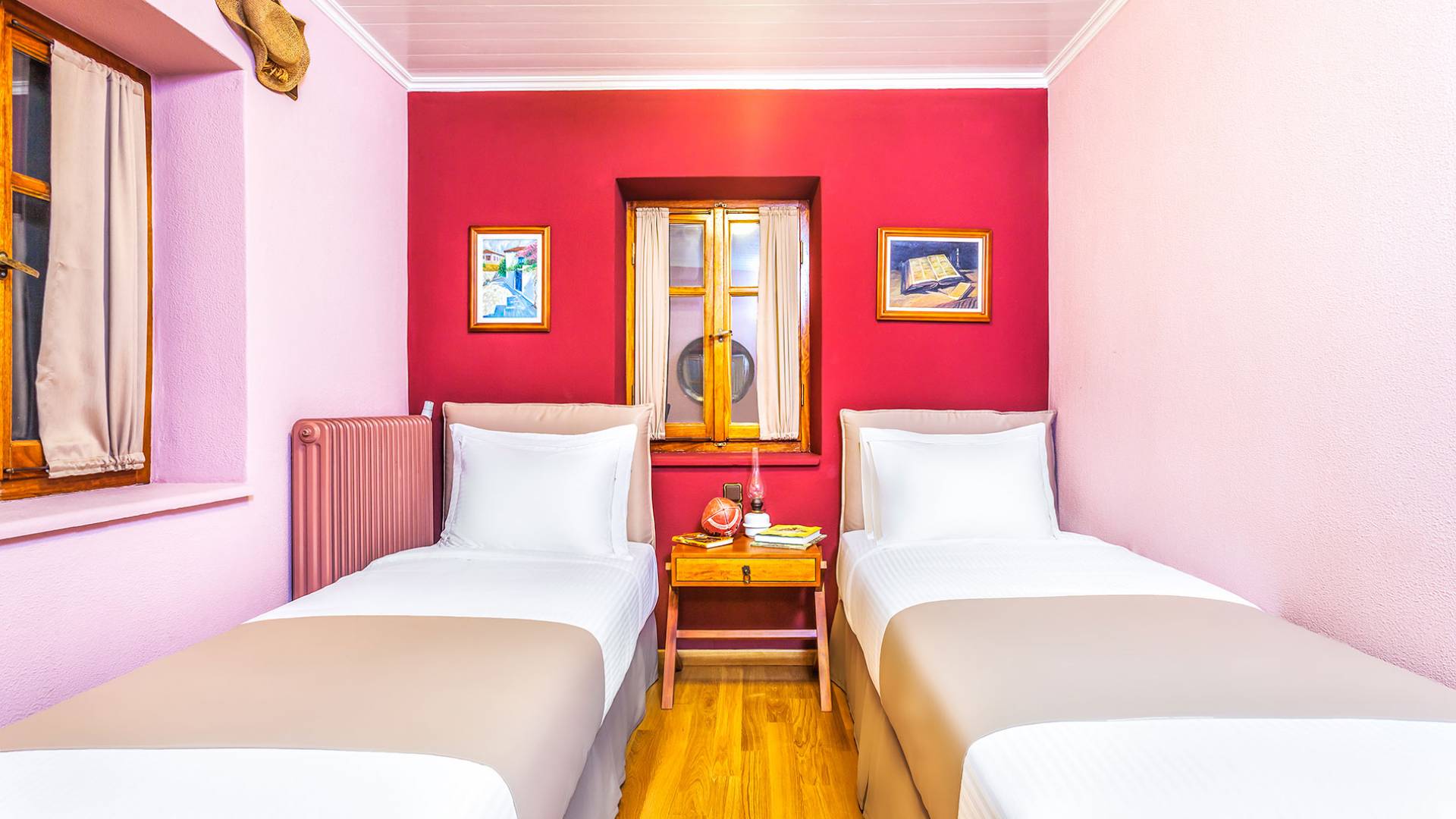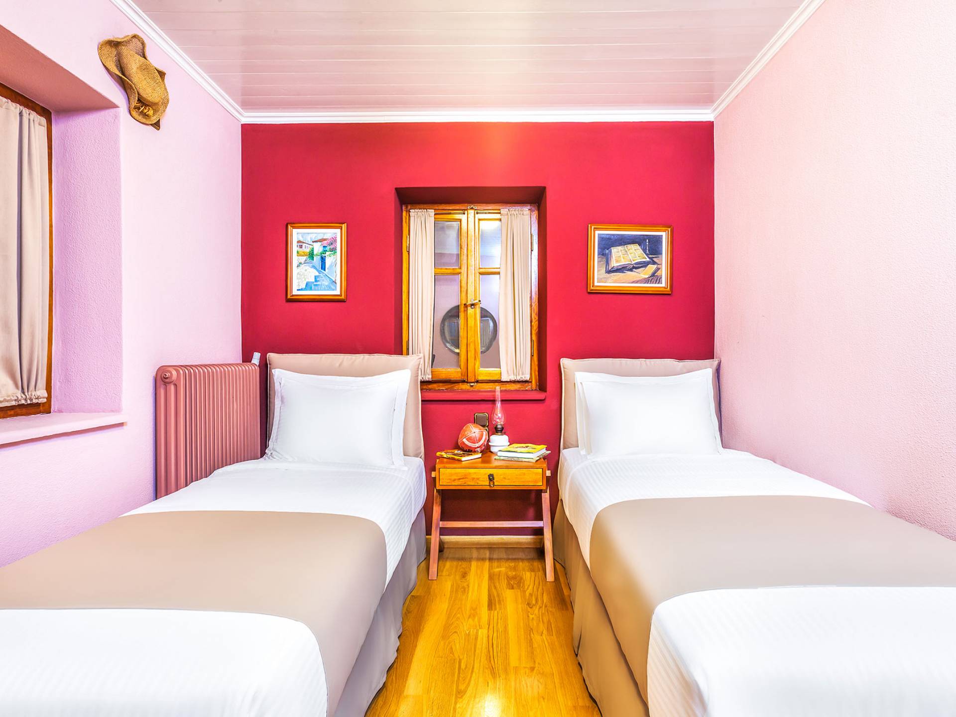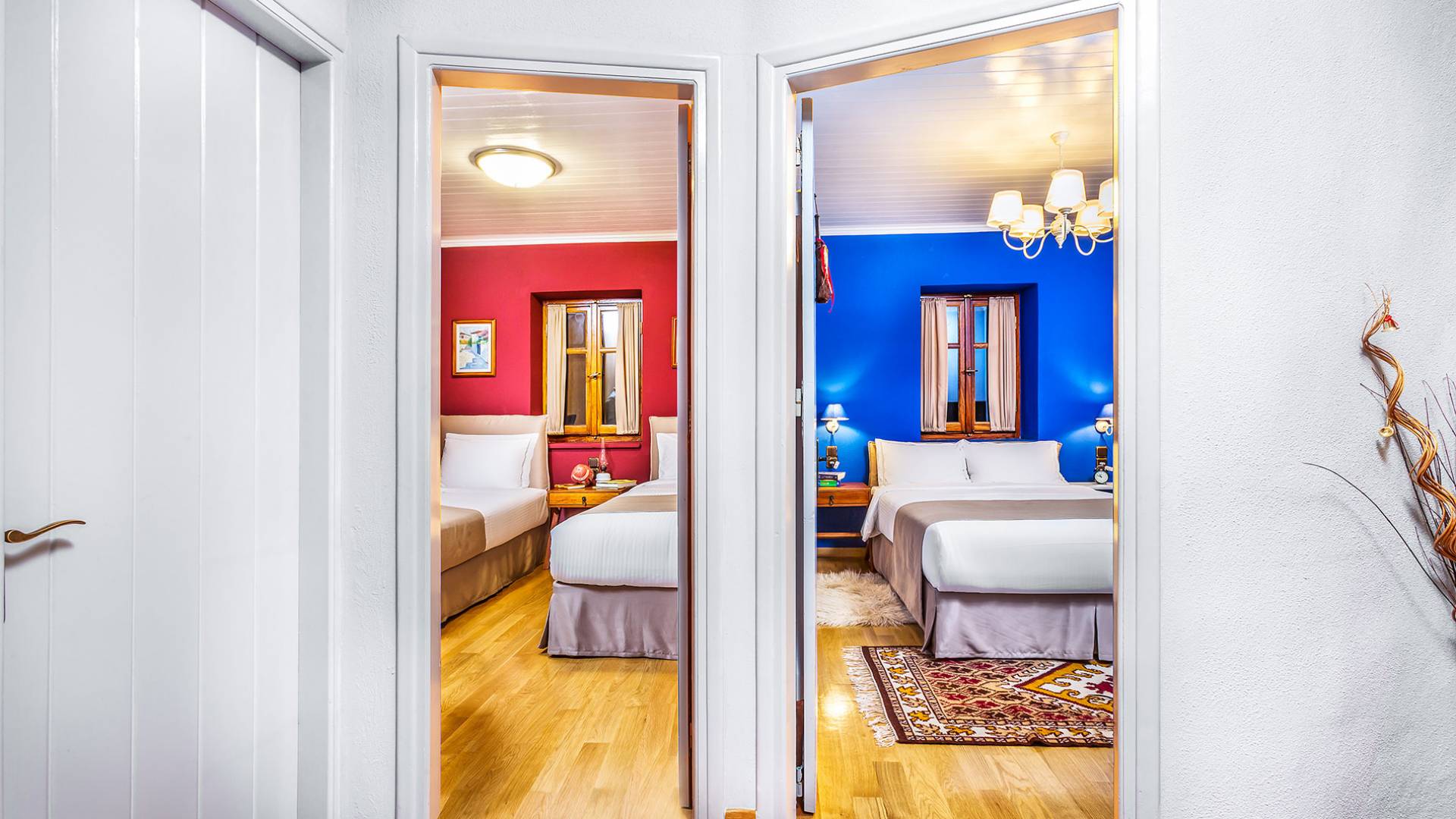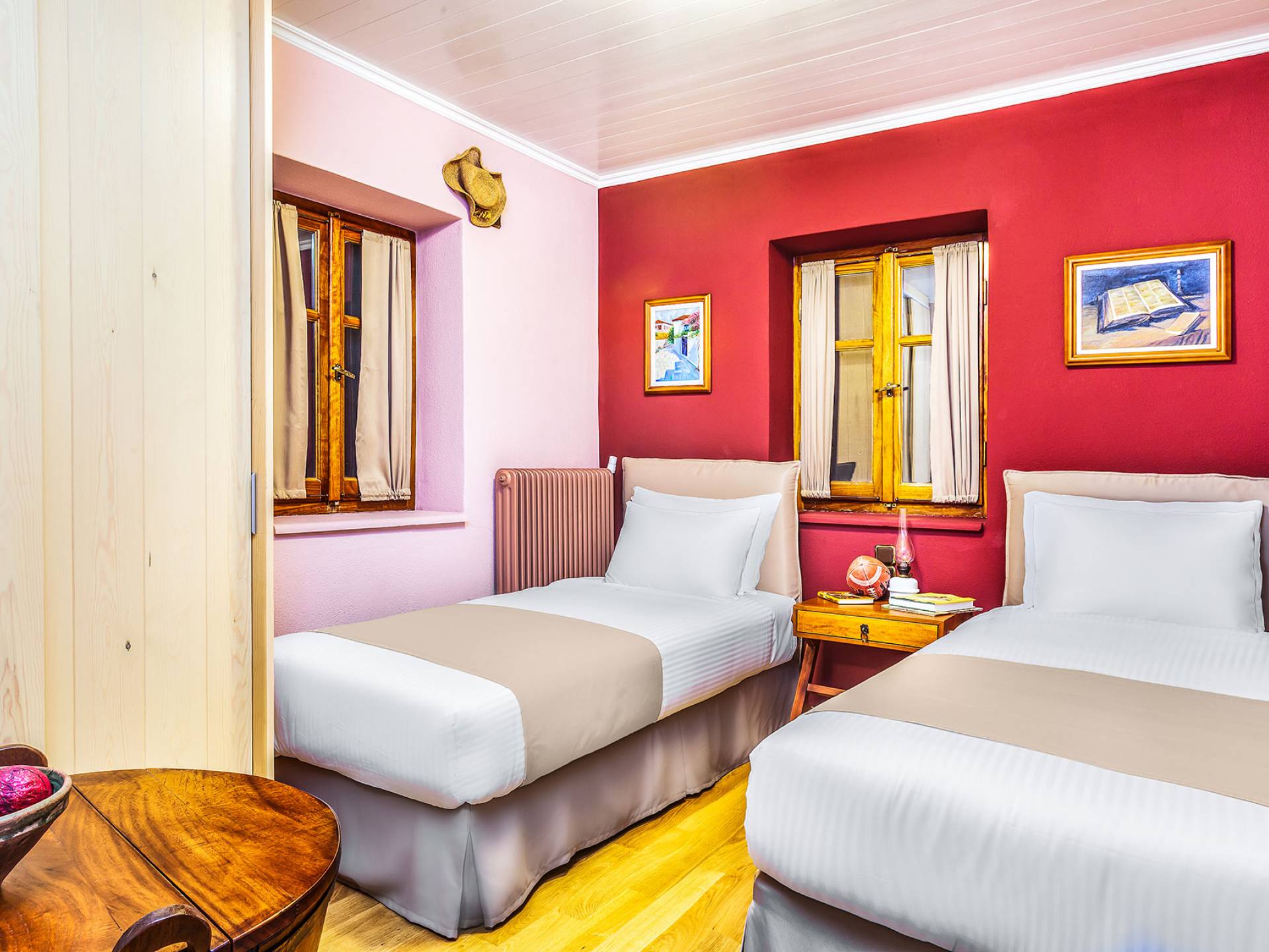 Au plus haut niveau de la maison, avec une vue d'une beauté incomparable dans le paysage sauvage et grandiose de Zagori, vous trouverez un coin chaleureux et familial composé d'une chambre avec lit double, une chambre avec deux lits simples confortables, idéal pour les enfants et une magnifique salle de bain luxueuse. De manière caractéristique, les couleurs qui prévalent dans les deux chambres, les manoirs et sont magnifiques. Le manoir bleu cobalt dans la chambre du couple et le carrelage en céramique chaleureux et relaxant du catholique pour l'enfant avec les lits jumeaux. Lumineux, chaleureux, revêtu de bois, parquet en chêne, éclairage raffiné et détails décoratifs folkloriques, tapis et parquets traditionnels, ainsi que de riches rideaux sur leurs grandes fenêtres, les chambres Heaven's View vous offriront la chaleur ultime. Une salle de bain confortable de style classique, avec une porcelaine lustrée et des accessoires impressionnants, entoure idéalement les deux chambres à l'étage.