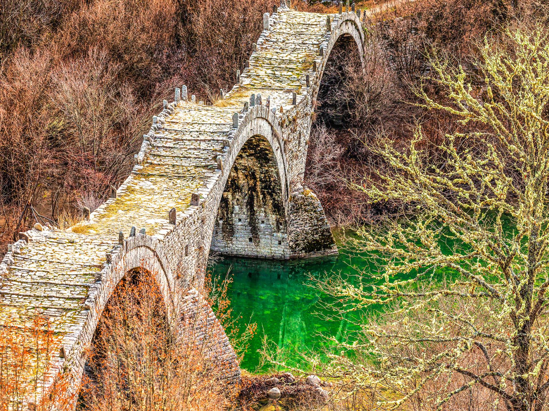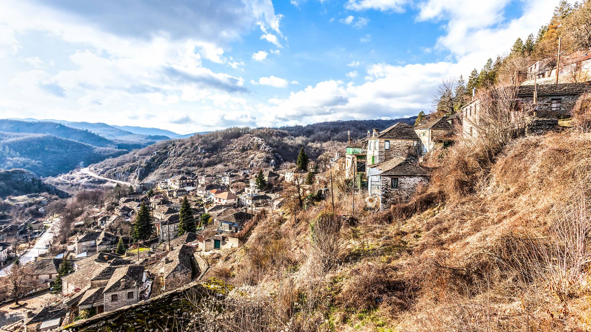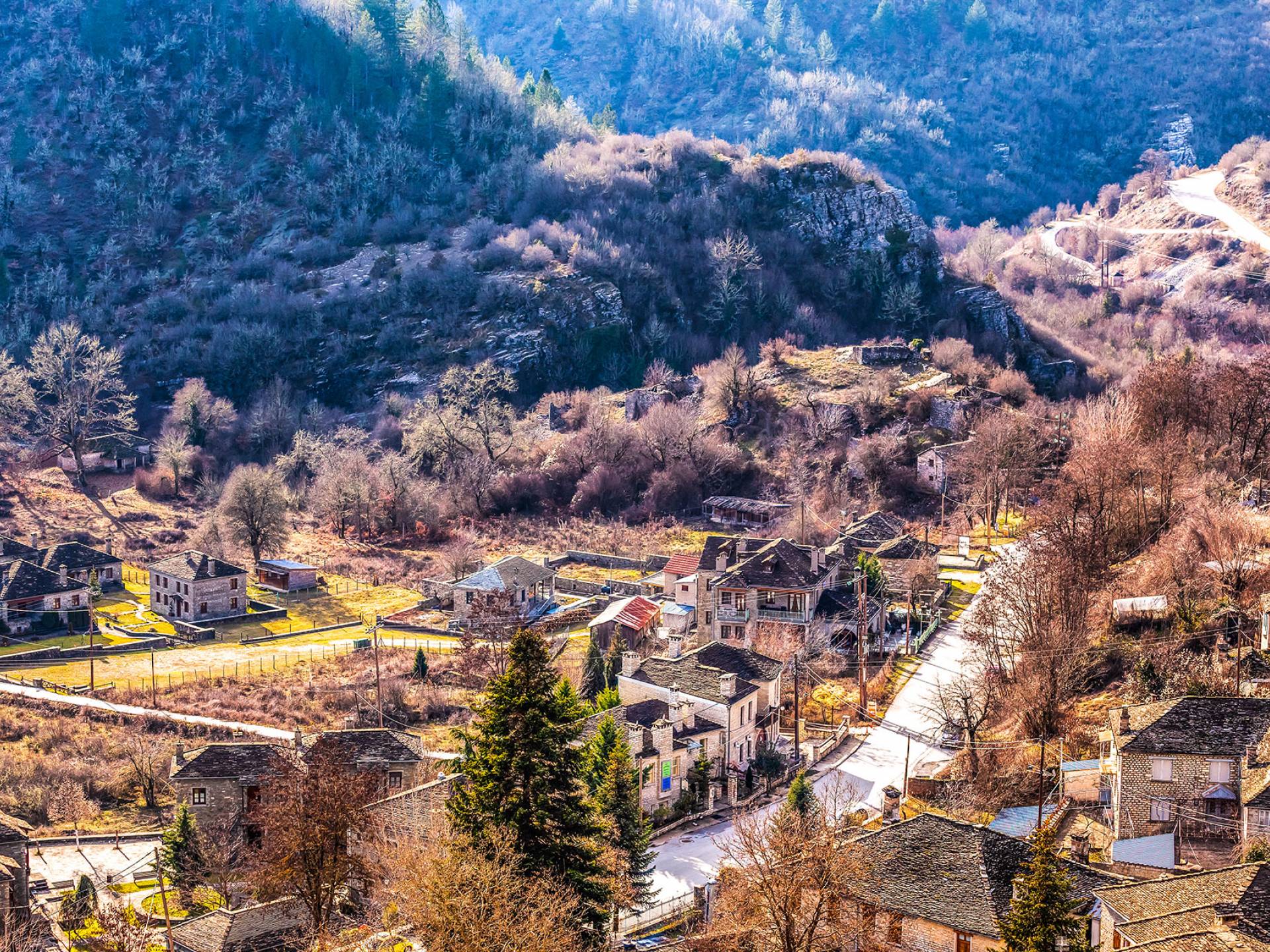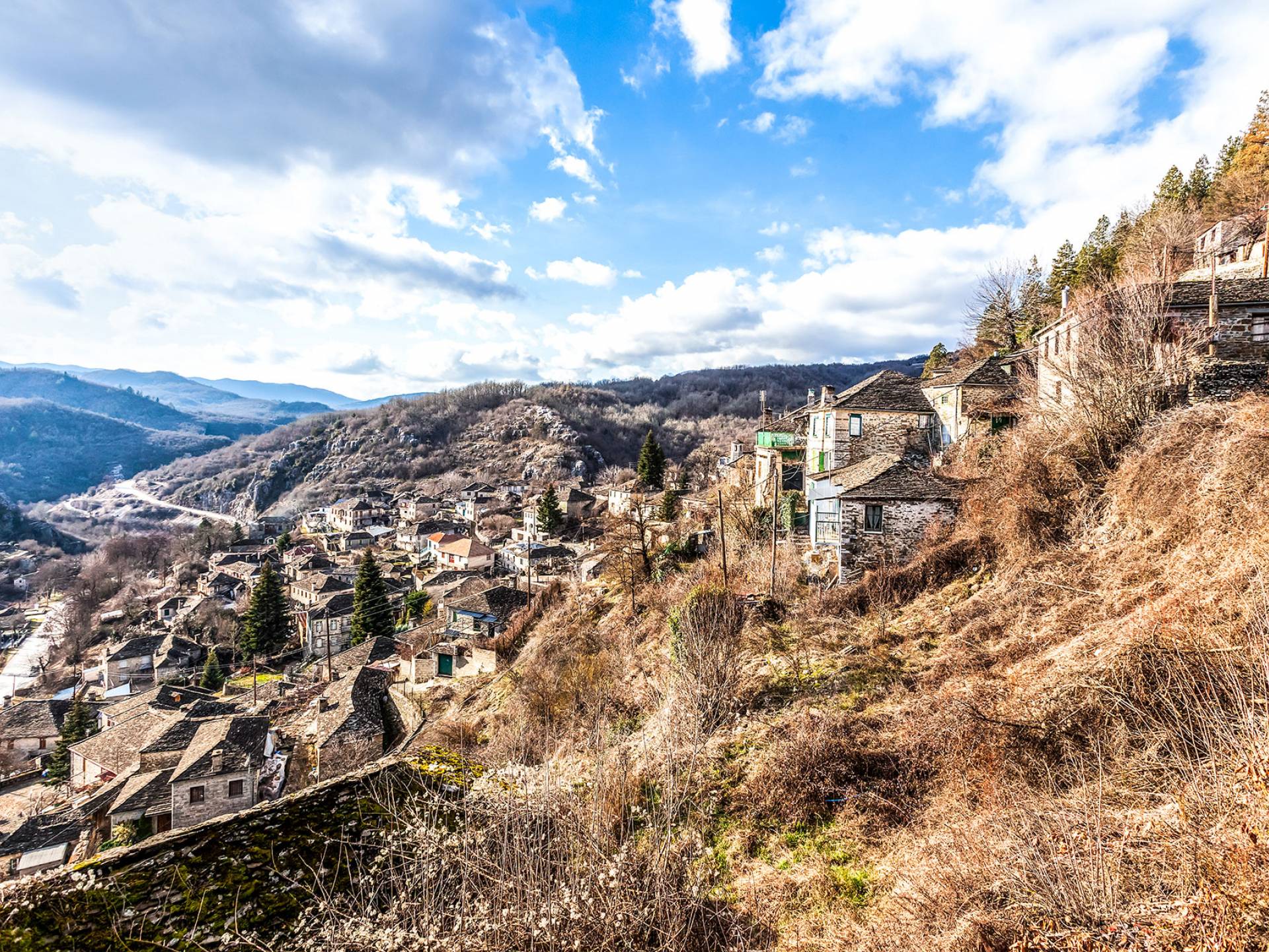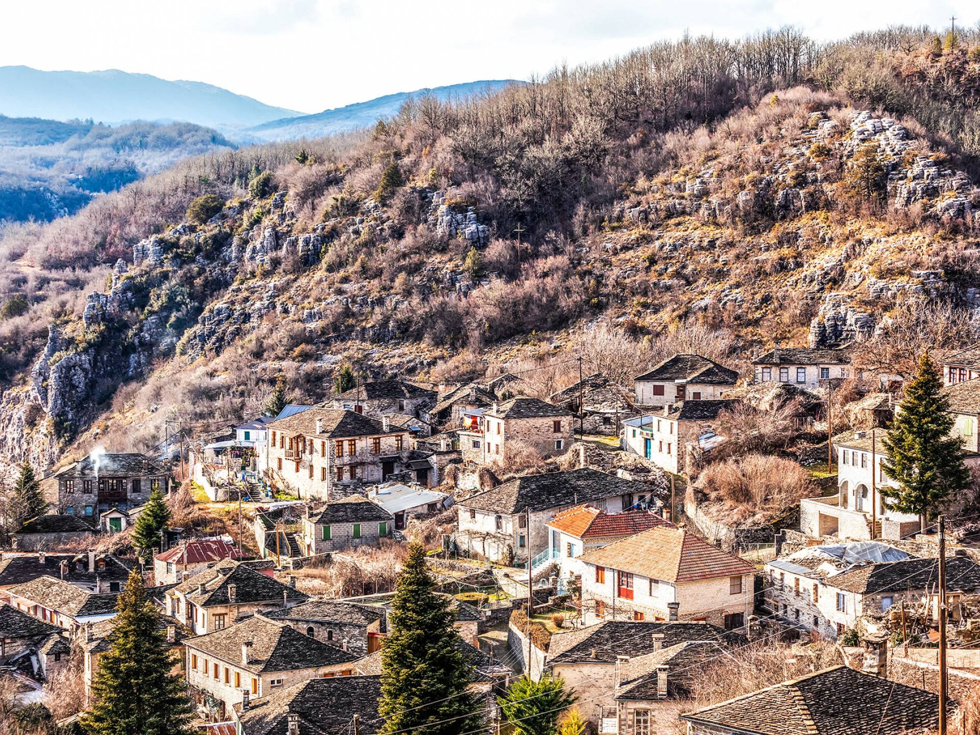 Zagoria est un complexe de villages montagneux de la Grèce continentale entourés d'une beauté naturelle spectaculaire située au nord-ouest de la Grèce. Cette région est surtout connue des touristes grecs pour son large éventail d'activités telles que la randonnée, le rafting, le trekking, l'escalade et l'équitation. Zagoria est une destination de vacances principalement pour l'automne et l'hiver, lorsque la nature est à son meilleur, offrant également des options de centre de ski. Zagoria comprend la gorge de Vikos, qui est la deuxième gorge la plus profonde du monde après le Grand Canyon. Les villages de Zagoria se distinguent par leur architecture traditionnelle caractéristique, avec leurs maisons en pierre, les chemins pavés et les toits de tuiles grises.