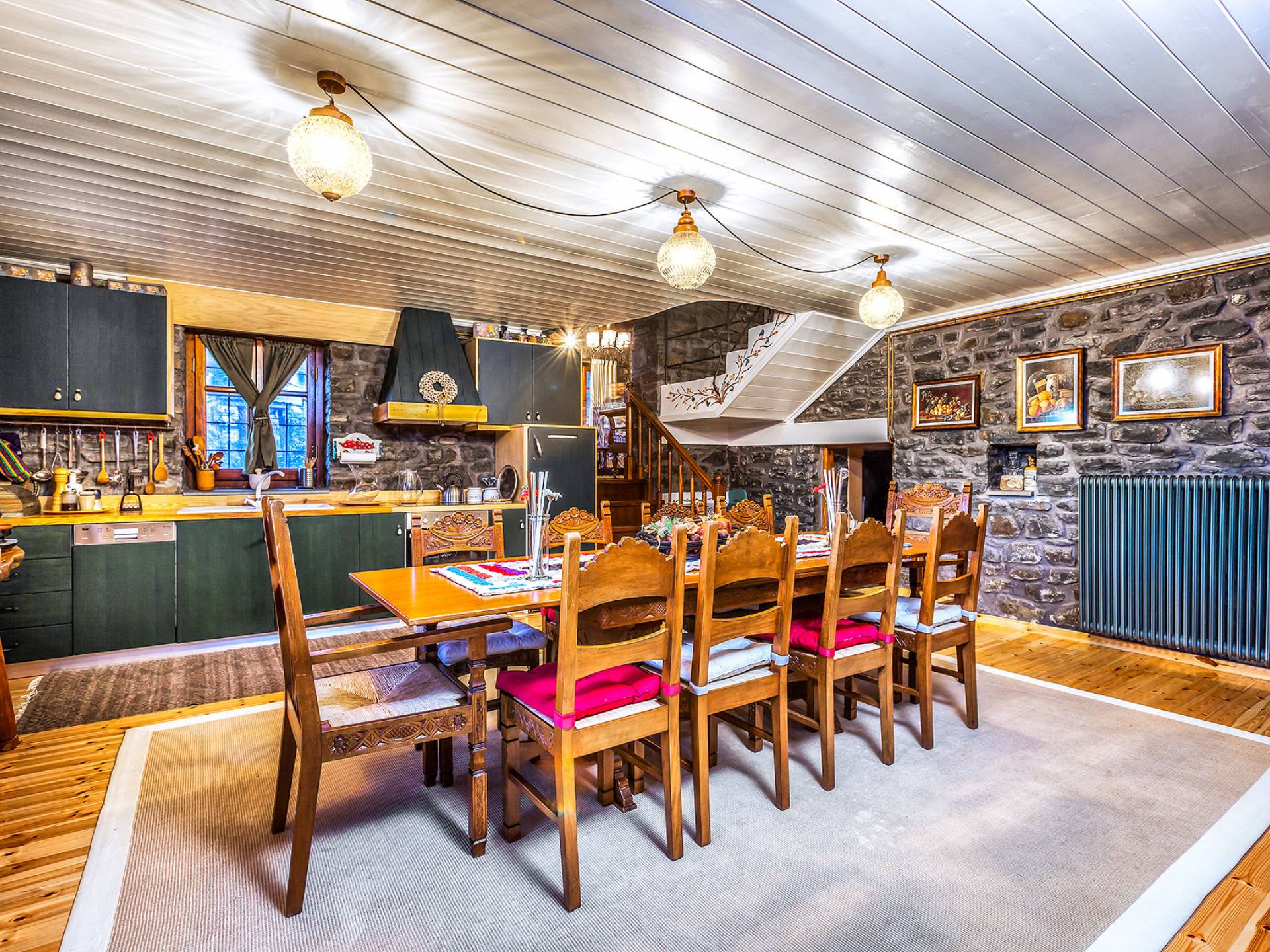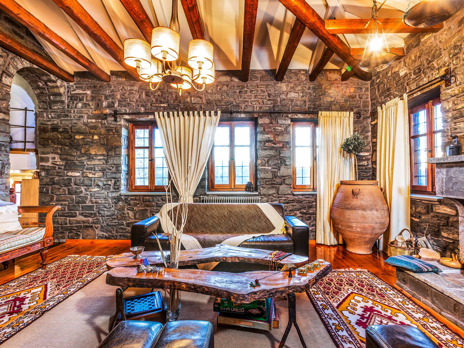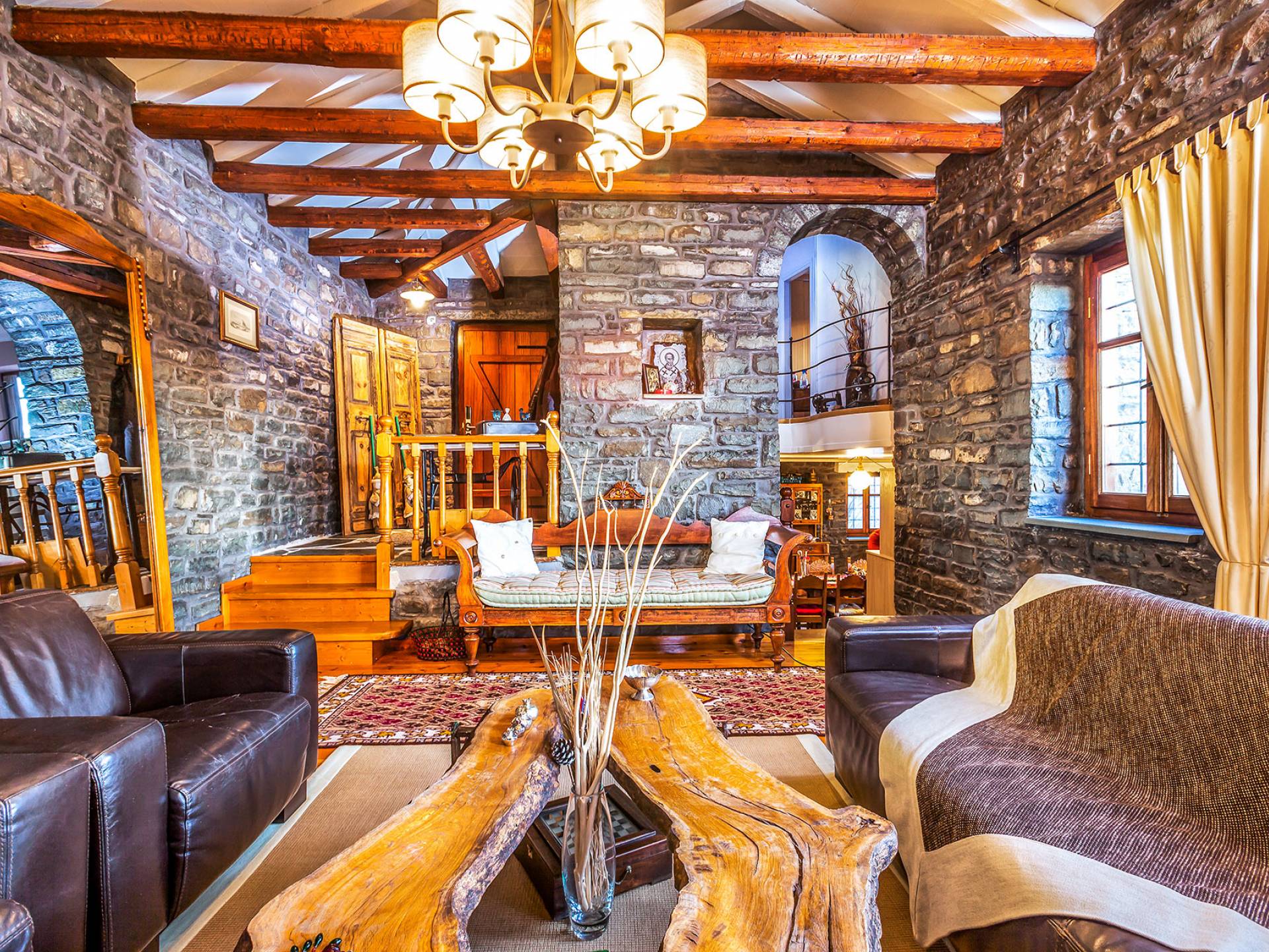 La décoration intérieure d'un manoir et hospitalier, dans un style folklorique authentique, sans ornements ni exagérations inutiles, donne la sensation de confort absolu et de chaleur chaleureuse que tout le monde recherche. Plusieurs niveaux différents, plafonds carrelés, éclairage d'ambiance, meubles et décorations en bois soigneusement sélectionnés qui décorent les pièces, cheminée en pierre, salle de bain luxueuse et parquet en chêne avec de beaux tapis, des bottes traditionnelles et tissées est la première image de l'intérieur de la villa. Très bientôt, vous trouverez toutes les commodités modernes qui rendront votre séjour inoubliable : une grande cuisine entièrement équipée, le chauffage central, le Wifi gratuit, une grande télévision à écran LCD, des articles de toilette et des serviettes fantaisie, des matelas de haute qualité et des draps élégants.
