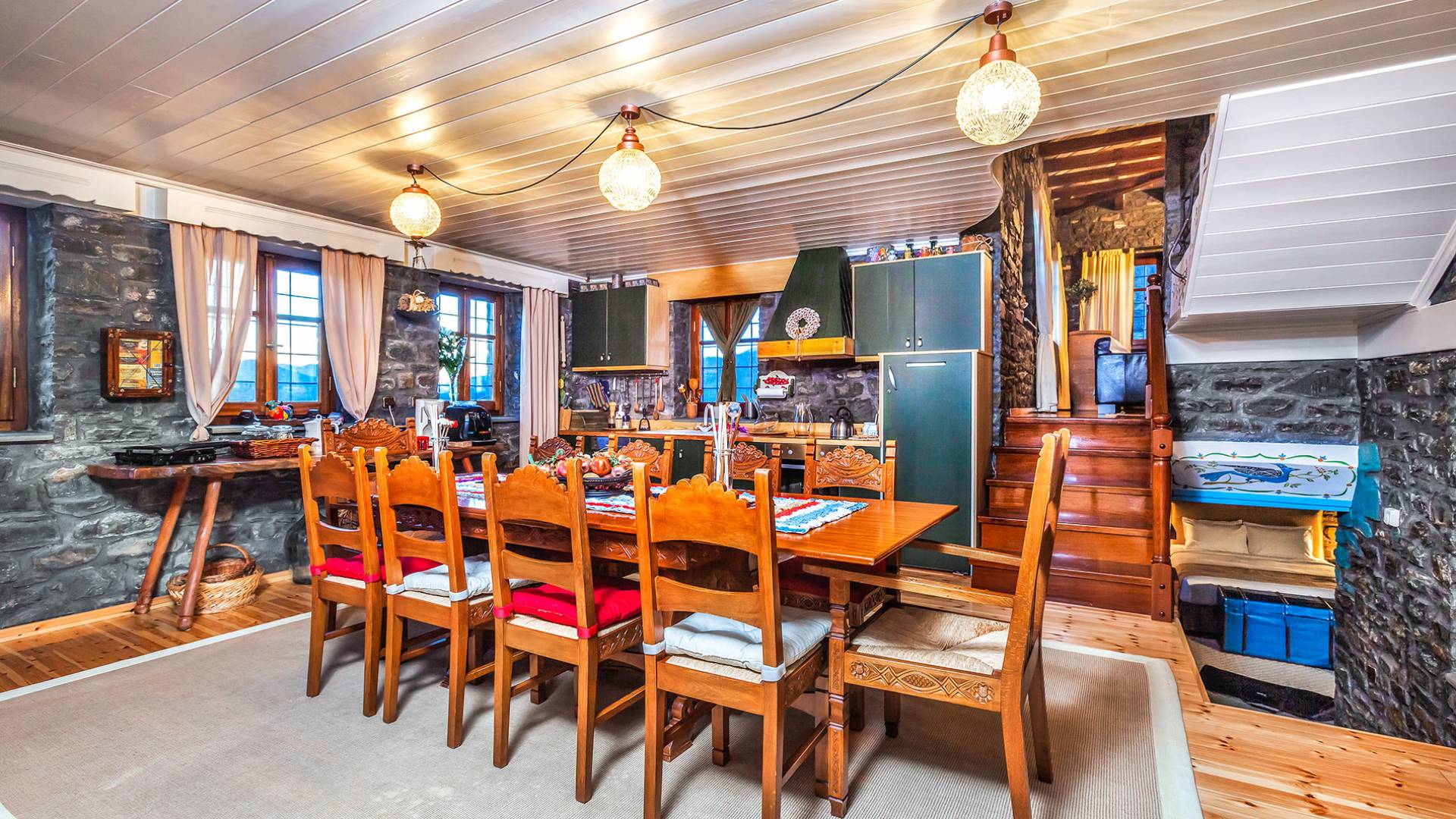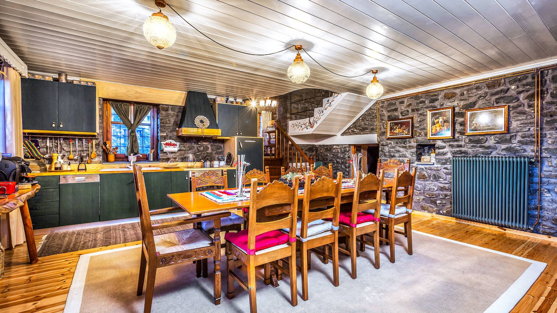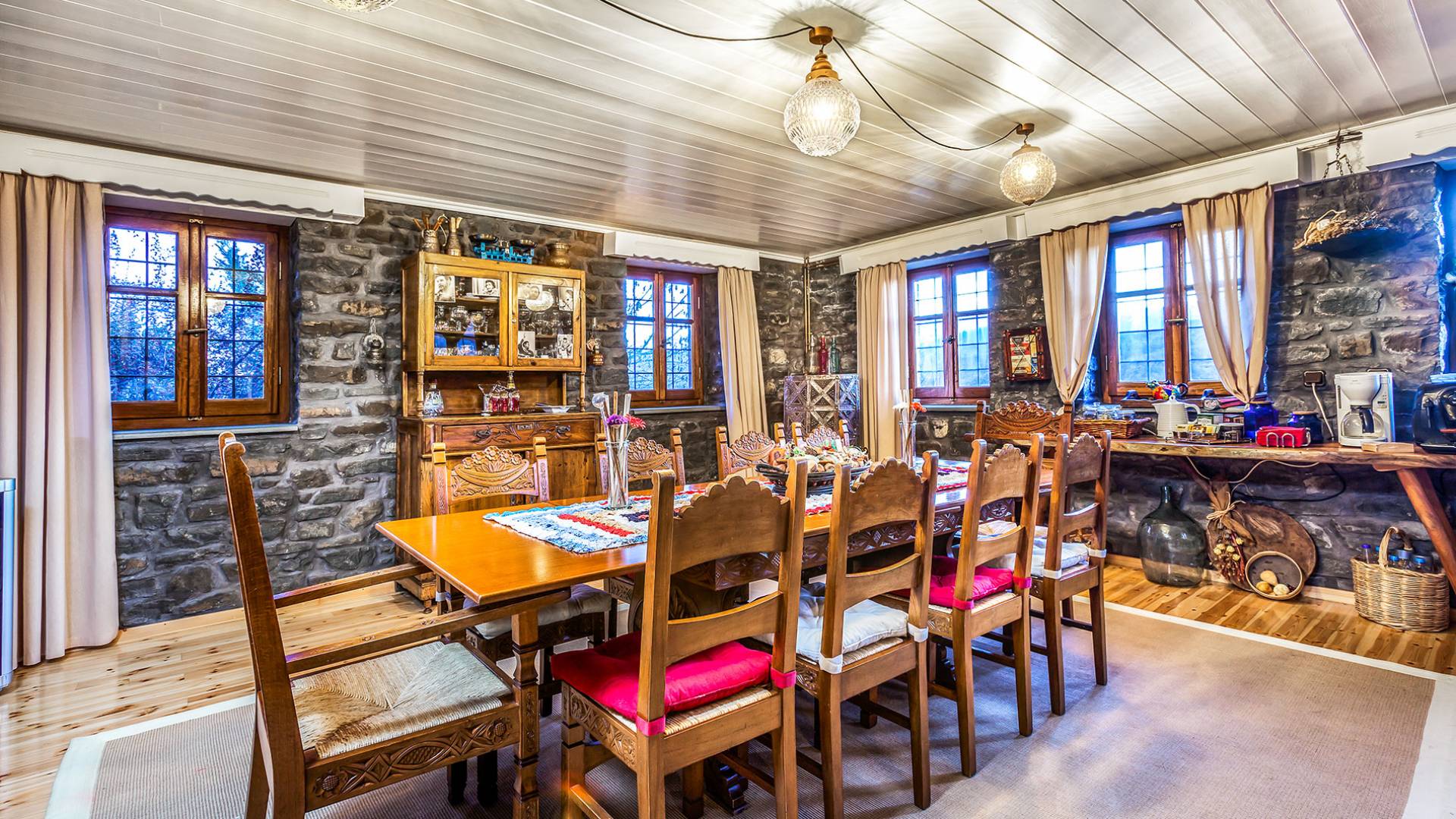 La décoration intérieure d'un manoir et hospitalier, dans un style folklorique authentique, sans ornements ni exagérations inutiles, donne la sensation de confort absolu et de chaleur chaleureuse que tout le monde recherche. Plusieurs niveaux différents, plafonds carrelés, éclairage d'ambiance, meubles et décorations en bois soigneusement sélectionnés qui décorent les pièces, cheminée en pierre, salle de bain luxueuse et parquet en chêne avec de beaux tapis, des bottes traditionnelles et tissées est la première image de l'intérieur de la villa. Très bientôt, vous trouverez toutes les commodités modernes qui rendront votre séjour inoubliable : une grande cuisine entièrement équipée, le chauffage central, le Wifi gratuit, une grande télévision à écran LCD, des articles de toilette et des serviettes fantaisie, des matelas de haute qualité et des draps élégants.