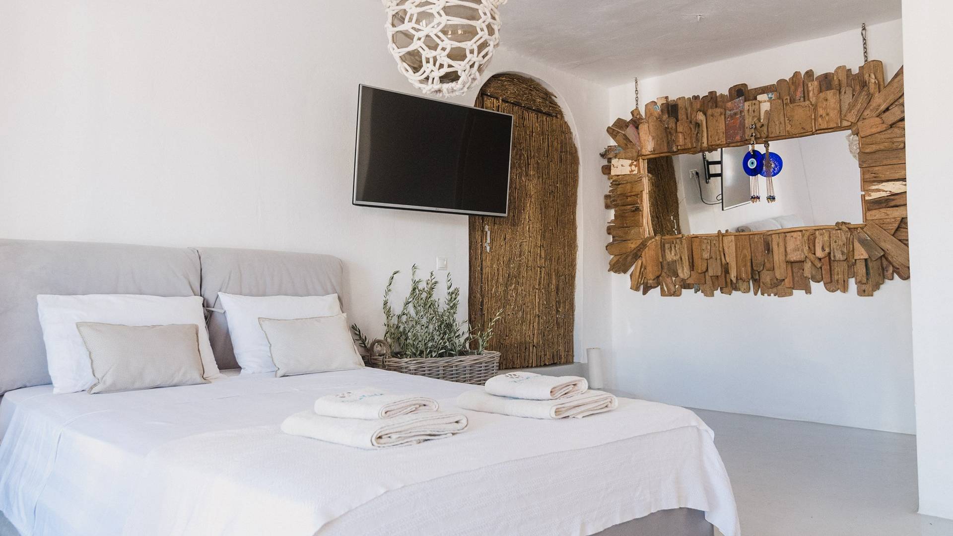 Le Suite Thea Caldera Mykonos comprend une cour privée, climatisée et élégamment décorée, dotée d'un coin salon avec canapé et télévision à écran plat. Une connexion Wi-Fi est disponible gratuitement.