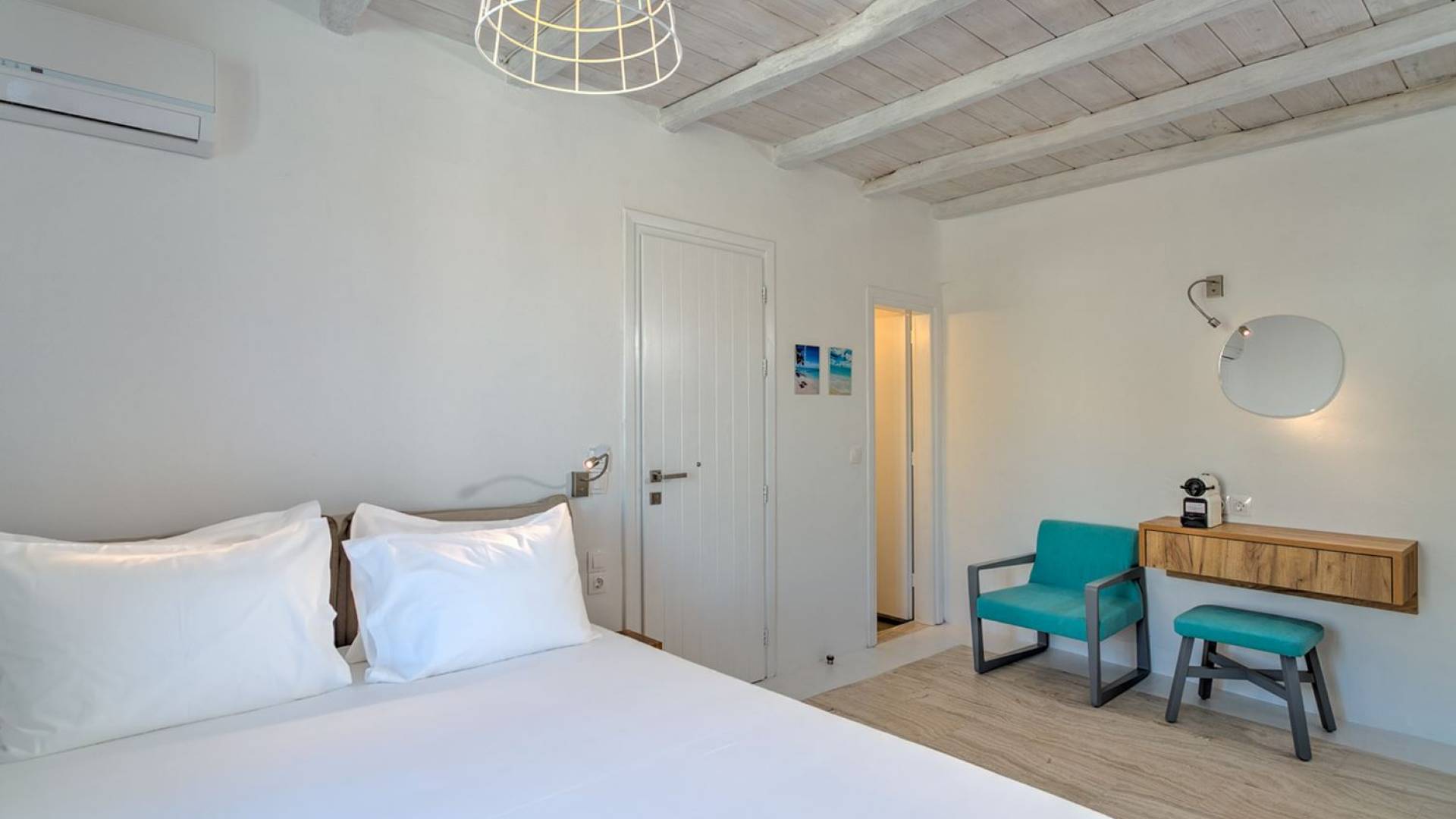 La confortable Suite Junior est une chambre double élégante et élégante avec une vue imprenable sur la mer. La suite comprend une douche de construction traditionnelle et un joli balcon donnant sur la piscine principale et la mer !