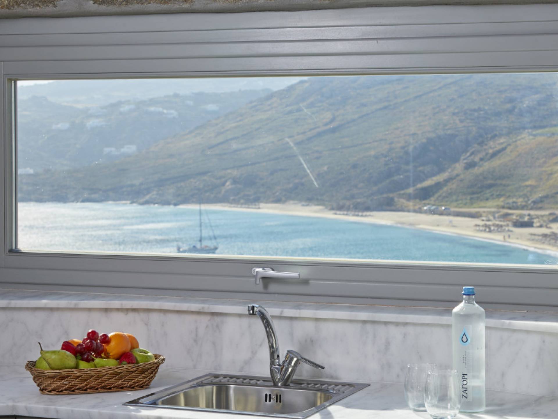 Idéal pour les sports nautiques tels que la planche à voile et le jet ski sur la plage, vous ne voudrez plus quitter la plage. De là, vous pouvez également aller en bateau à Plati Gialos ou visiter «Watermania» pour ses toboggans aquatiques. Manger dans l'un des restaurants de la région et demander des crevettes marinées, c'est une délicatesse vraiment locale.
