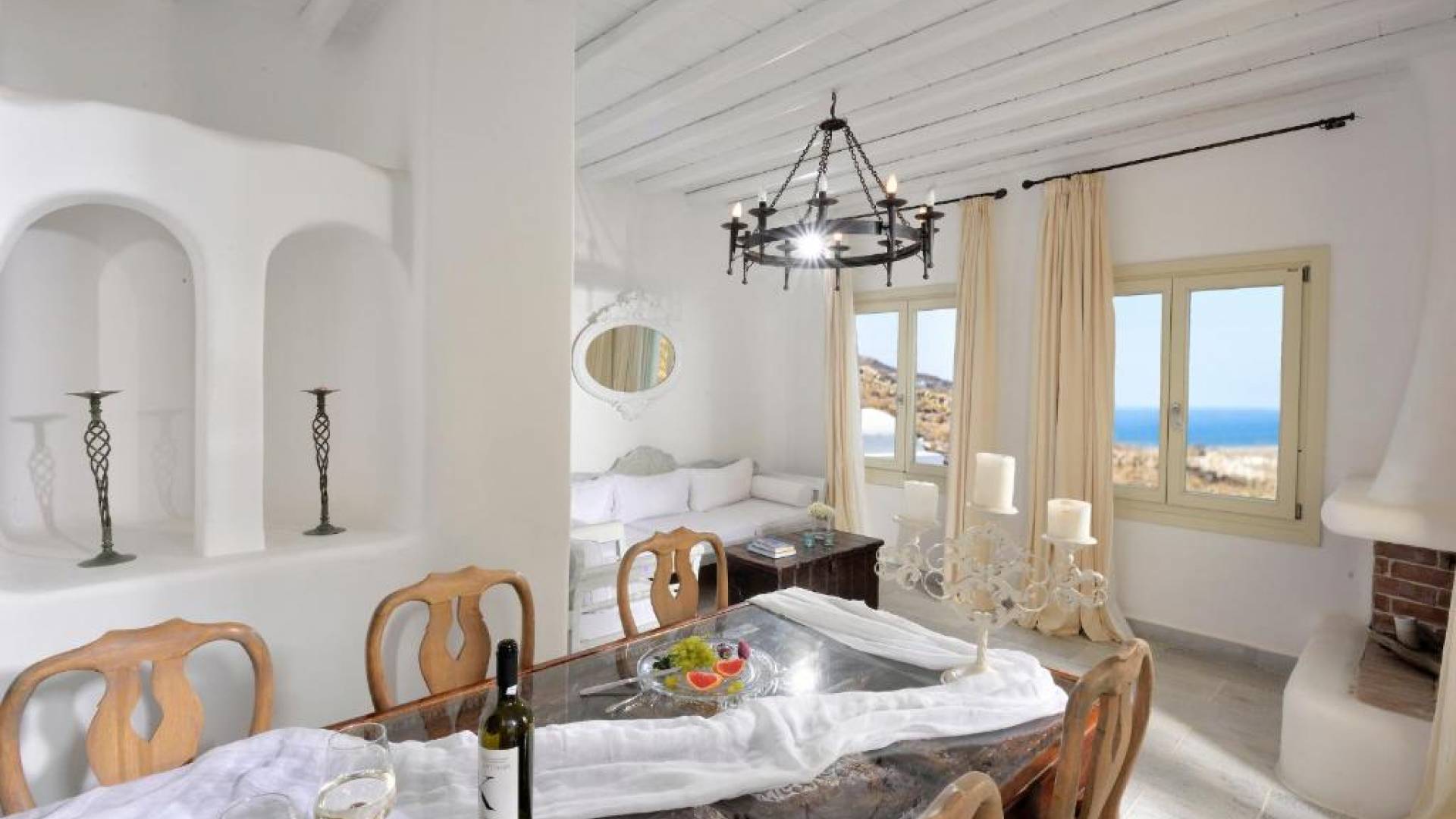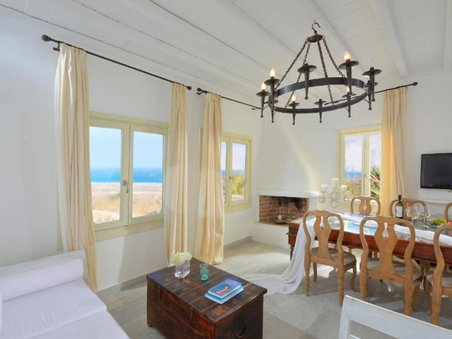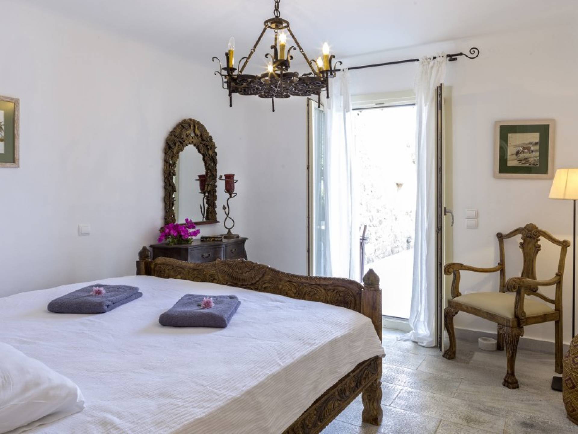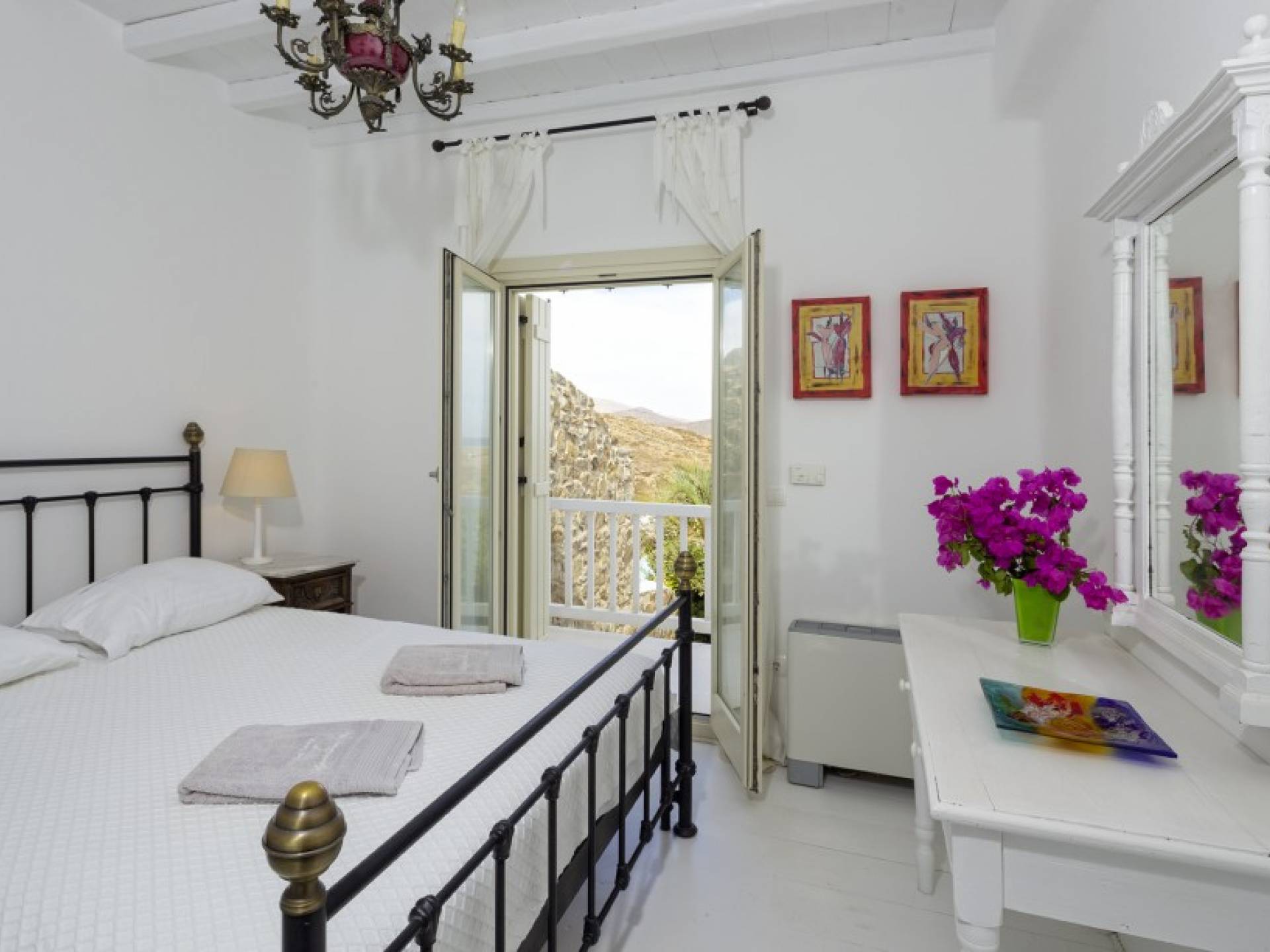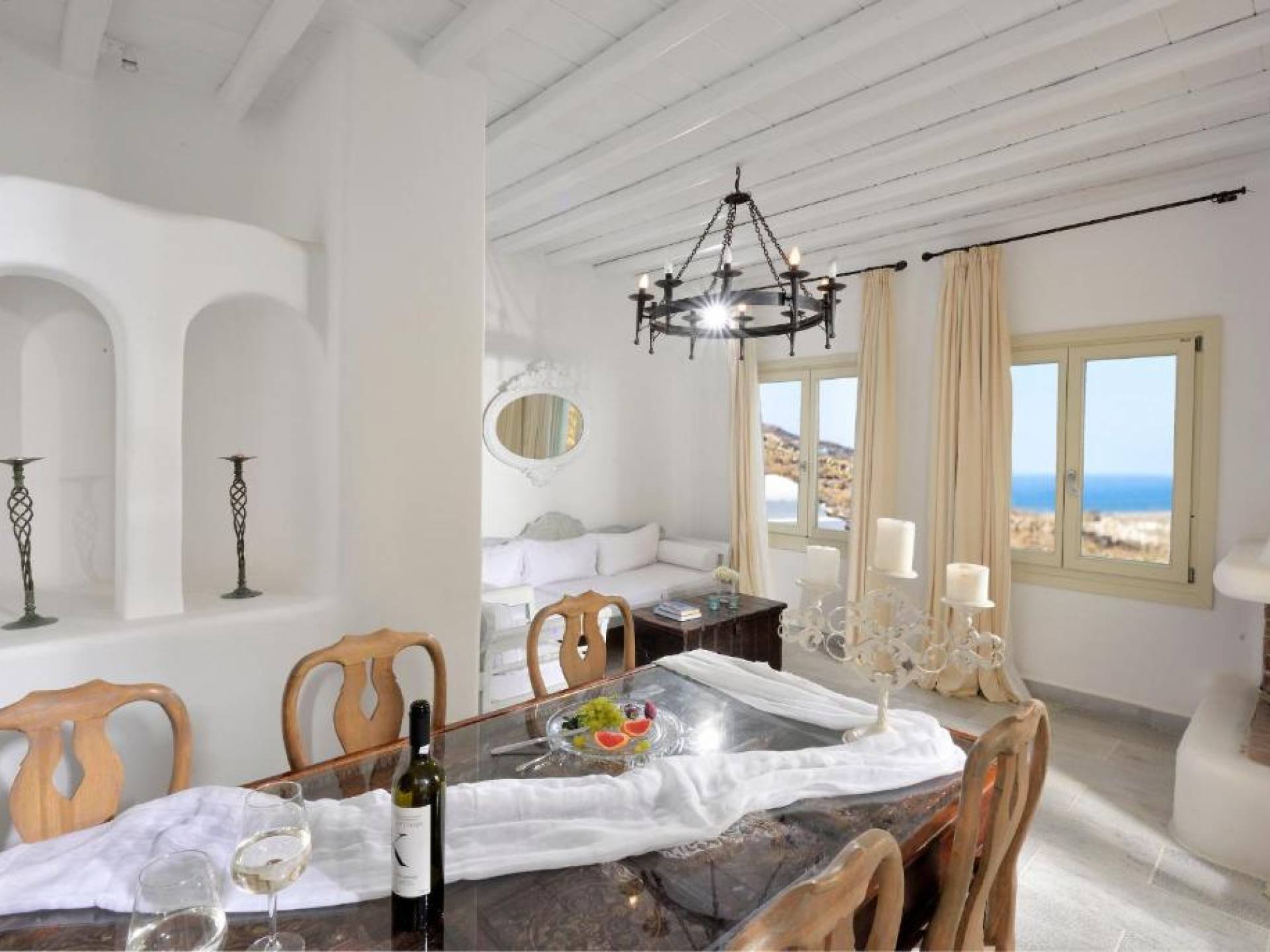 La Villa Atalia Mykonos est une superbe propriété offrant une vue panoramique imprenable sur la mer dans un cadre élégant et élégant. La villa se compose de deux sections, la maison principale et la suite d'invités. En entrant, vous vous retrouvez dans un grand salon décloisonné composé d'une salle à manger pour 8 personnes, d'un salon avec cheminée et d'une cuisine entièrement équipée. Le salon bénéficie d'un accès à une magnifique véranda en parquet offrant un coin repas extérieur ou un lieu de détente pour déguster des boissons fraîches et des apéritifs avec vue sur la plage. Située au même étage, une chambre spacieuse s'ouvre sur un joli balcon offrant une vue romantique sur la mer. Un escalier intérieur mène à une deuxième chambre au rez-de-chaussée avec accès à une luxueuse terrasse en marbre. Attenante, la suite d'invités avec entrée indépendante comprend une chambre triple avec dressing et une impressionnante salle de bain en marbre attenante avec baignoire hydro-massage.