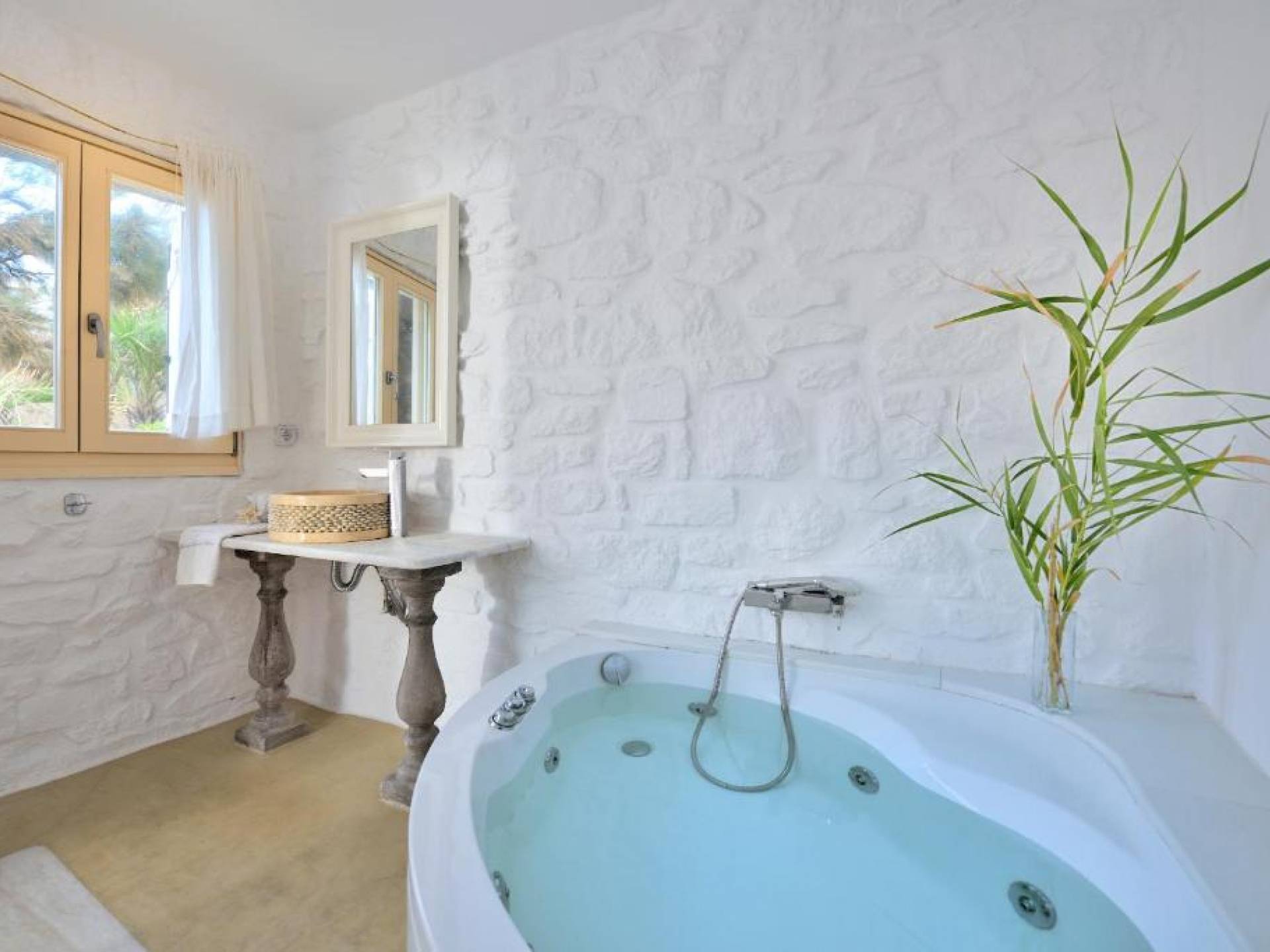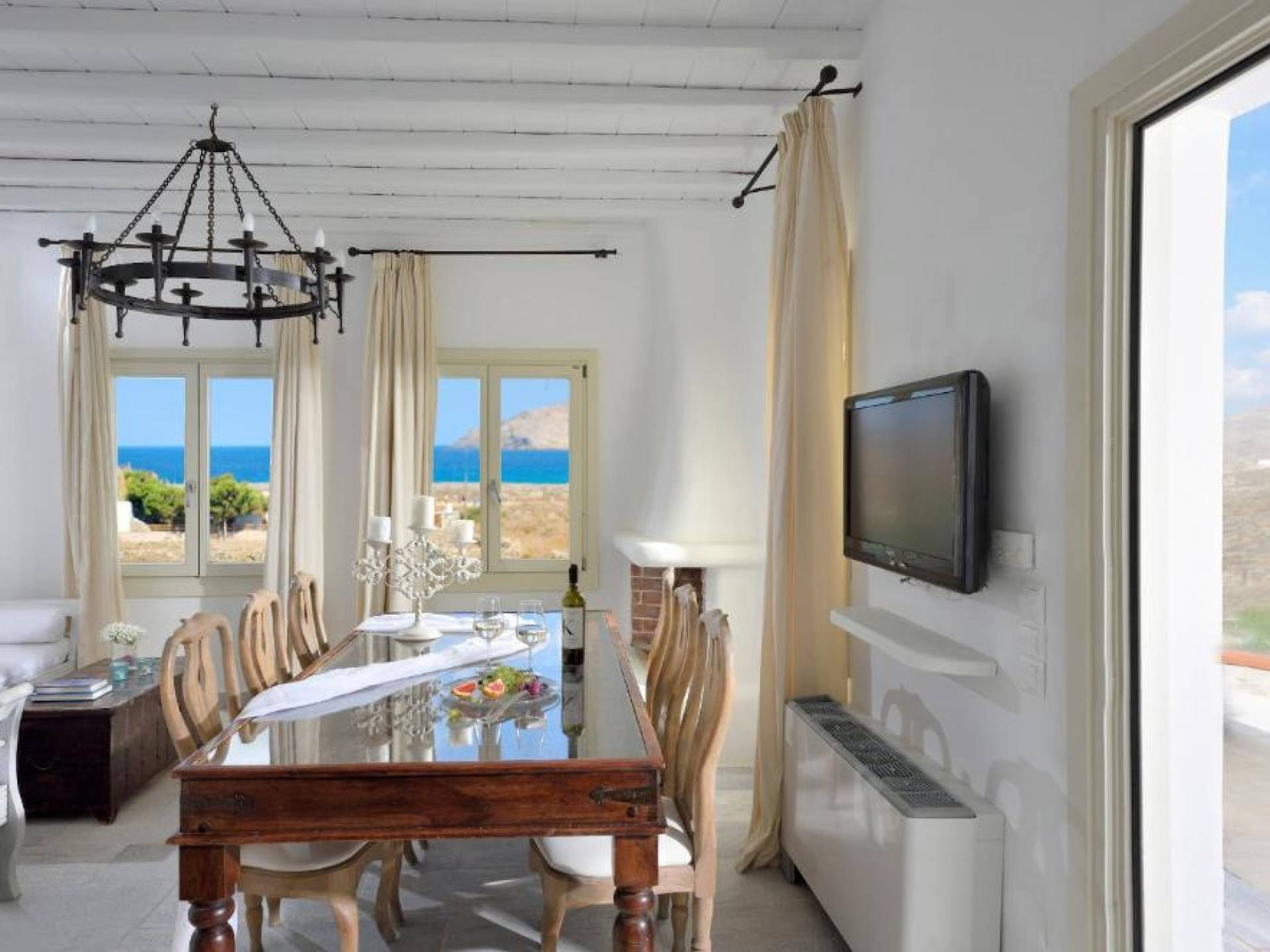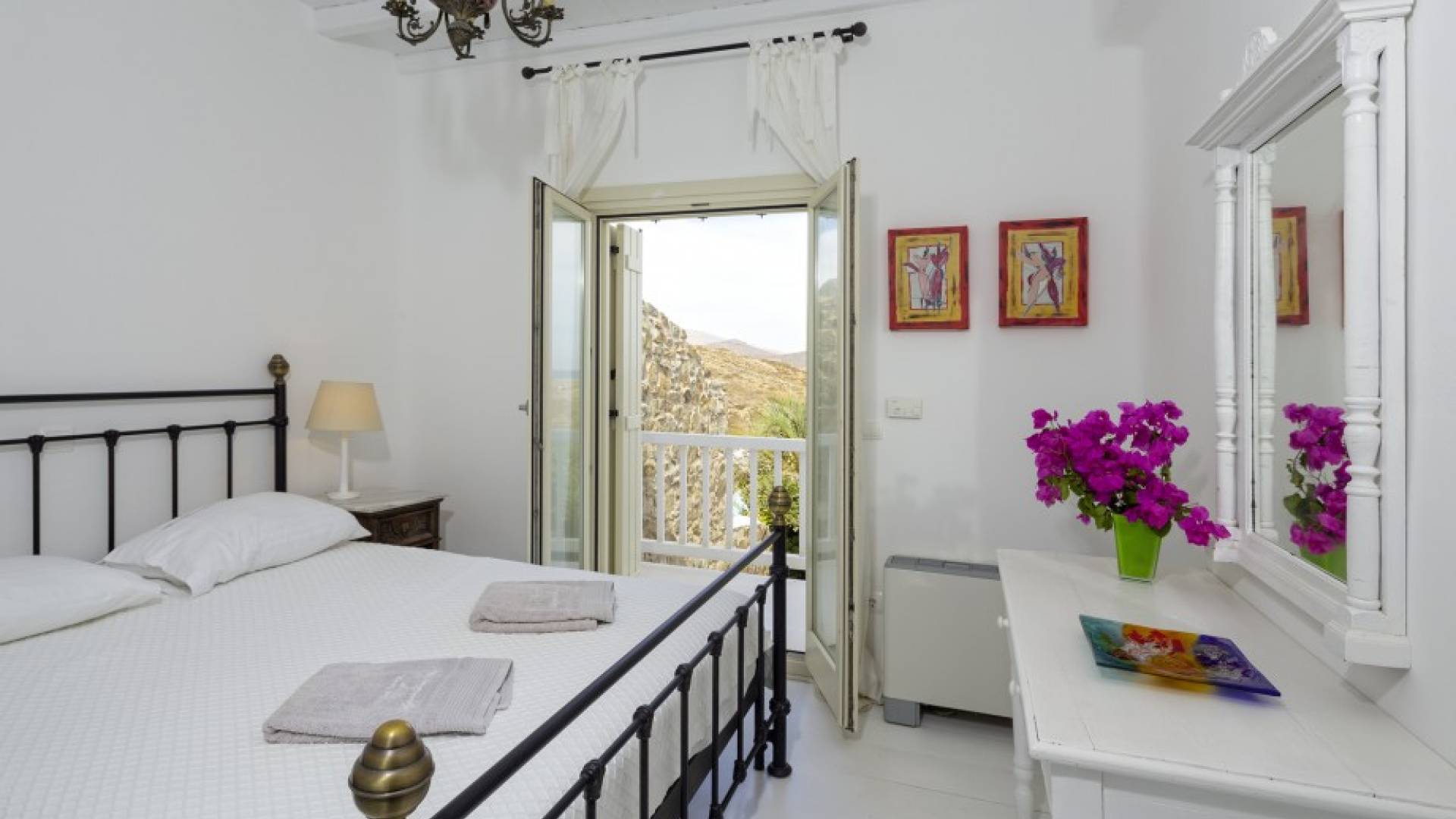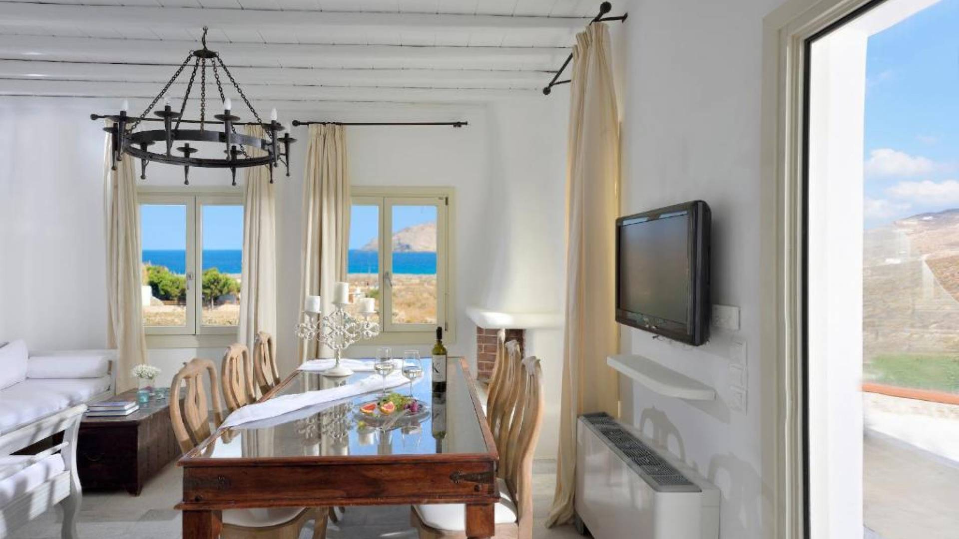 La Villa Atalia Mykonos est une superbe propriété offrant une vue panoramique imprenable sur la mer dans un cadre élégant et élégant. La villa se compose de deux sections, la maison principale et la suite d'invités. En entrant, vous vous retrouvez dans un grand salon décloisonné composé d'une salle à manger pour 8 personnes, d'un salon avec cheminée et d'une cuisine entièrement équipée. Le salon bénéficie d'un accès à une magnifique véranda en parquet offrant un coin repas extérieur ou un lieu de détente pour déguster des boissons fraîches et des apéritifs avec vue sur la plage. Située au même étage, une chambre spacieuse s'ouvre sur un joli balcon offrant une vue romantique sur la mer. Un escalier intérieur mène à une deuxième chambre au rez-de-chaussée avec accès à une luxueuse terrasse en marbre. Attenante, la suite d'invités avec entrée indépendante comprend une chambre triple avec dressing et une impressionnante salle de bain en marbre attenante avec baignoire hydro-massage.