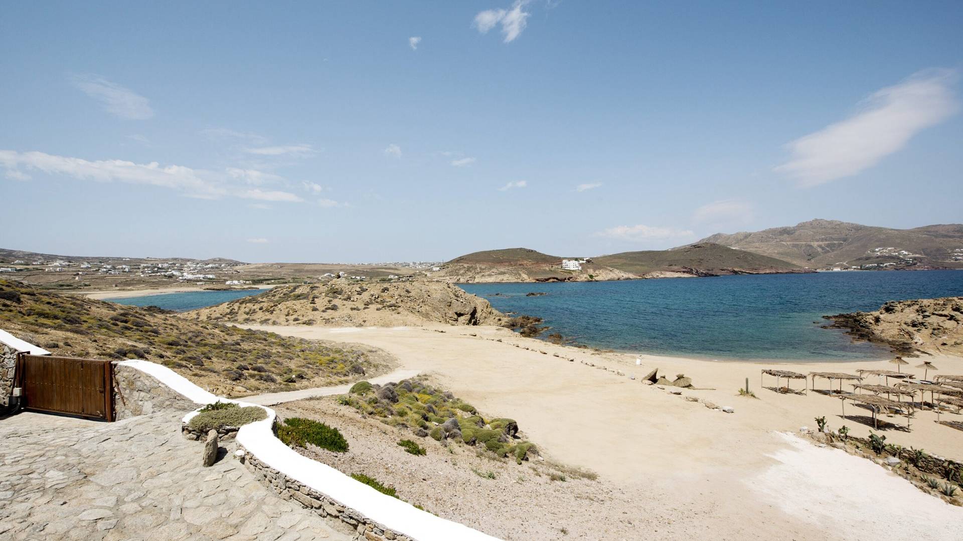 Ftelia Mykonos est une belle plage d'eau turquoise sur la partie nord, particulièrement célèbre parmi les véliplanchistes car elle est caressée par le vent de Meltemi nord des Cyclades qui crée les conditions idéales pour ce sport. Même si vous n'êtes pas un amateur de planche à voile, vous apprécierez la sensation de sérénité que dégage cette plage. La route qui descend vers la plage est asphaltée jusqu'à un certain point, puis il y a une distance de marche dans le sable. En quelques pas, vous tomberez sur une plage très calme et peu fréquentée, ce qui est quelque peu surprenant car elle est assez accessible depuis la Chora.